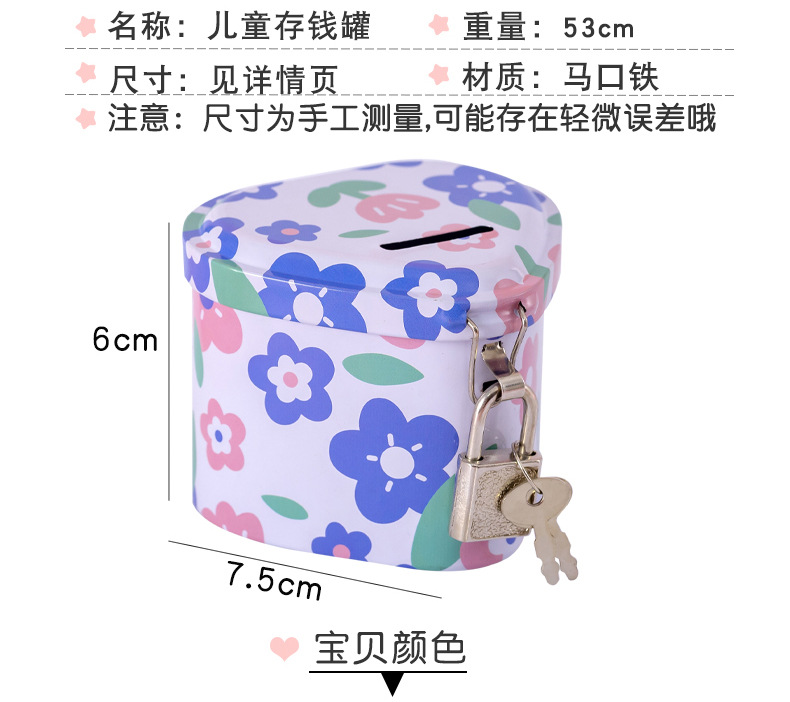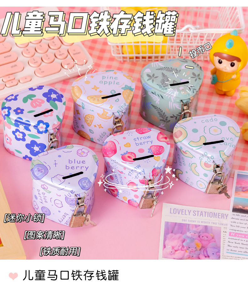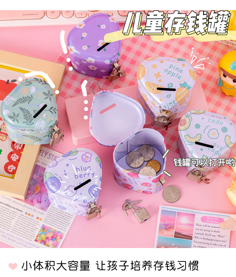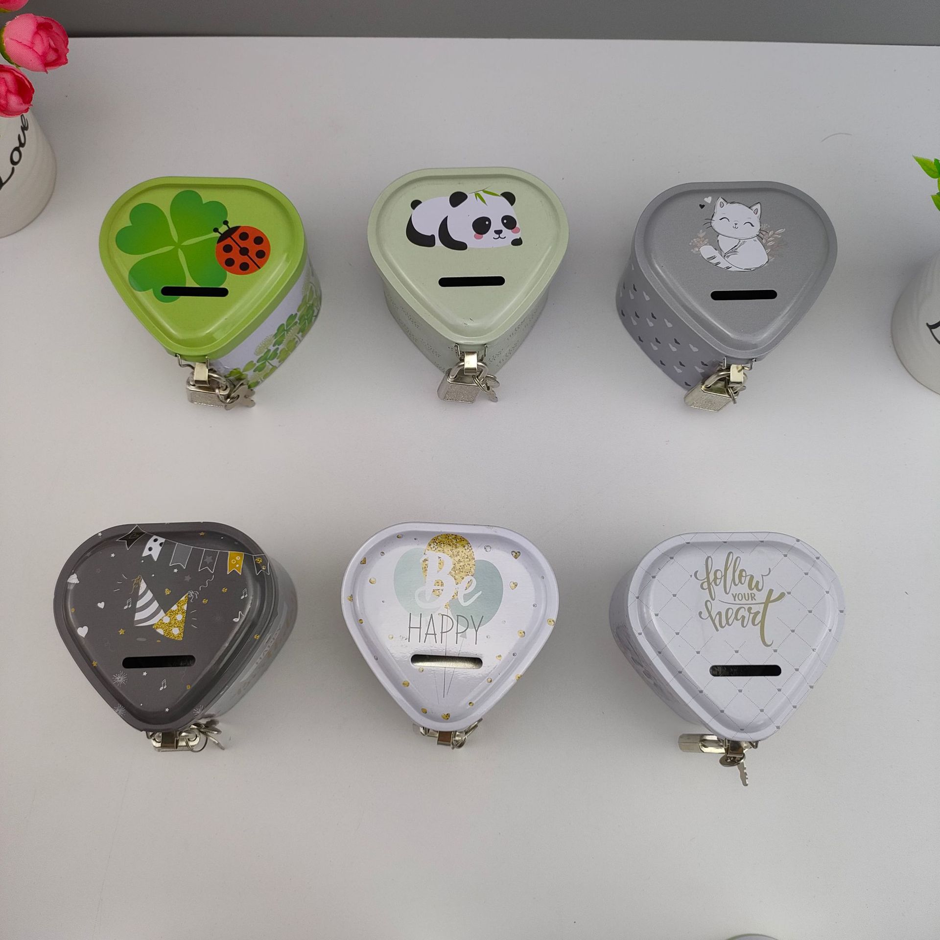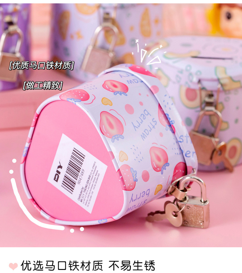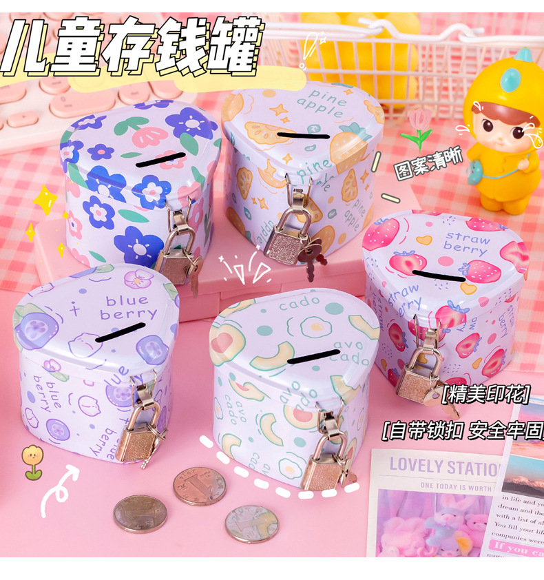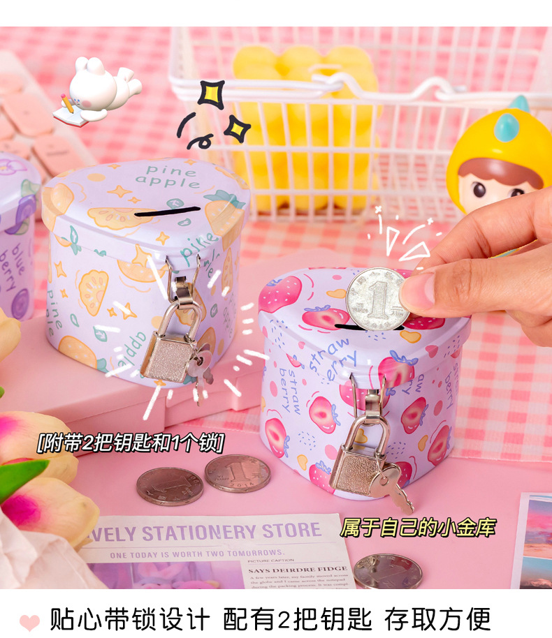 儿童存钱罐带锁零钱罐摆件马口铁硬币筒可爱卡通储蓄罐小奖品礼物
