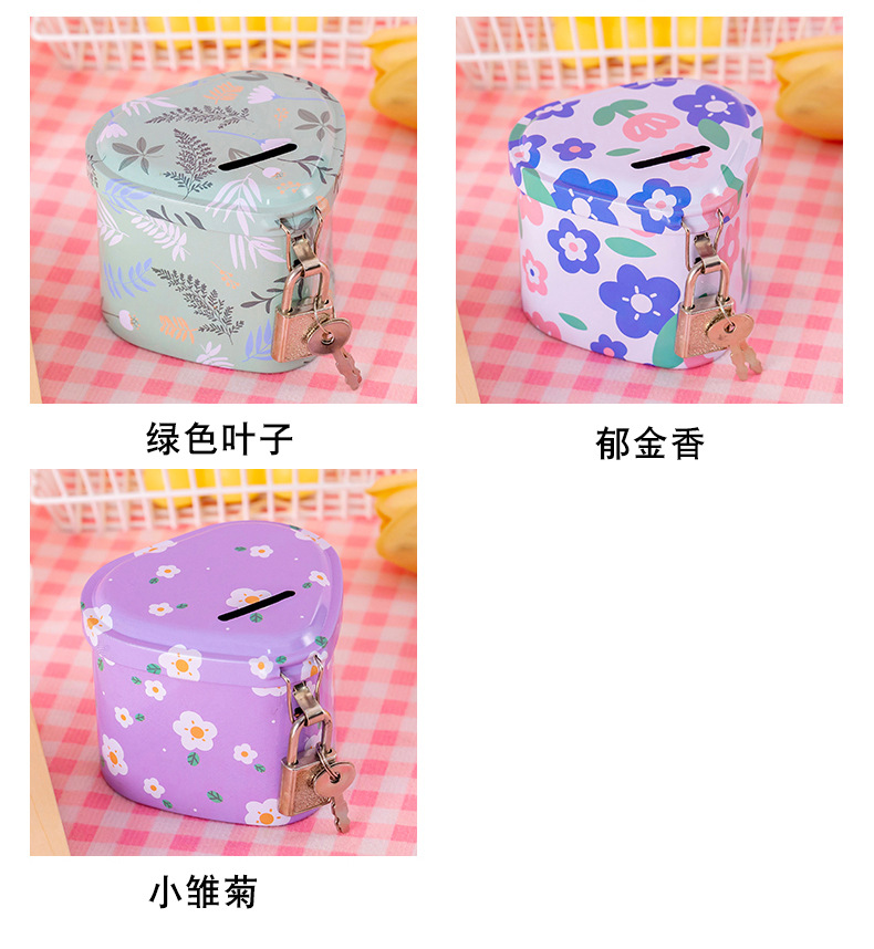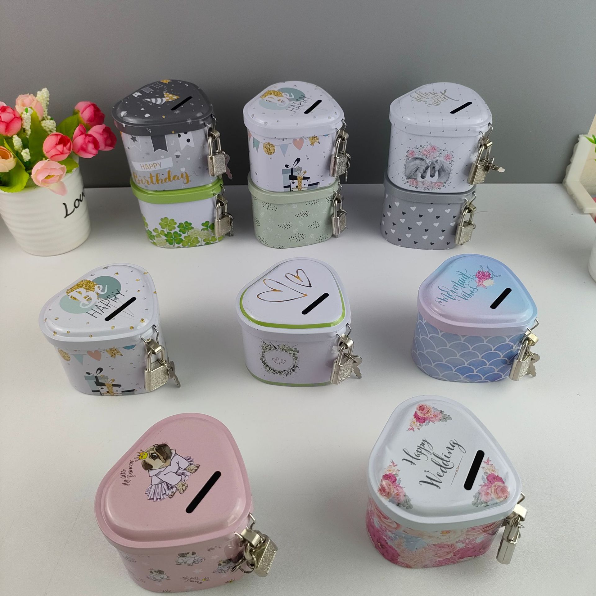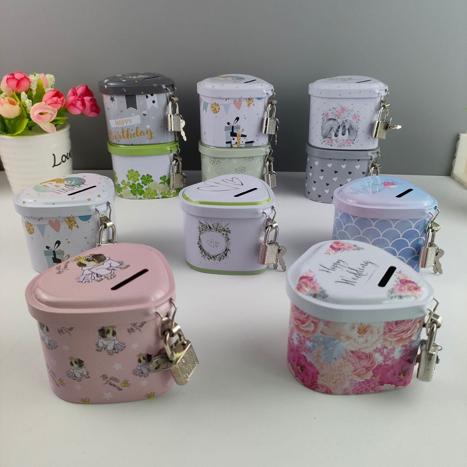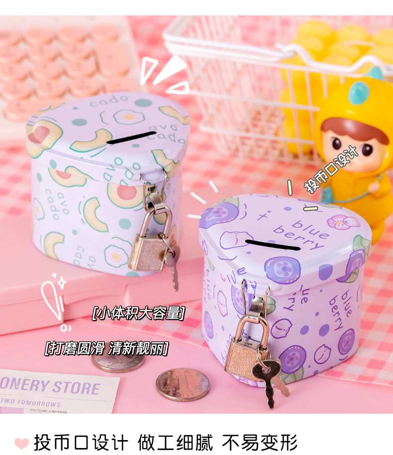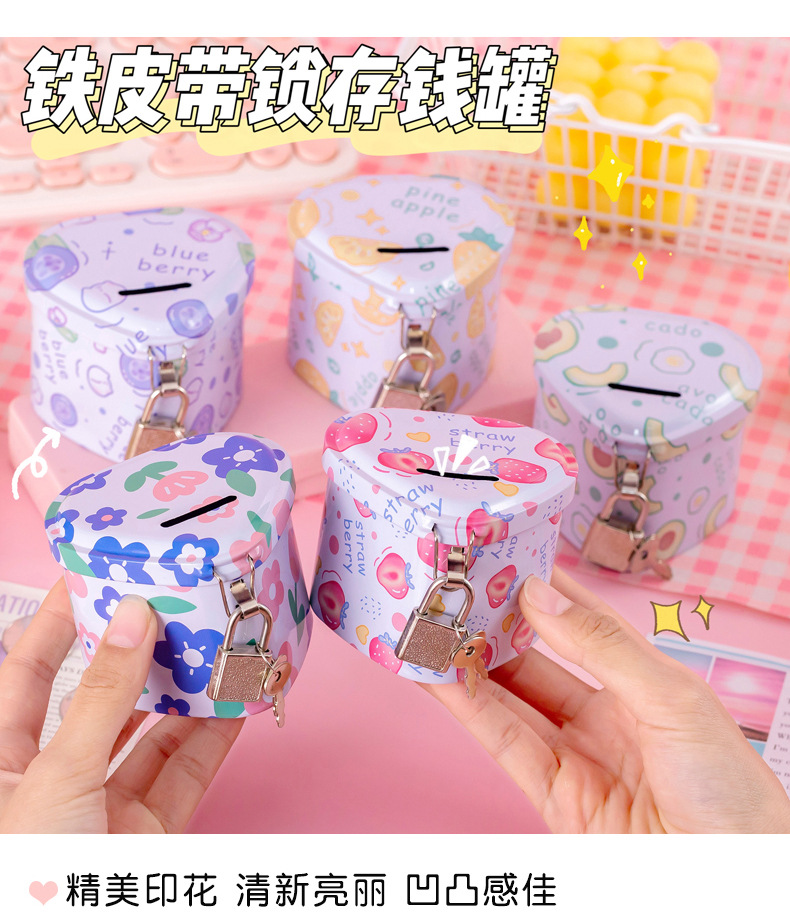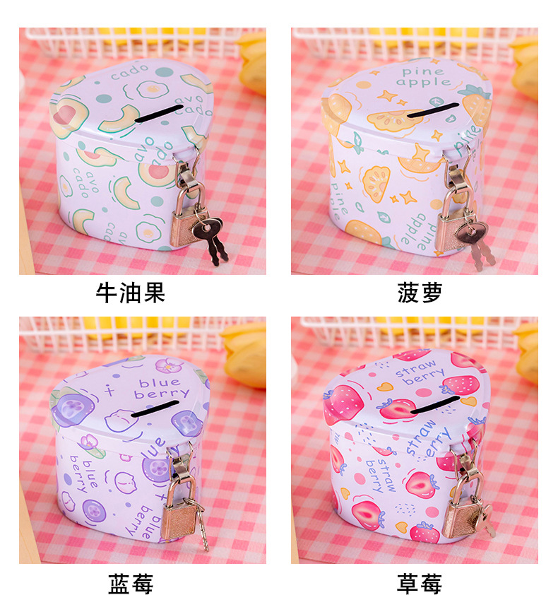 儿童存钱罐带锁零钱罐摆件马口铁硬币筒可爱卡通储蓄罐小奖品礼物