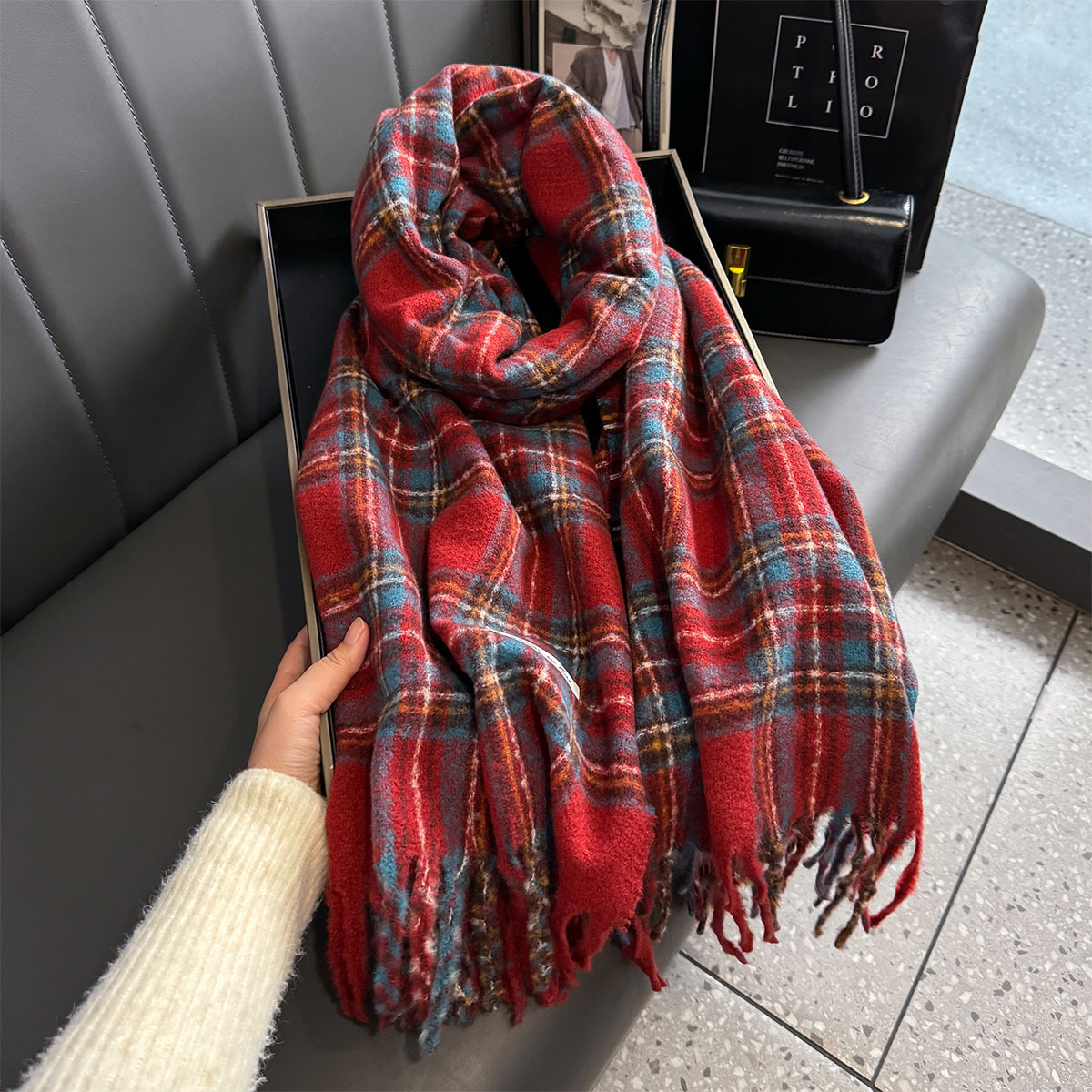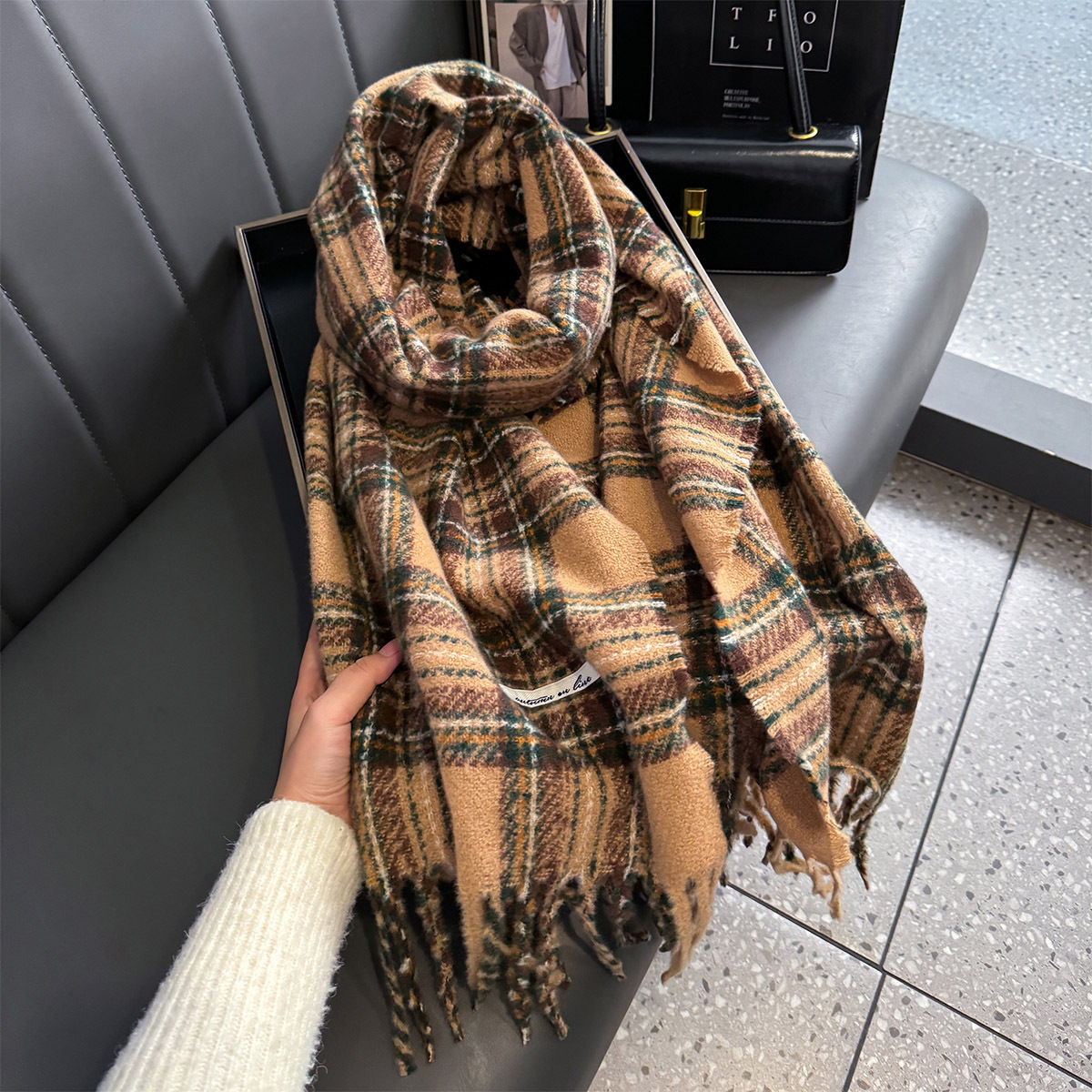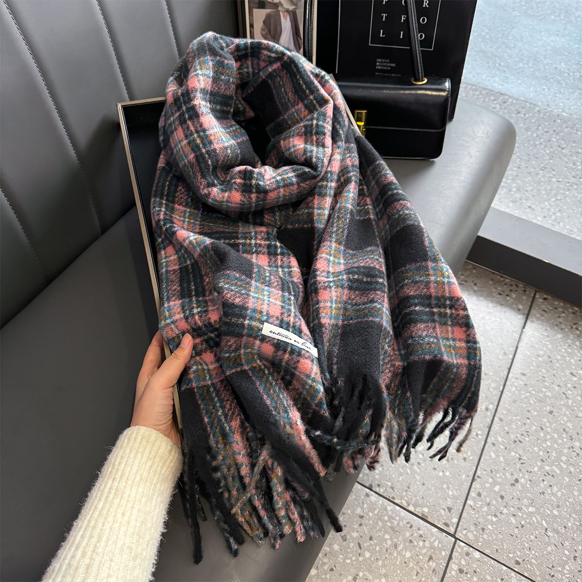 围巾冬季女高级感2024新款格子情侣保暖加厚长款披肩一体围脖外贸