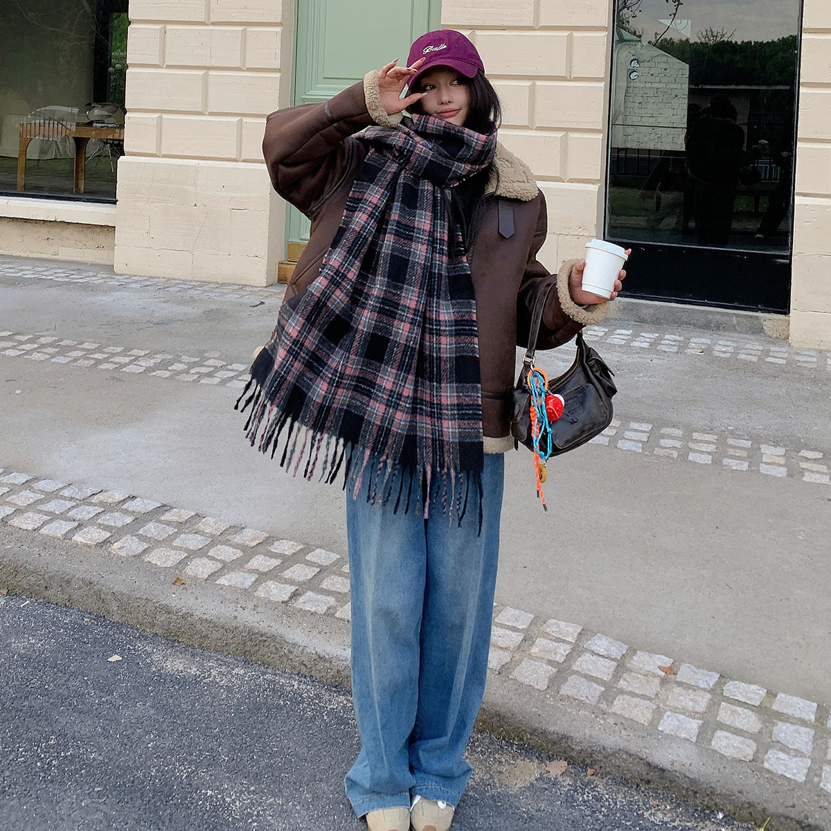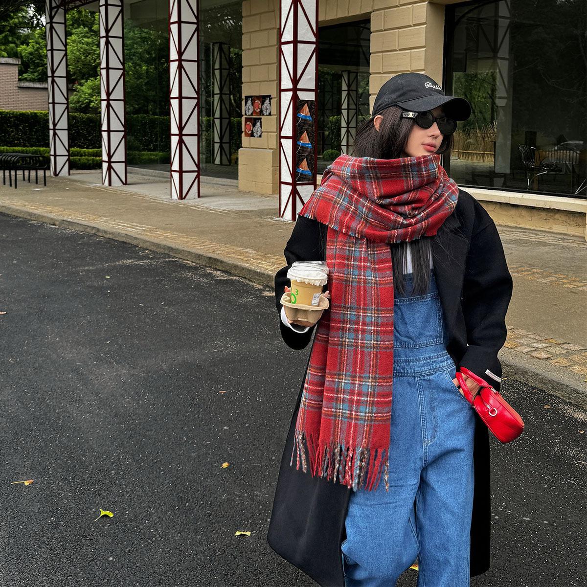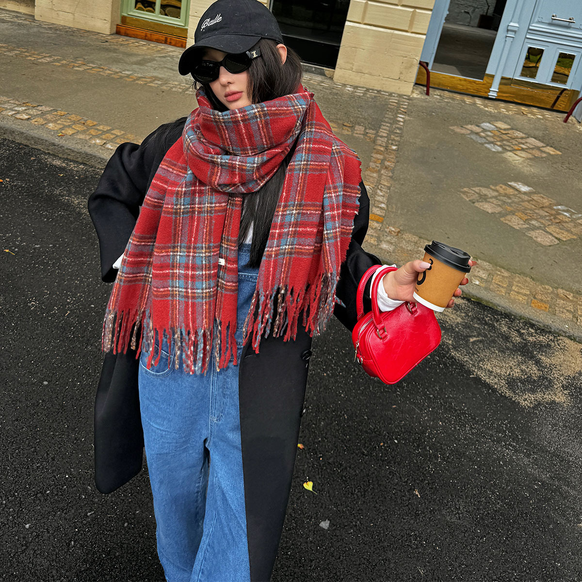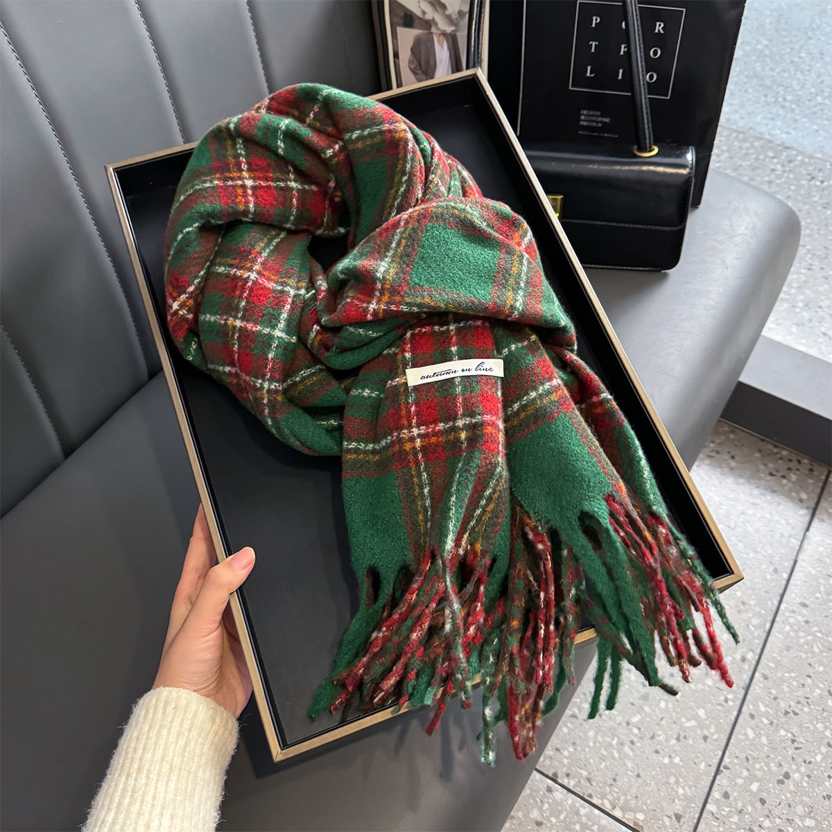 围巾冬季女高级感2024新款格子情侣保暖加厚长款披肩一体围脖外贸