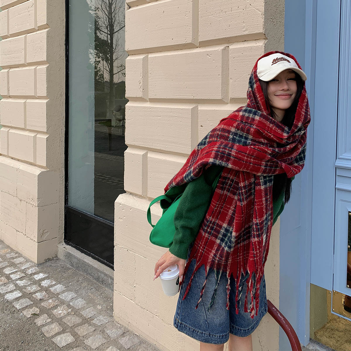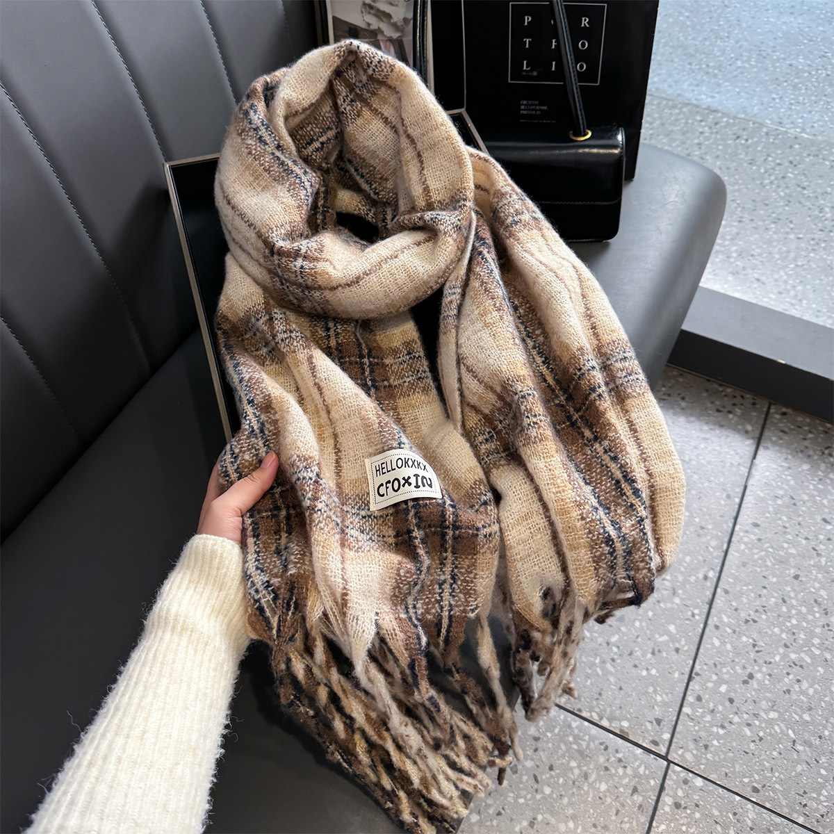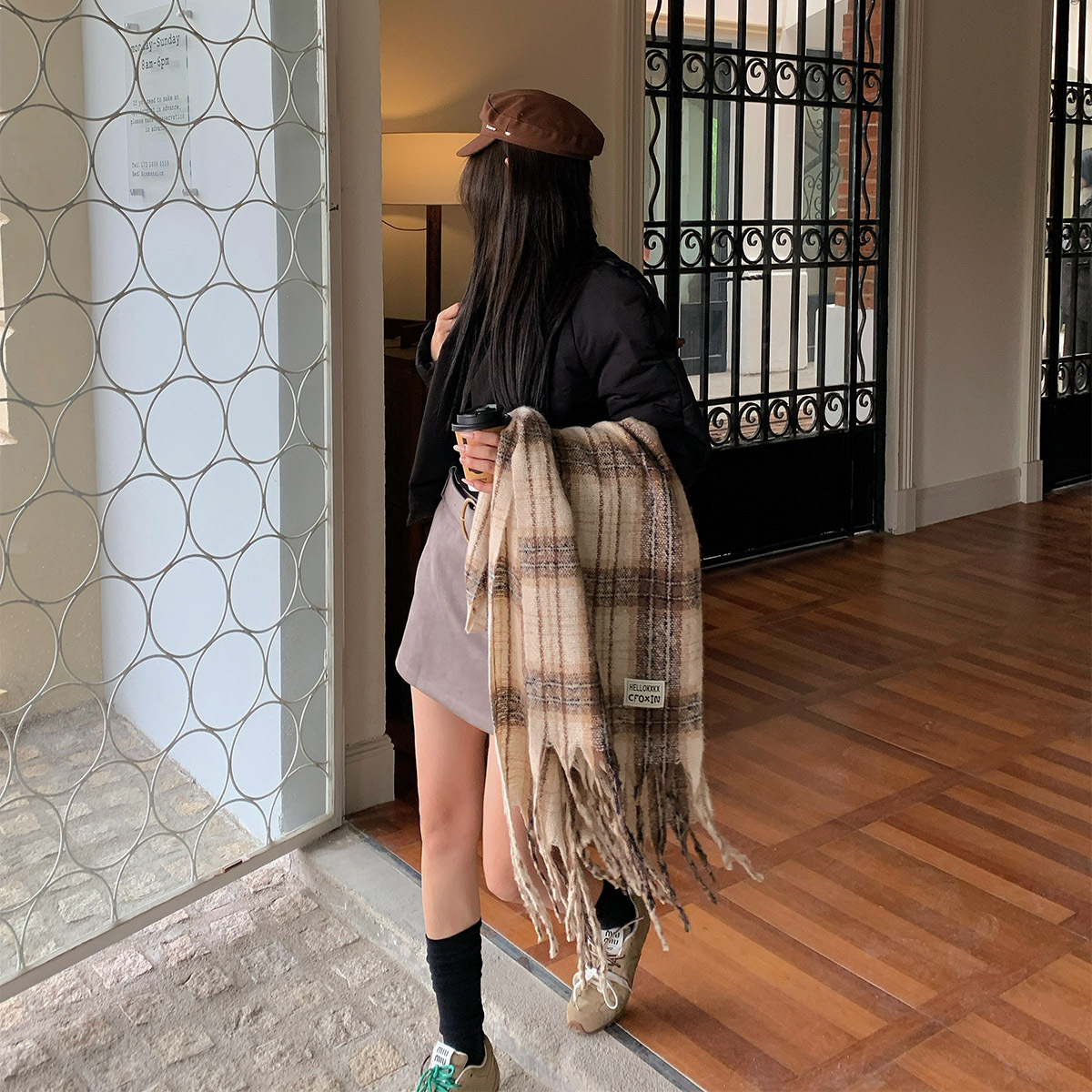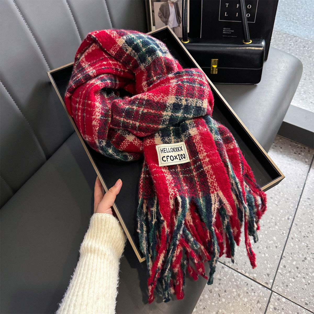 韩版气质秋冬新款加厚双面仿羊绒保暖围脖复古格纹情侣长款学生潮