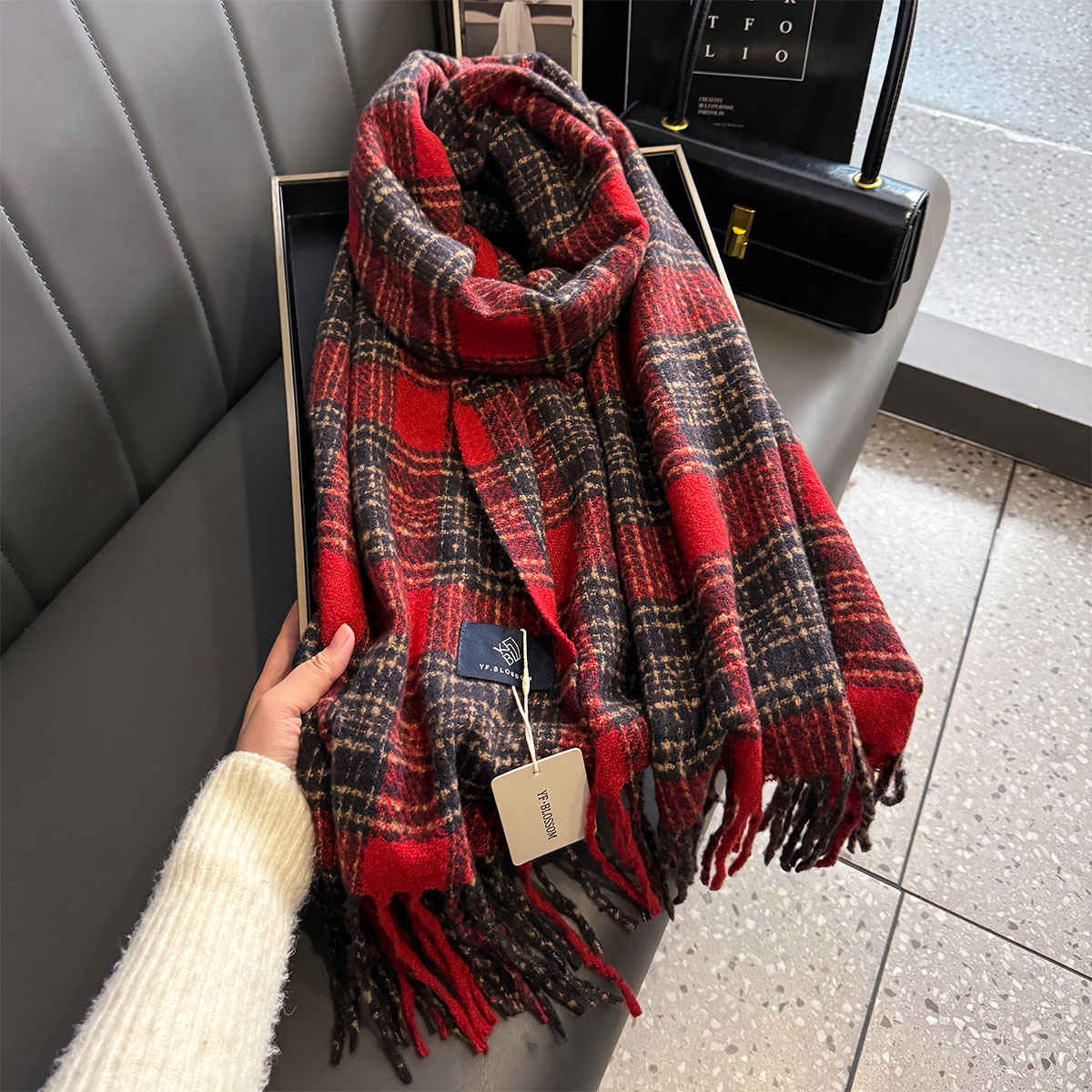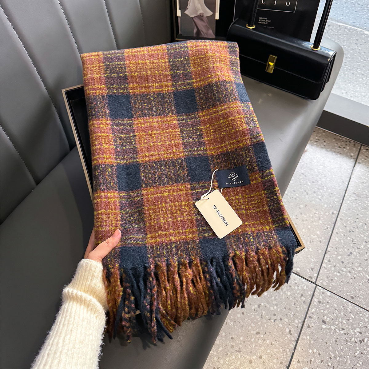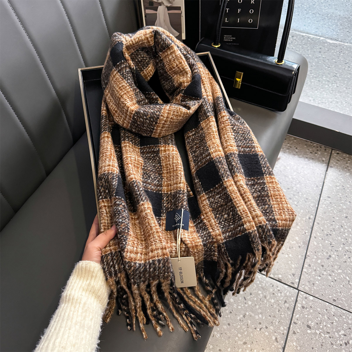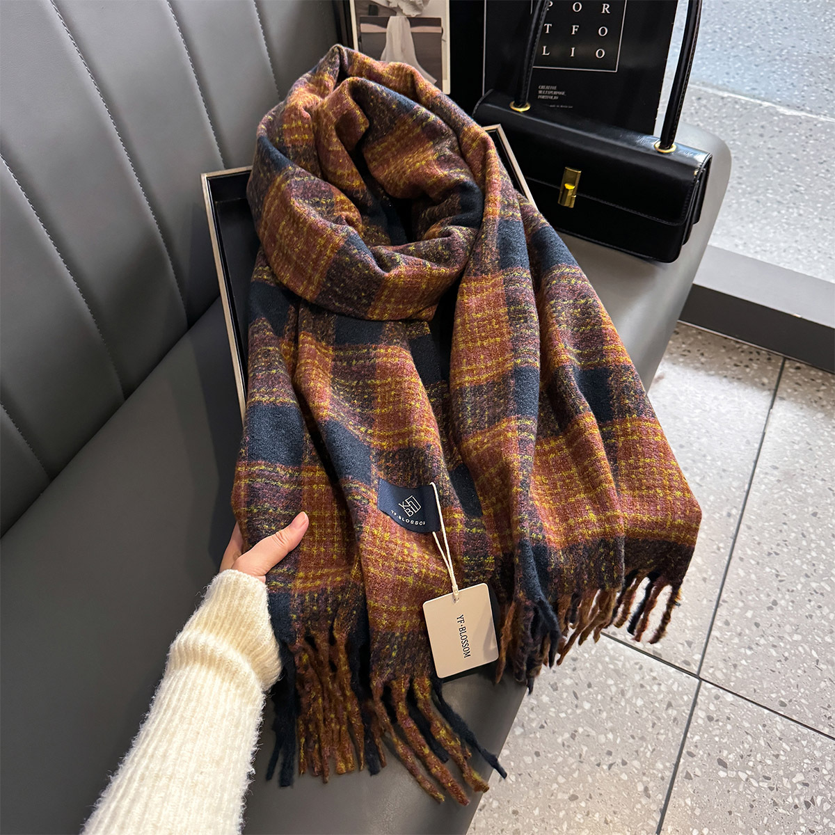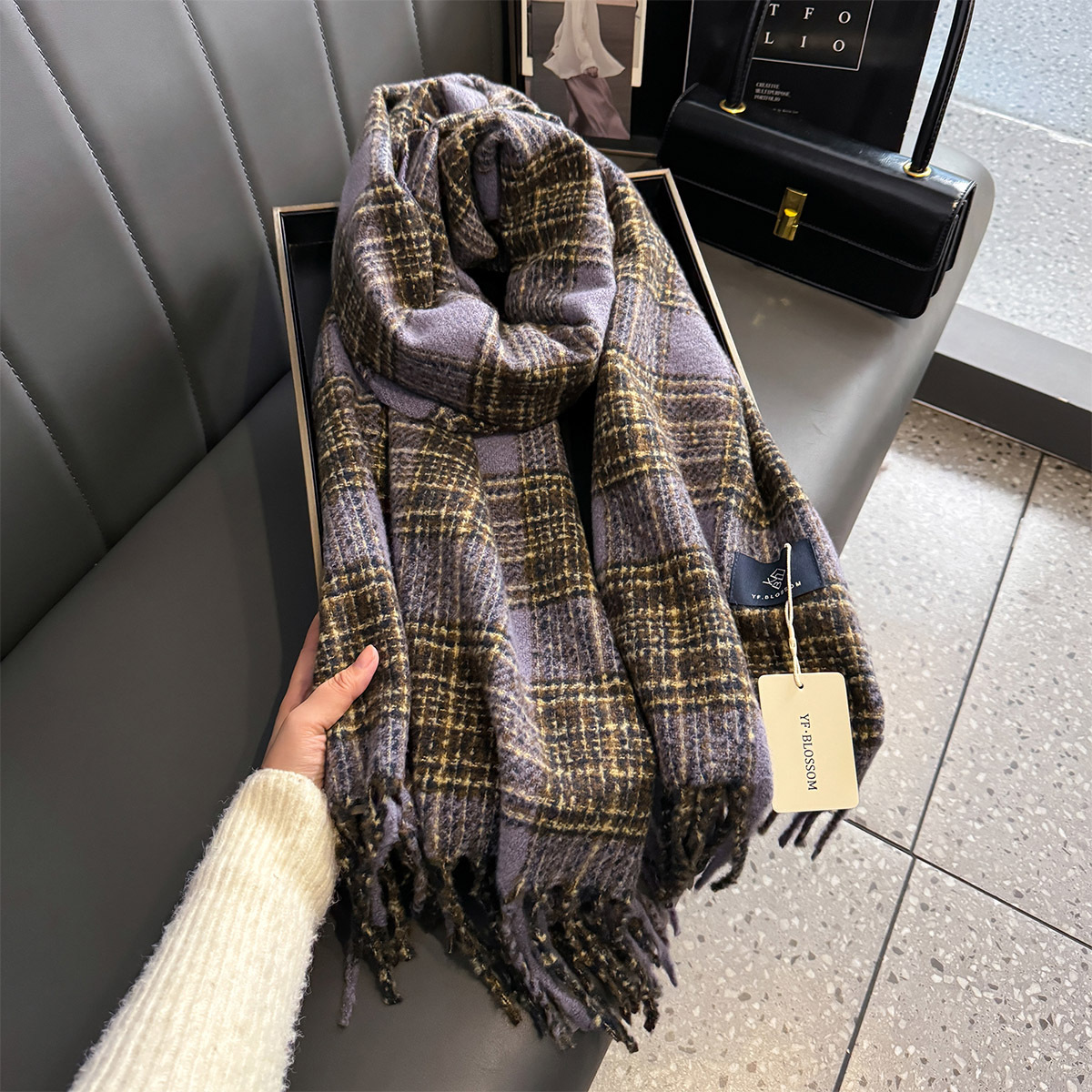 秋冬季新款加厚围巾流苏减龄格子大披肩防寒复古文艺气质百搭围脖