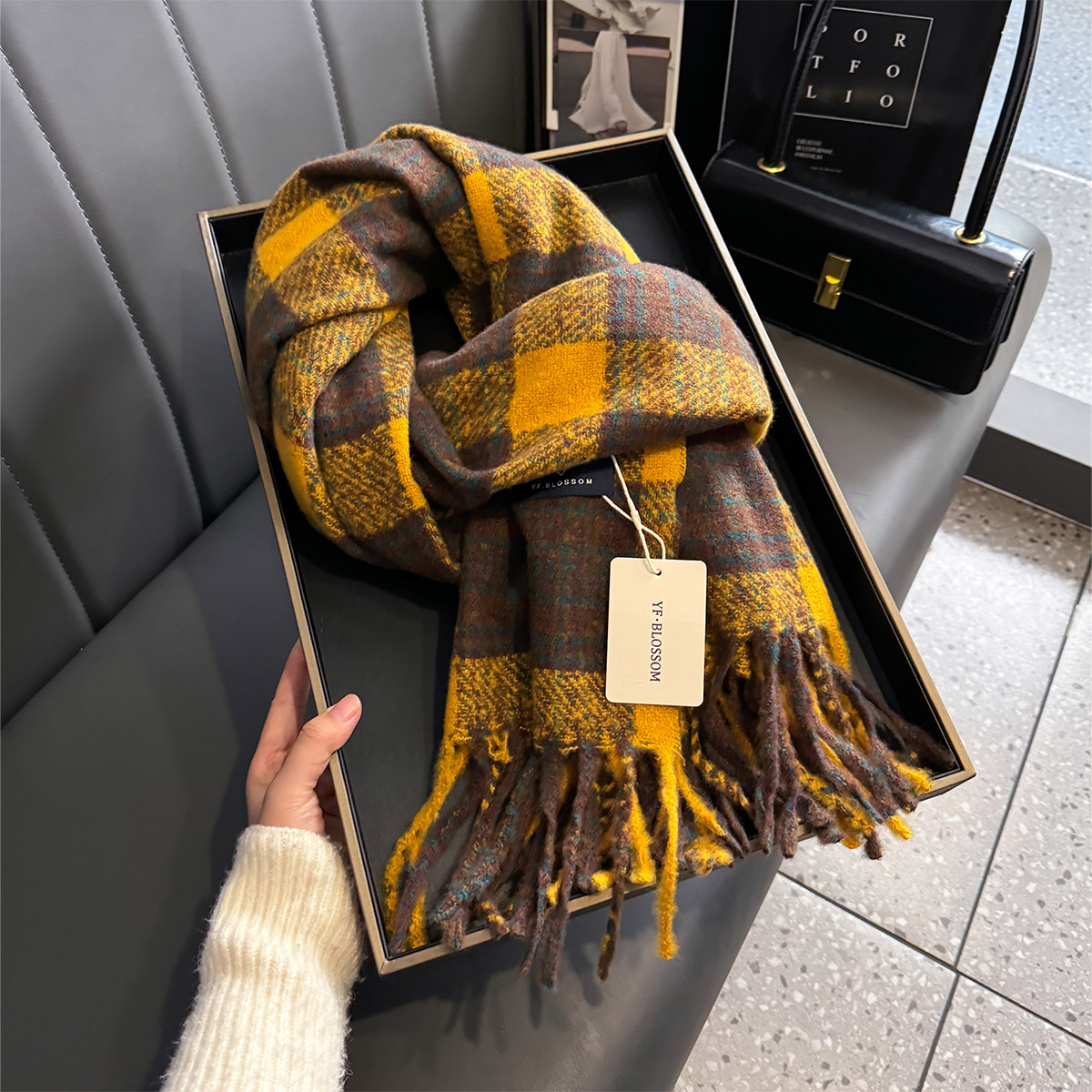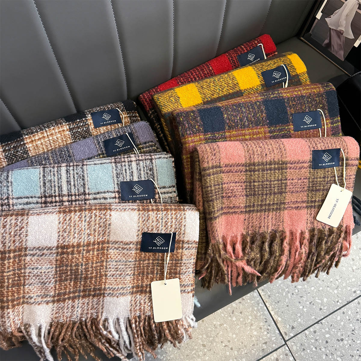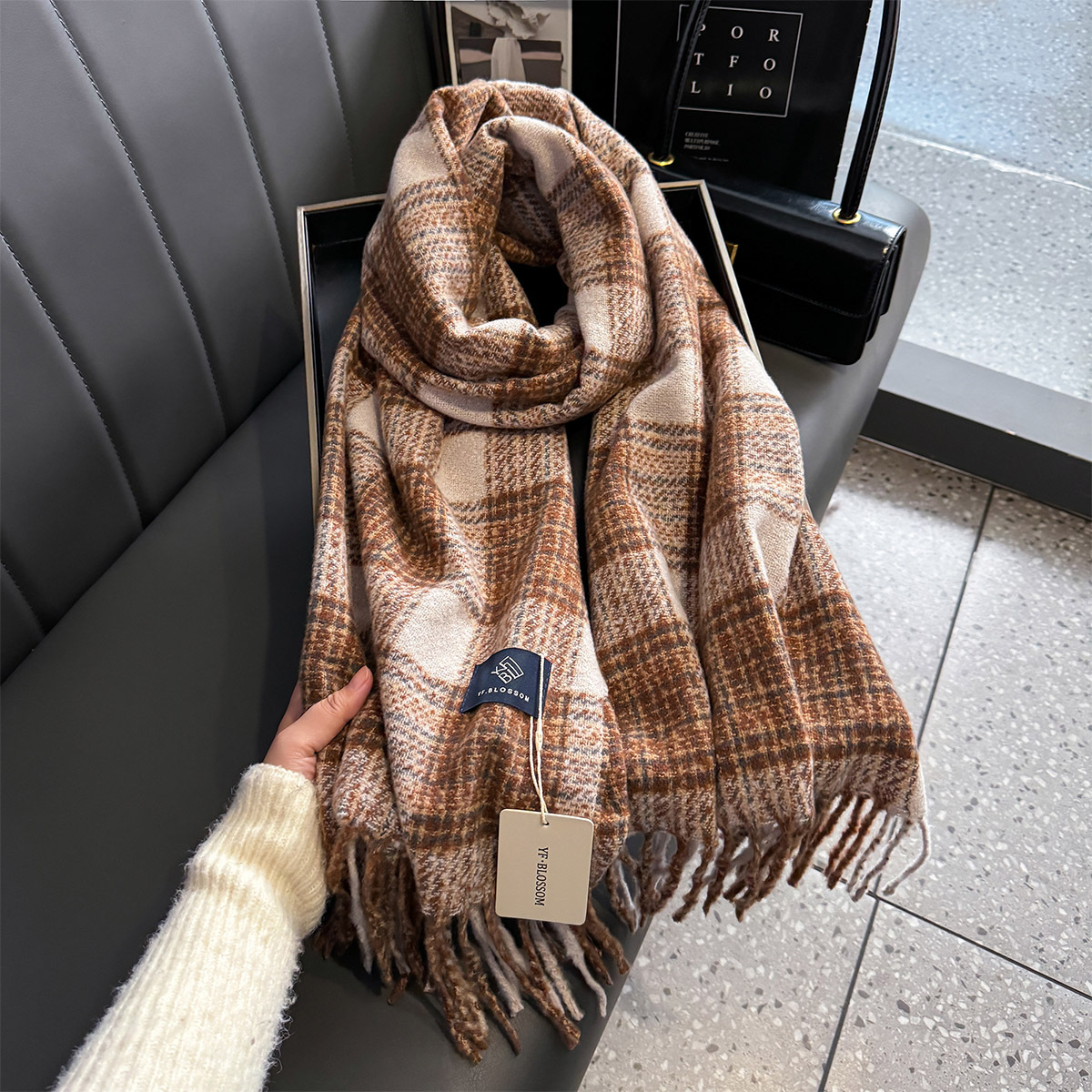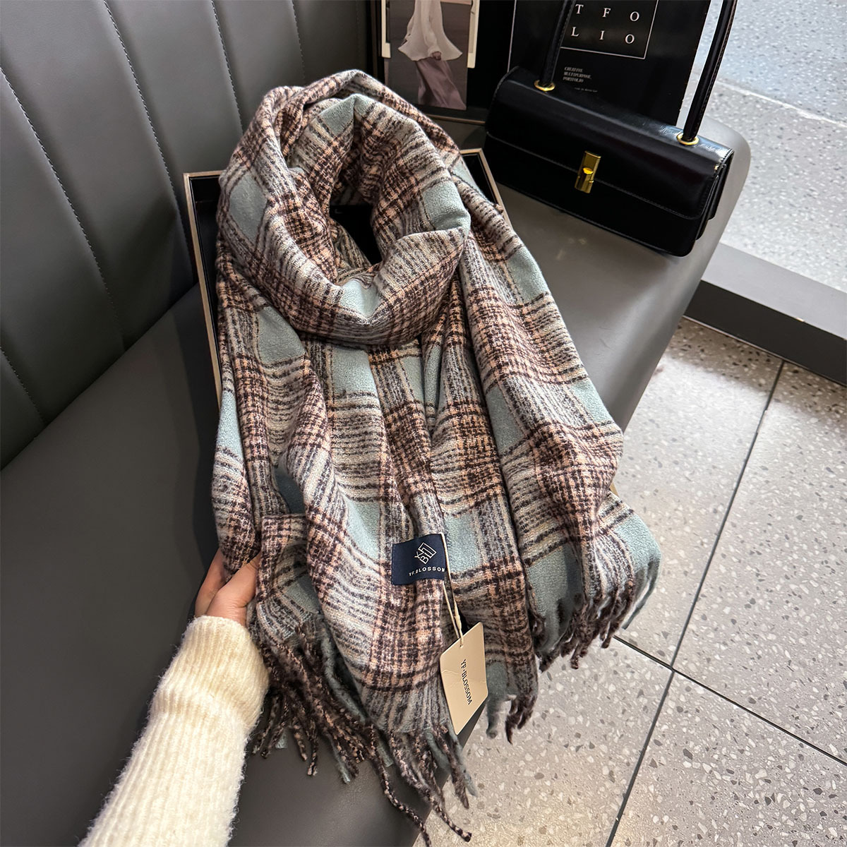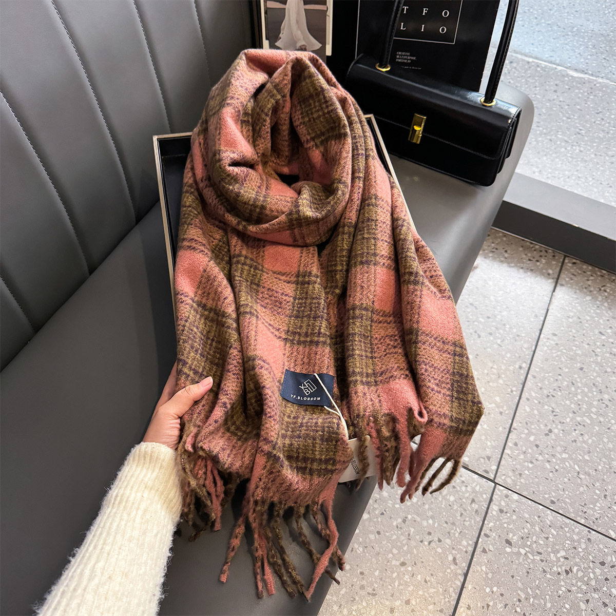 秋冬季新款加厚围巾流苏减龄格子大披肩防寒复古文艺气质百搭围脖