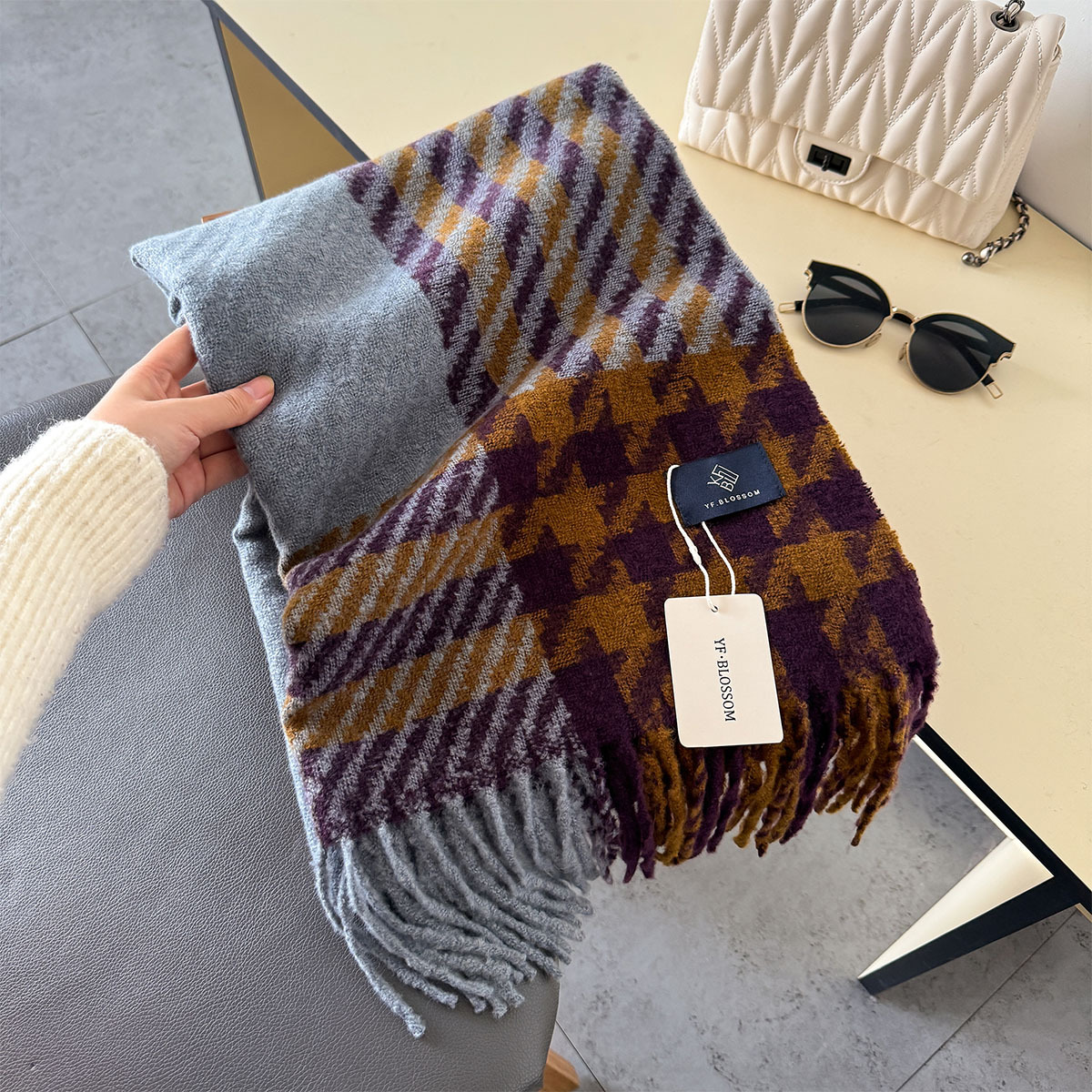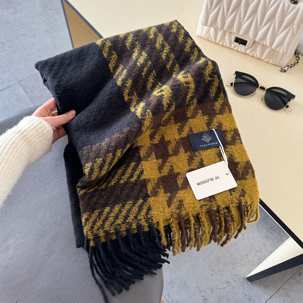 秋冬季显白韩版千鸟格流苏围巾女加大保暖披肩氛围感围脖情侣跨境