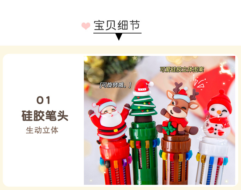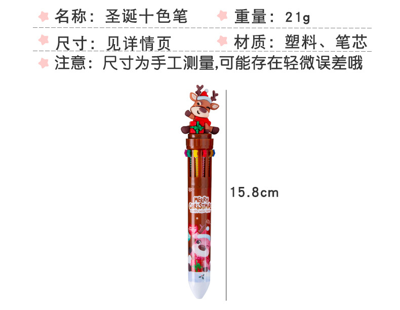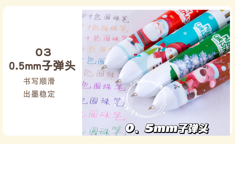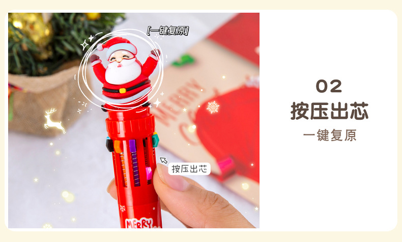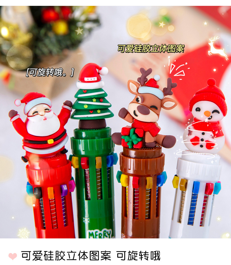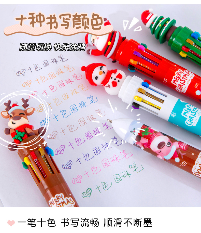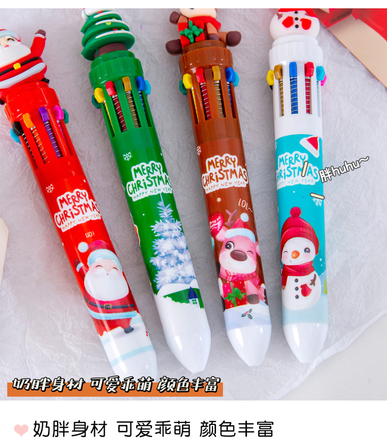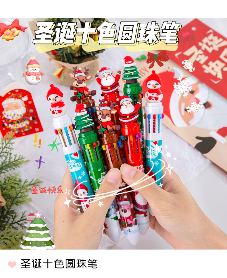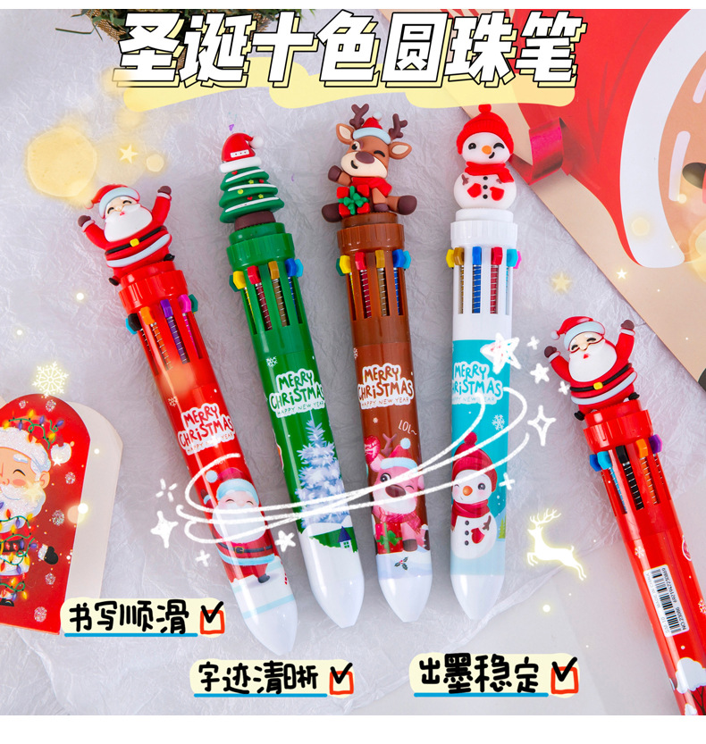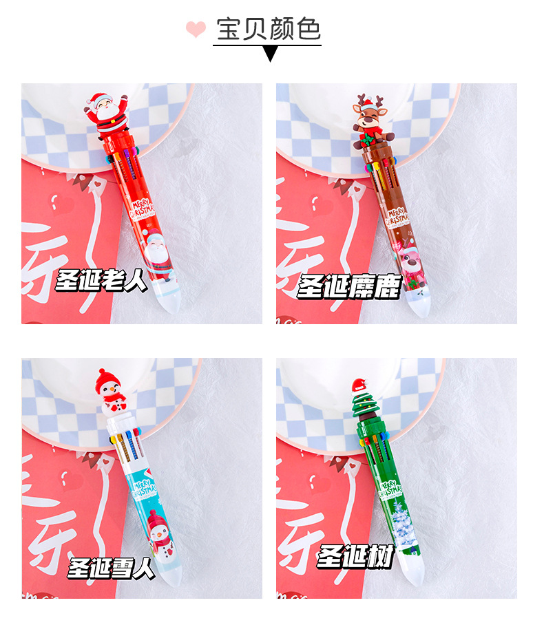 多色圆珠笔圣诞可爱创意十色笔圆珠笔按动式学生礼物彩色笔多色笔