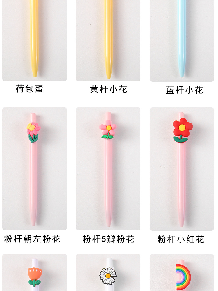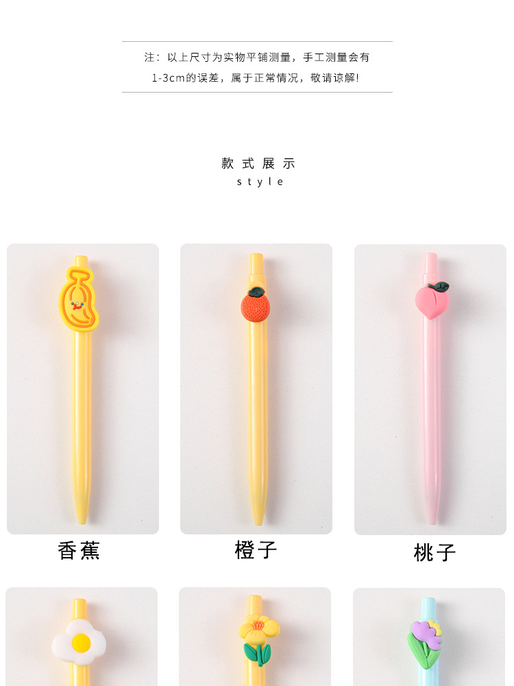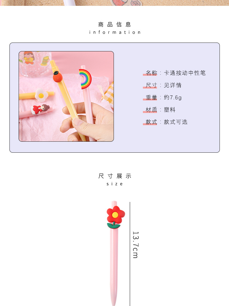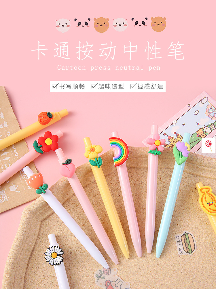 按动子弹头中性笔 可爱卡通风花朵水果雏菊女孩学生0.5黑色签字笔