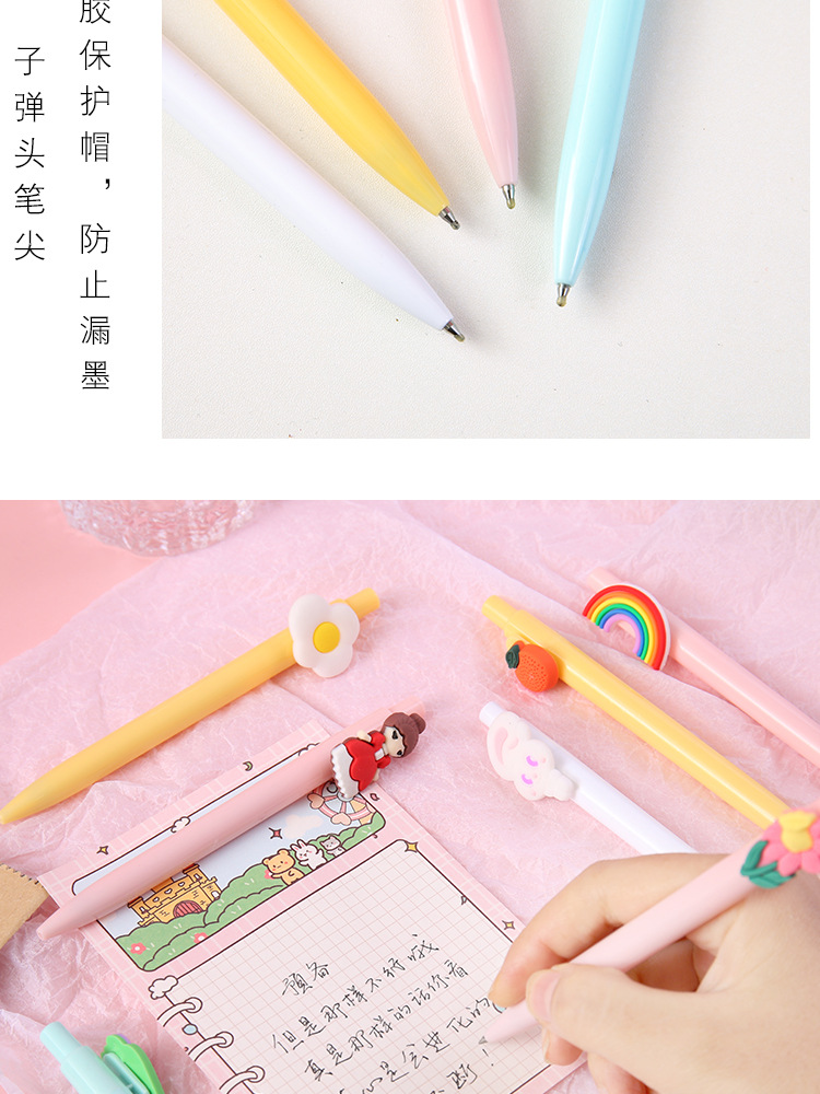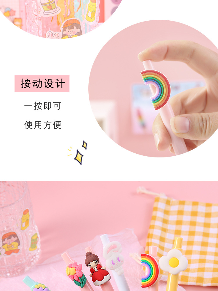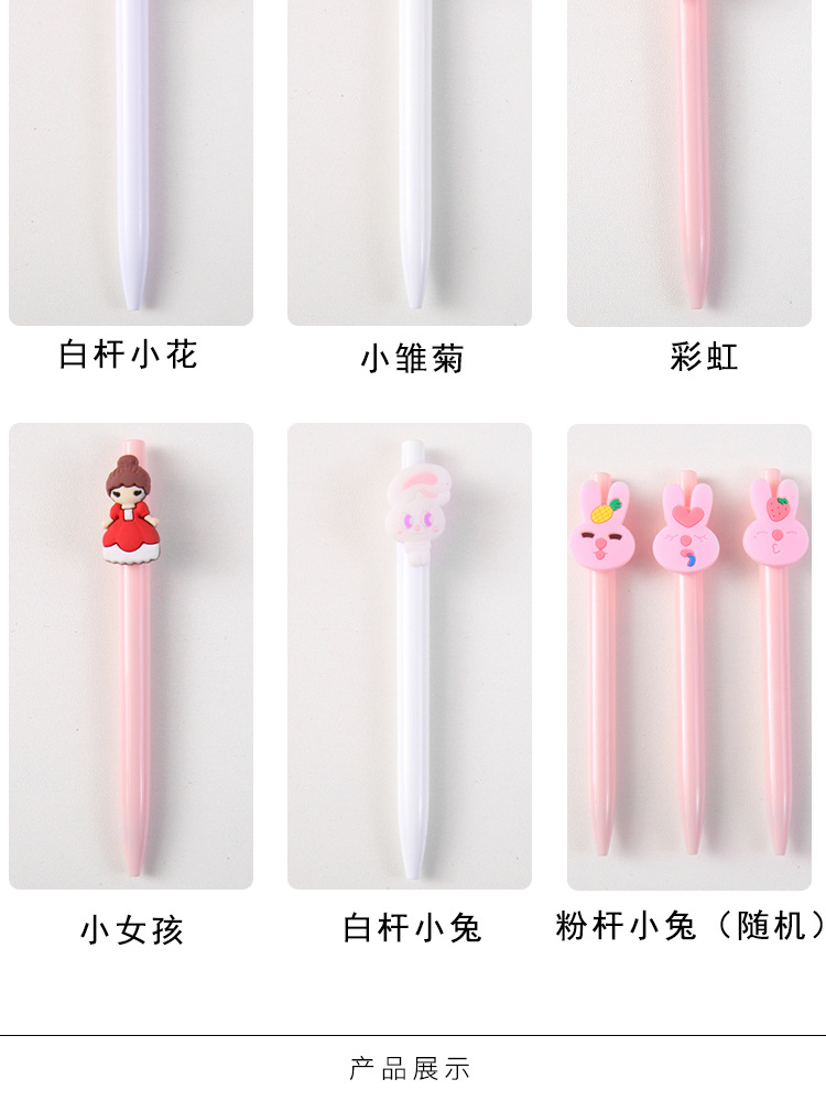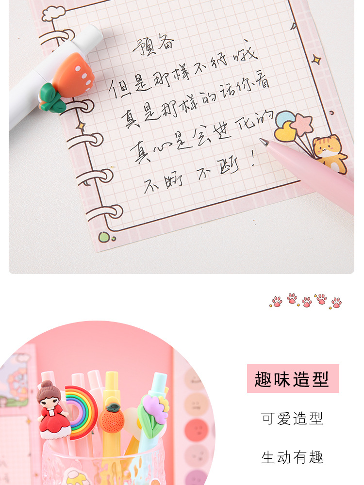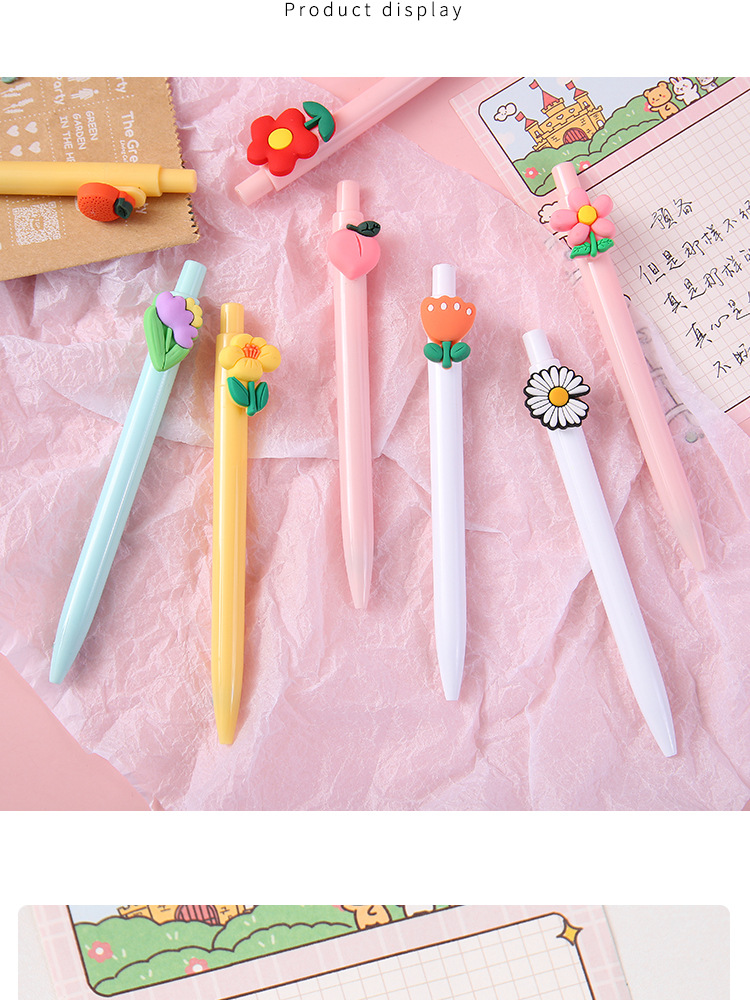 按动子弹头中性笔 可爱卡通风花朵水果雏菊女孩学生0.5黑色签字笔