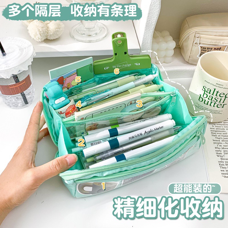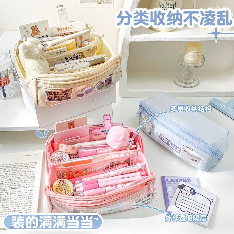 网红多层笔袋学生女简约大容量多功能文具盒ins潮日系可爱少女心