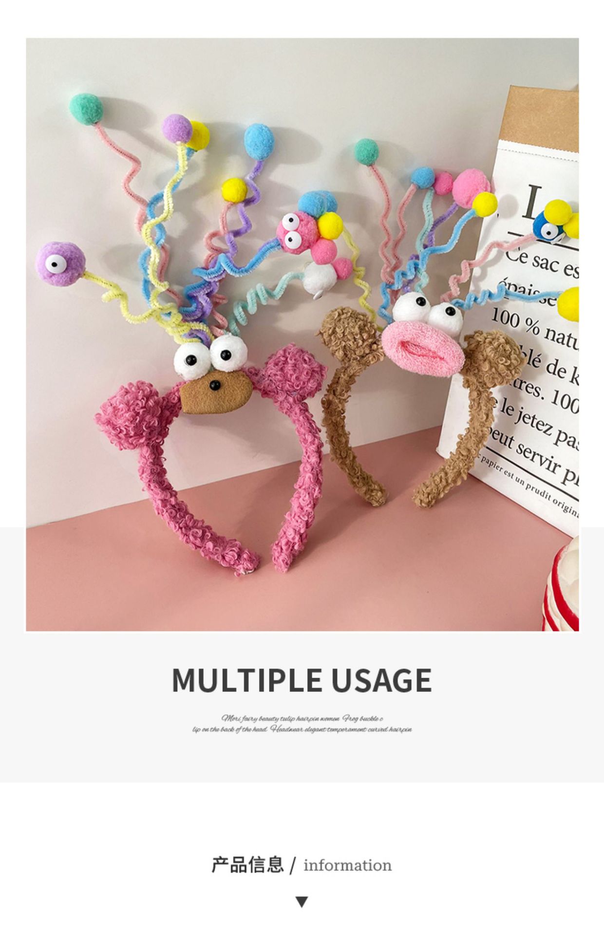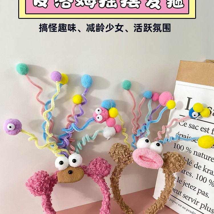 搞怪丑萌娃娃发箍毛茸茸炸毛头箍秋冬发饰可爱女头饰洗脸拍照发卡