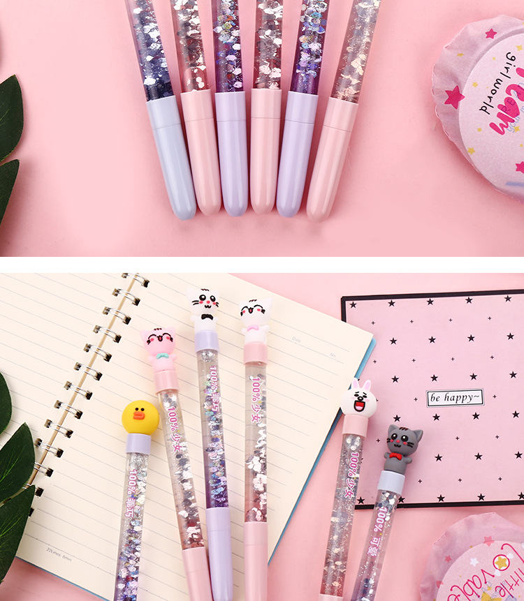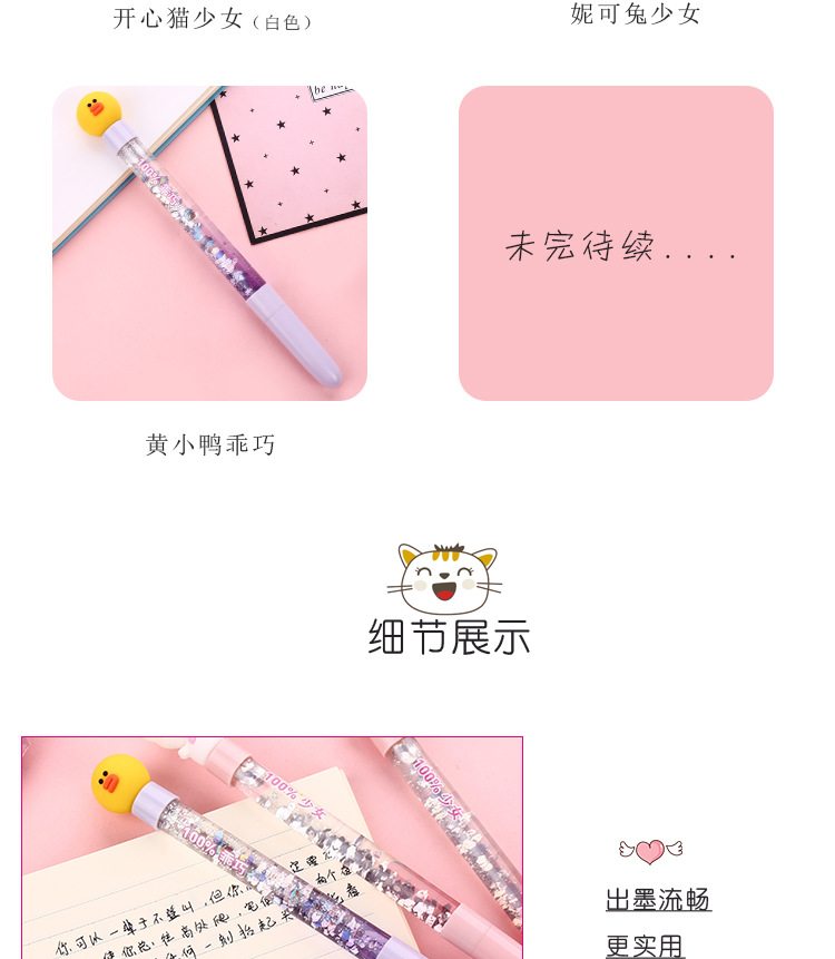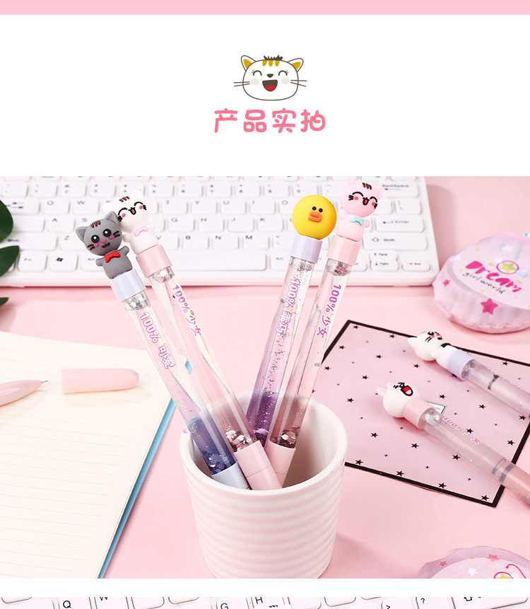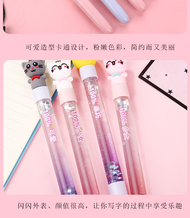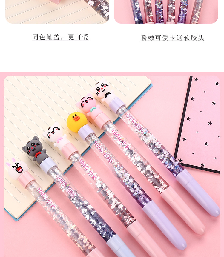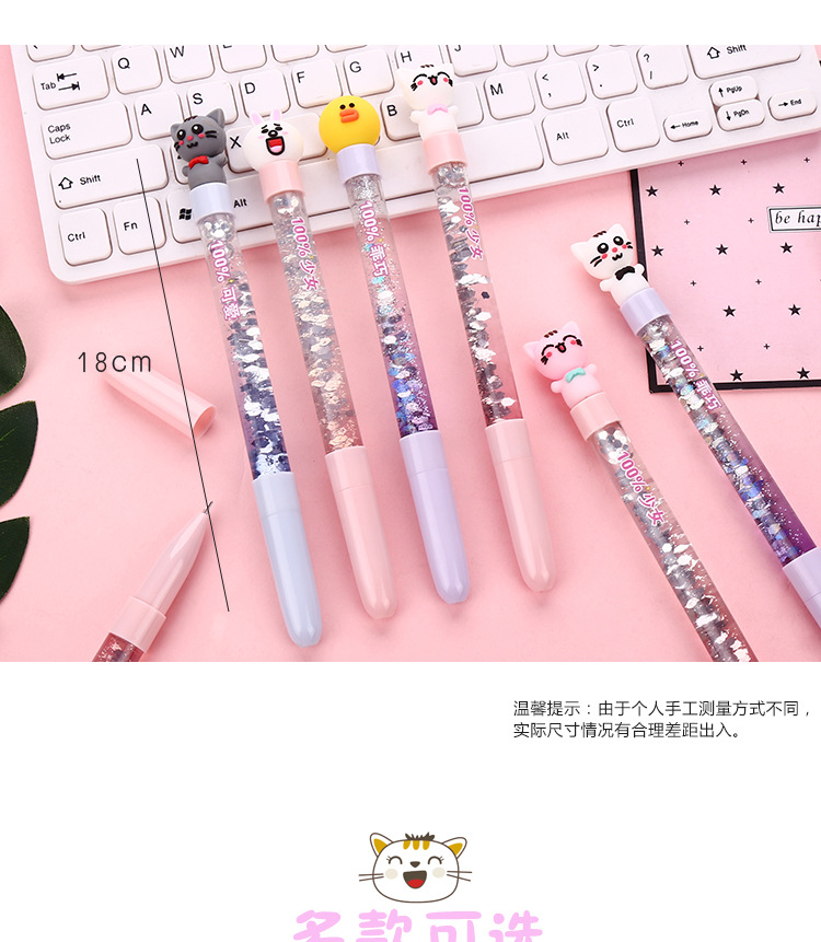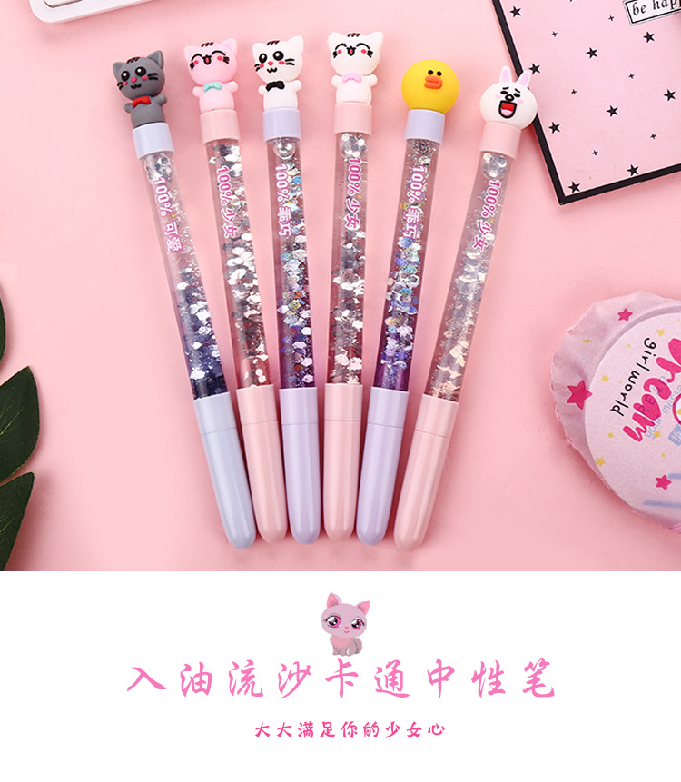 创意可爱卡通入油流沙中性笔少女心小仙女亮片炫彩中性笔厂家直销