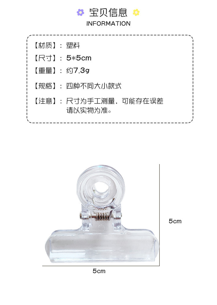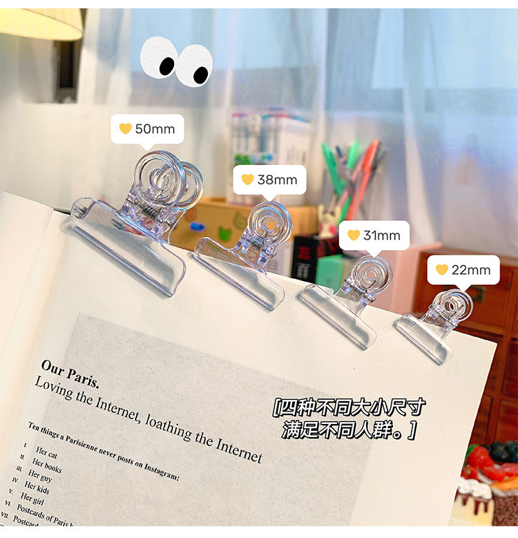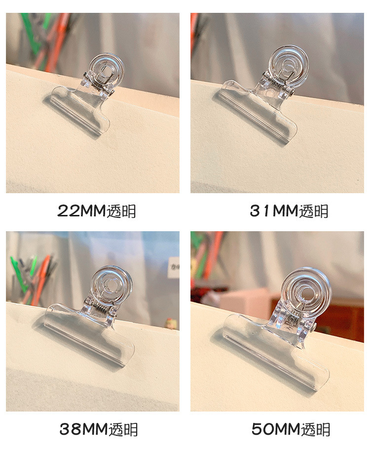 日系无印风透明小夹子 简约塑料多规格学生试卷装订长尾夹文件夹
