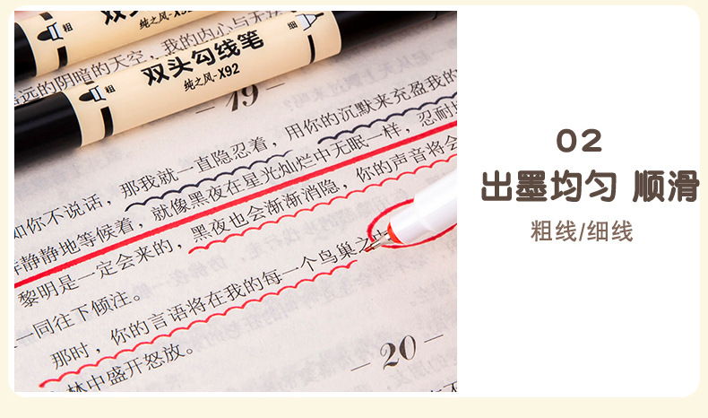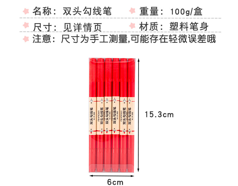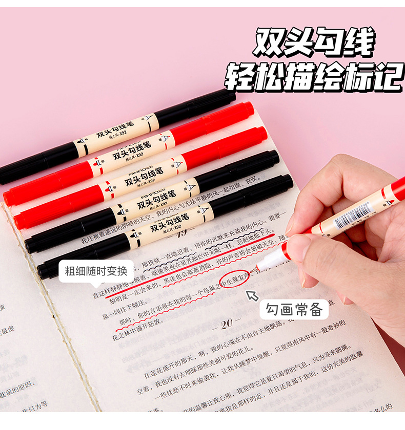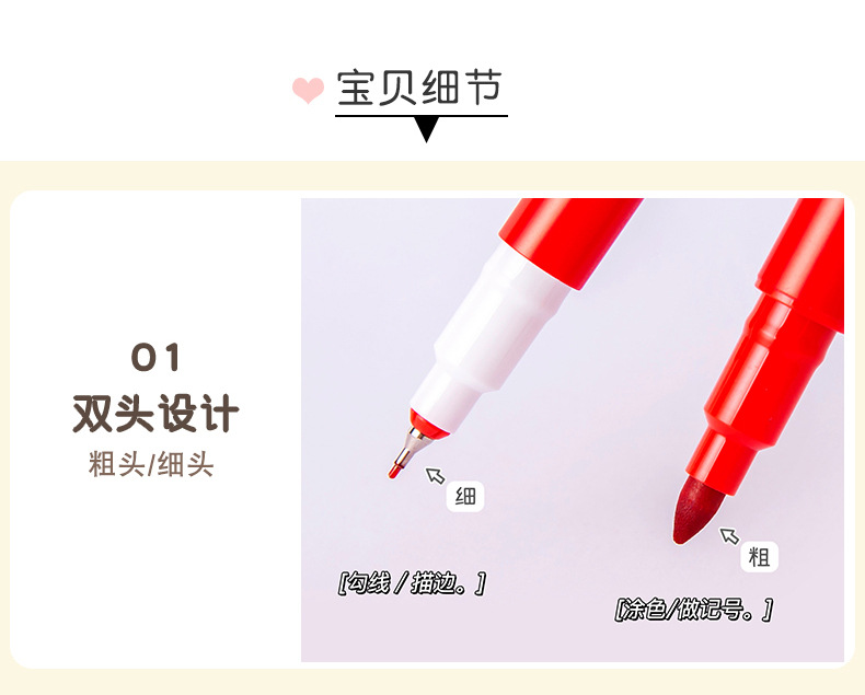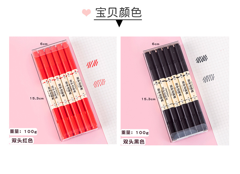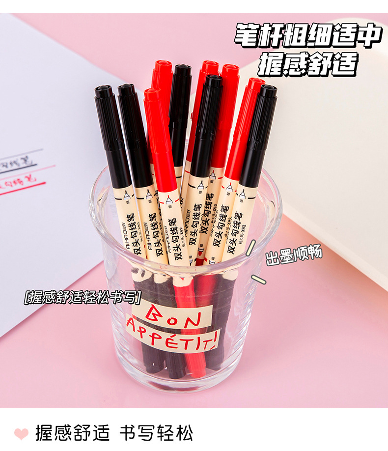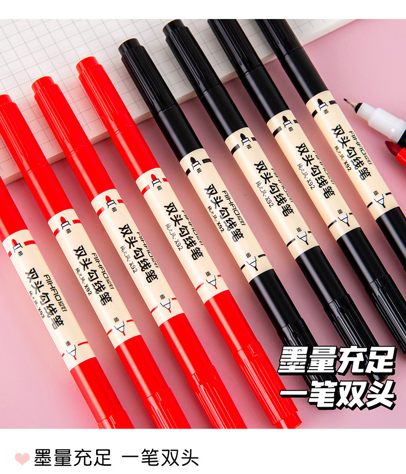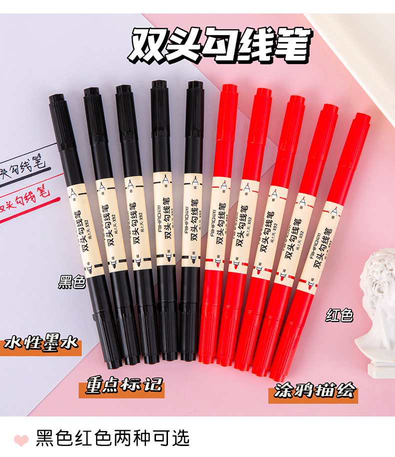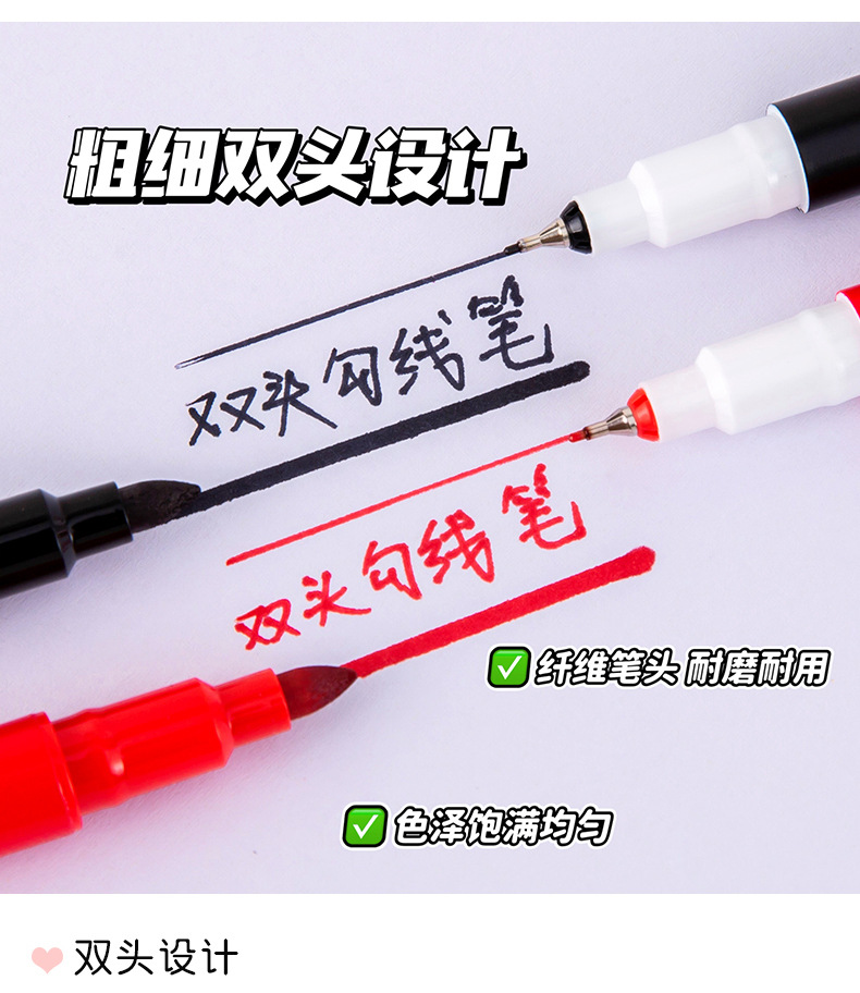 勾线笔记号笔双头油性美术专用小学生黑色红色儿童幼儿园马克笔