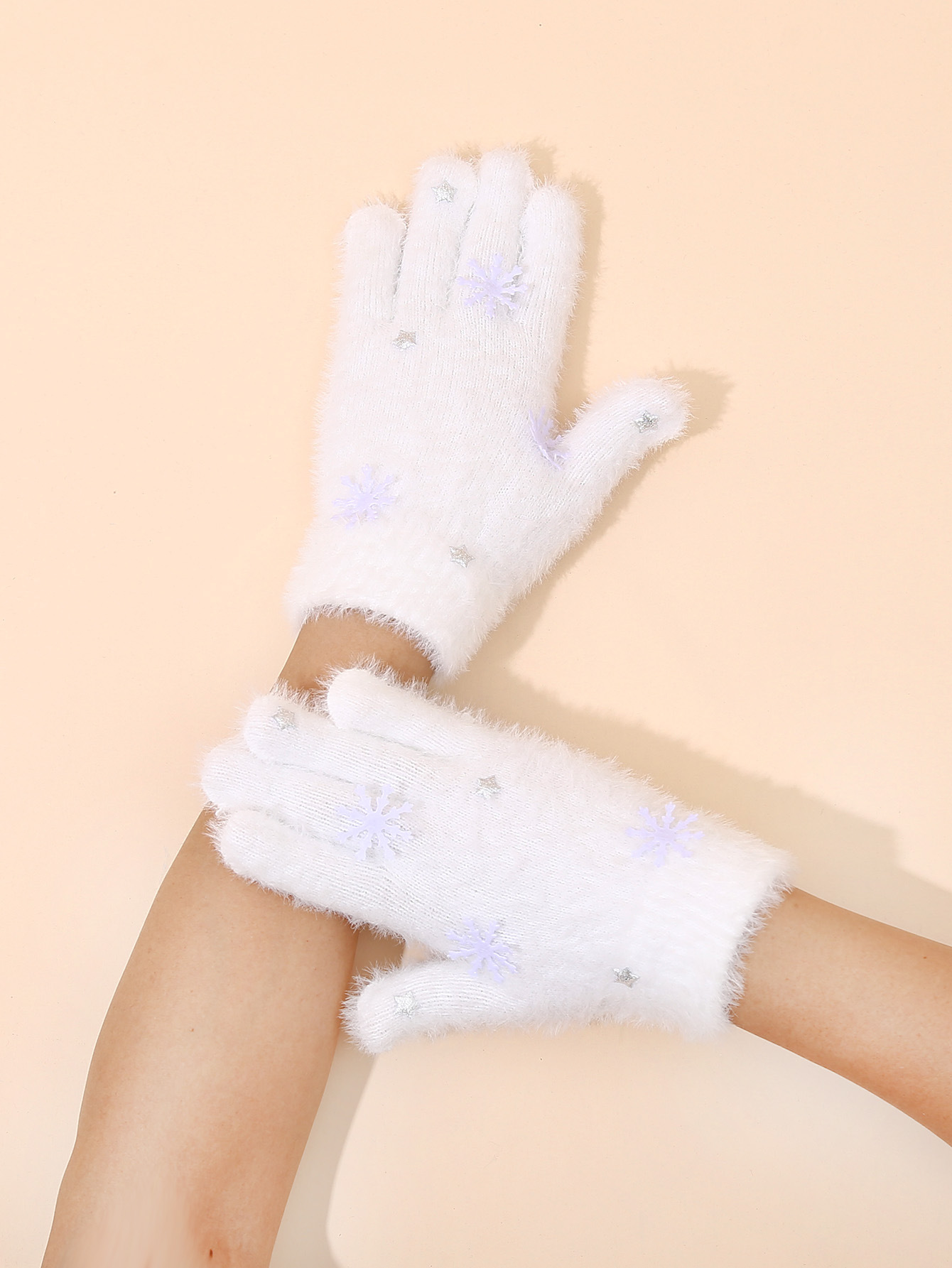 秋冬星星手套学生骑行分指百搭毛线针织印花保暖水貂绒可触屏手套