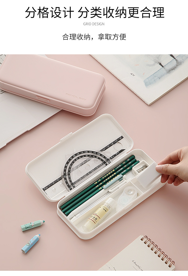 简约无印风磨砂文具盒 纯色分格大容量多功能防水PP塑料学生笔盒