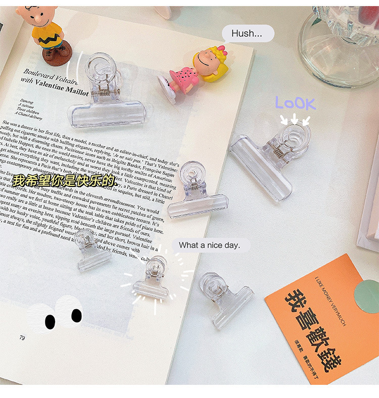 韩版透明小夹子 塑料大小号书本装订夹零食袋封口夹简约学生文具