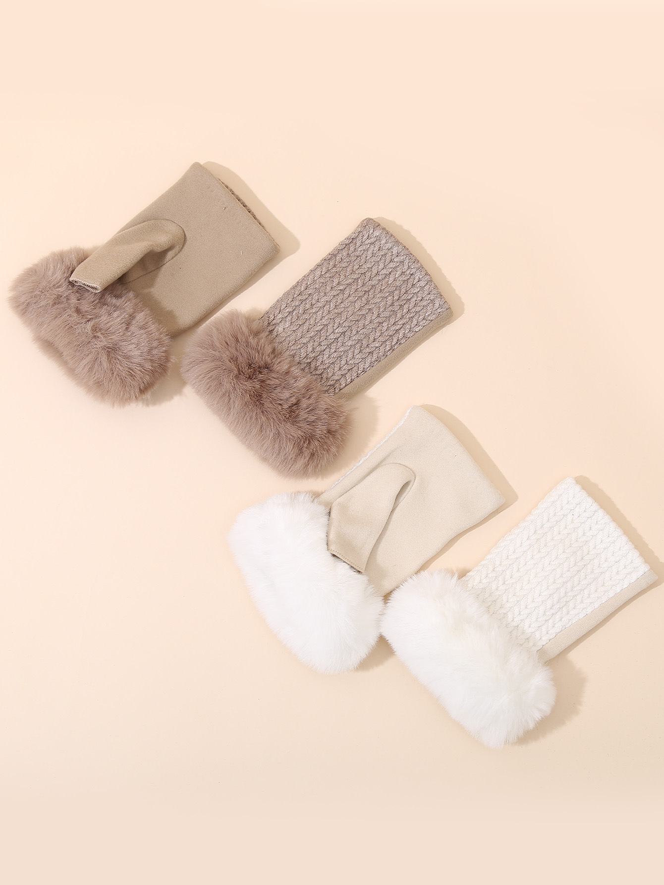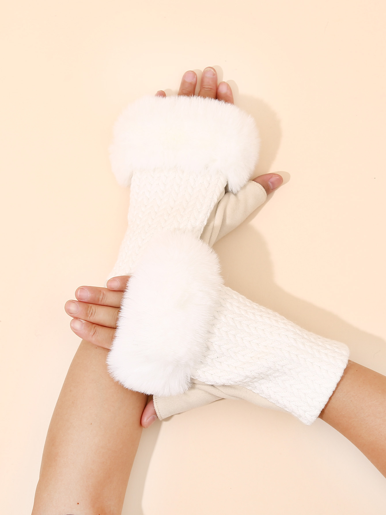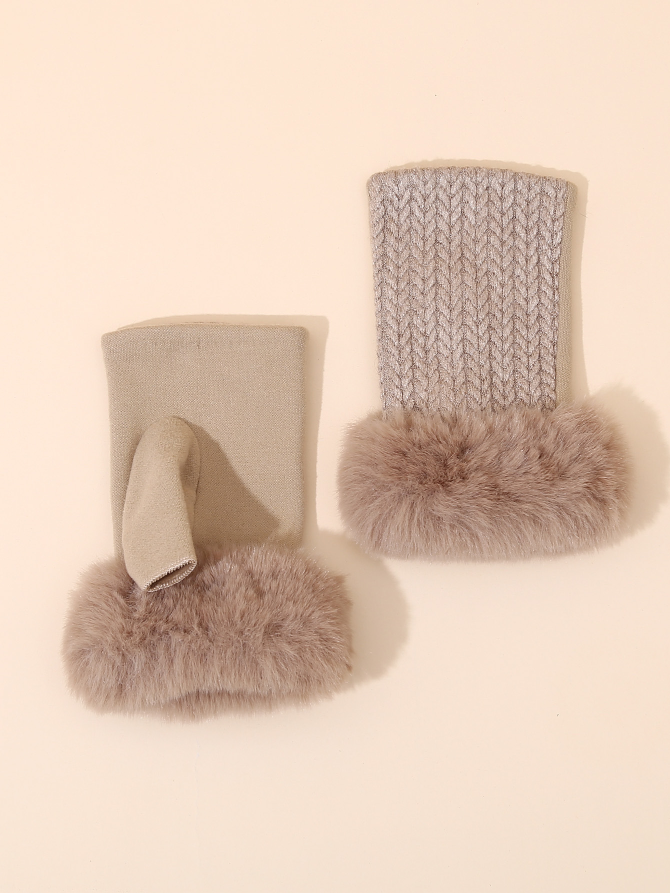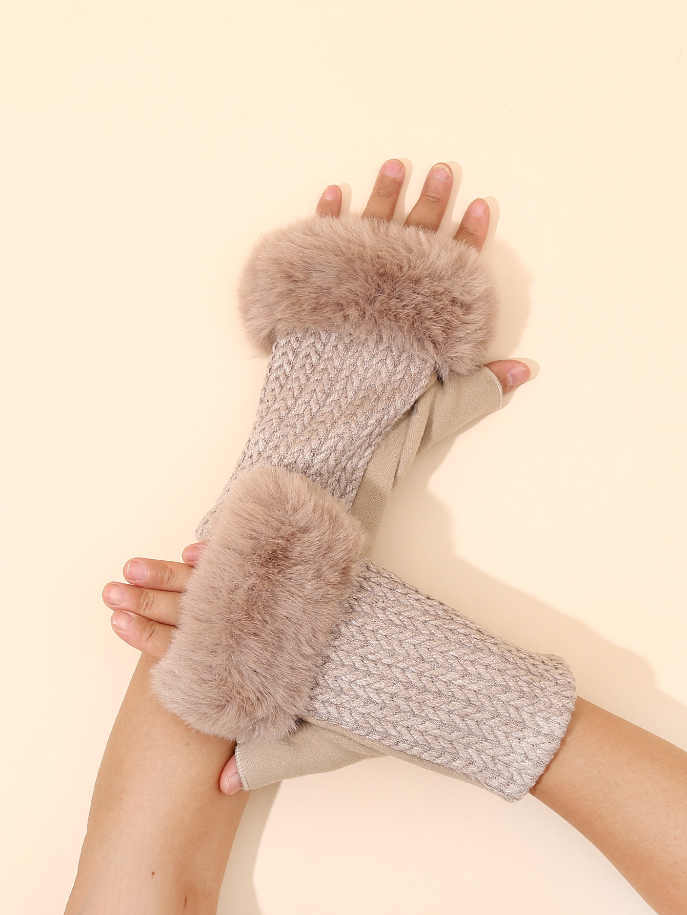 跨境加绒半指手套针织八字麻花露指手套秋冬保暖翻口短款毛线手套