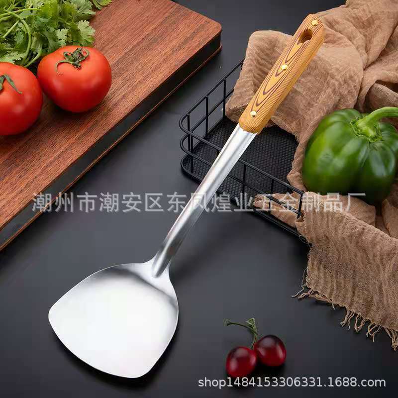 不锈钢无磁锅铲+汤勺+火锅勺+漏勺+木柄汤勺锅铲地摊9.9元店 批发