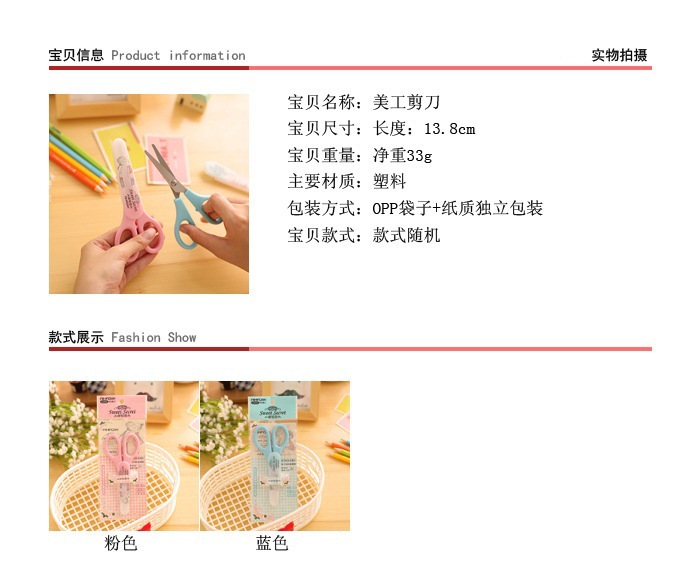 爱好新款带安全套剪刀 可爱卡通小清新剪纸刀 甜秘密安全剪刀145