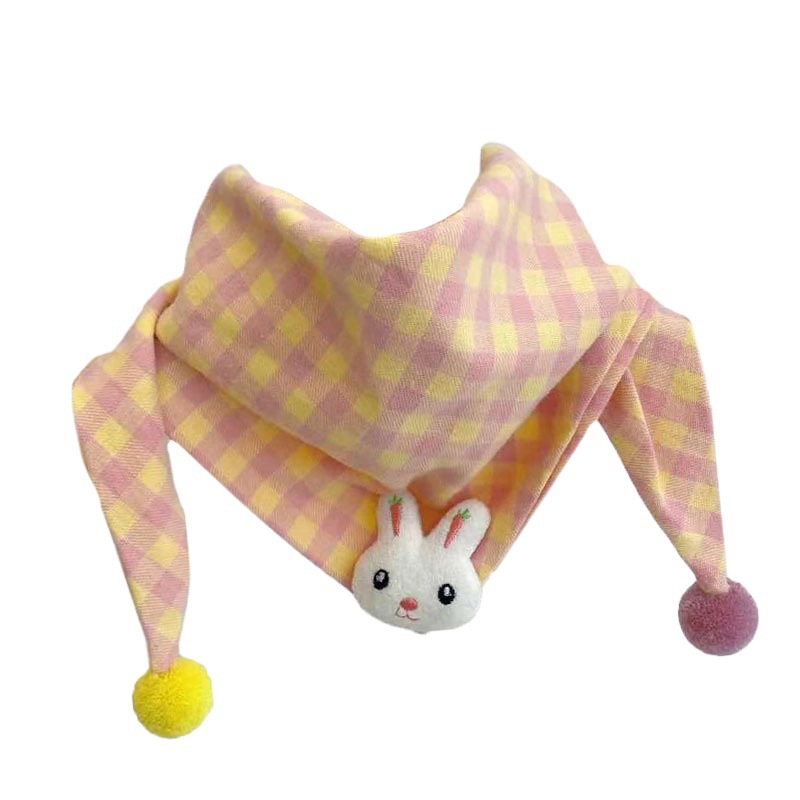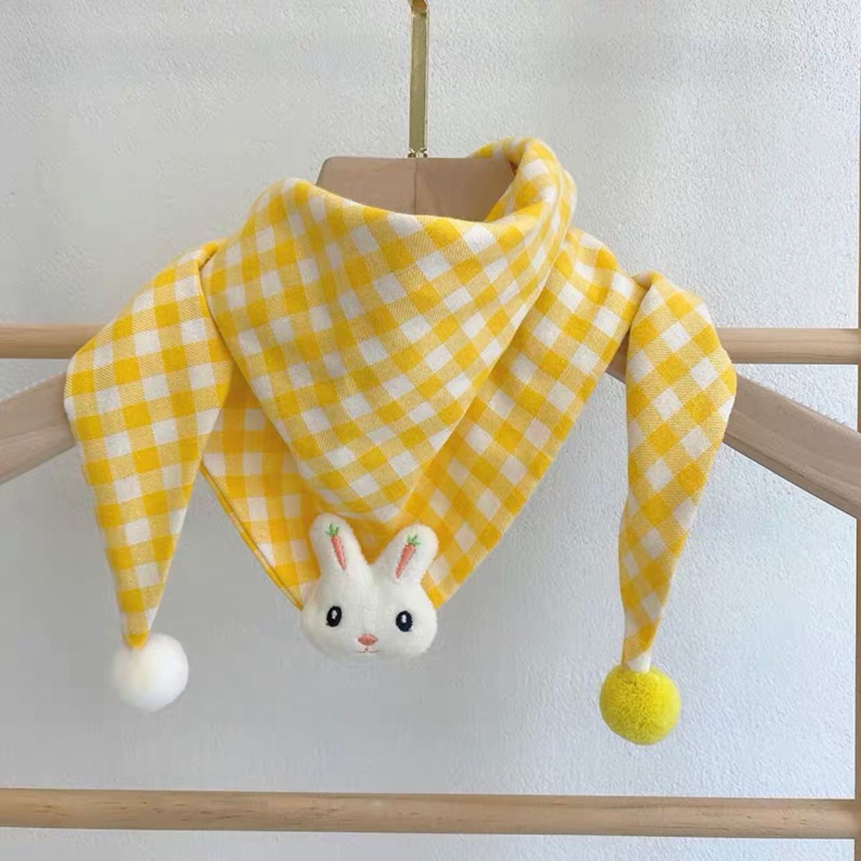 韩版新款棉麻儿童格子三角巾2021卡通宝宝围巾婴儿口水巾两用围脖