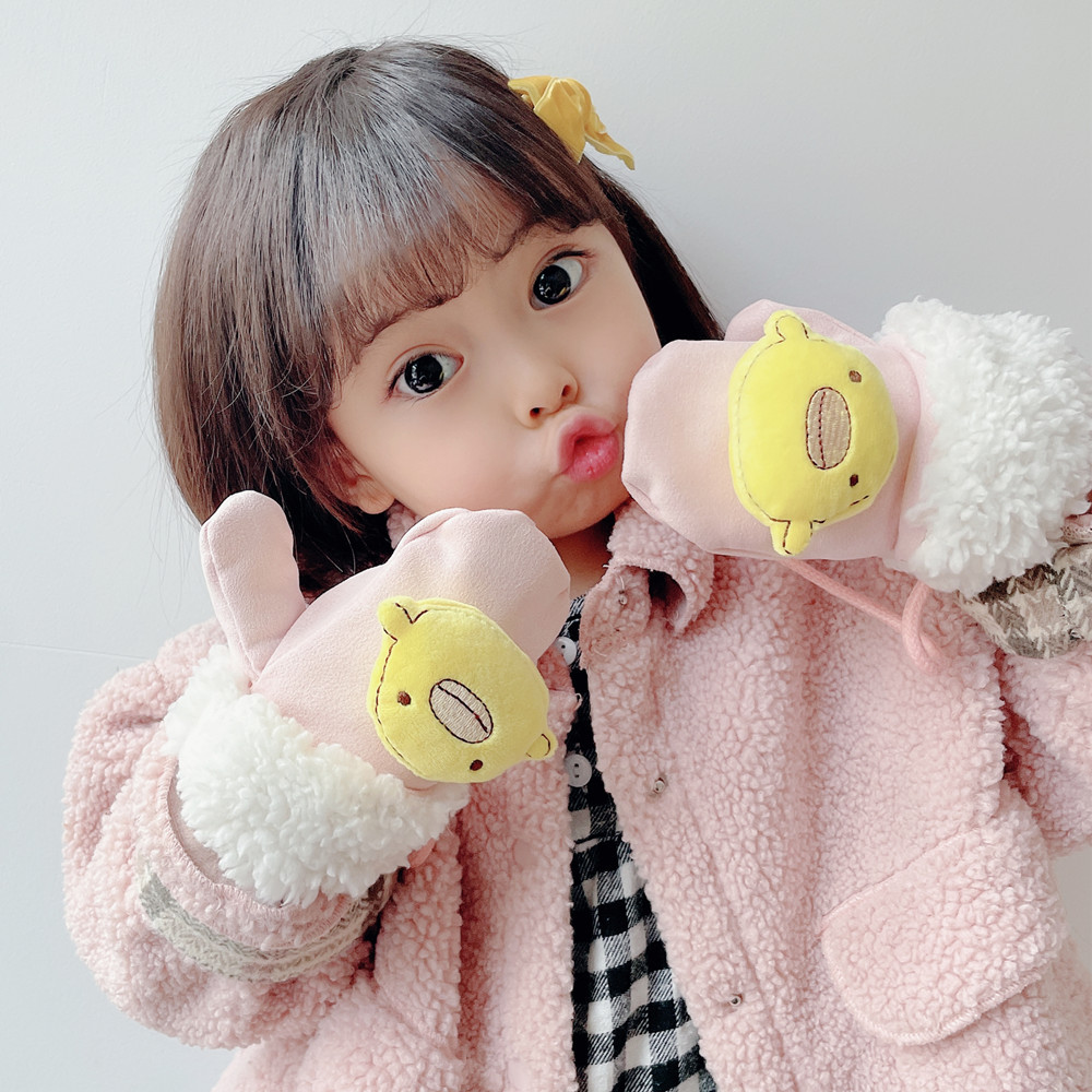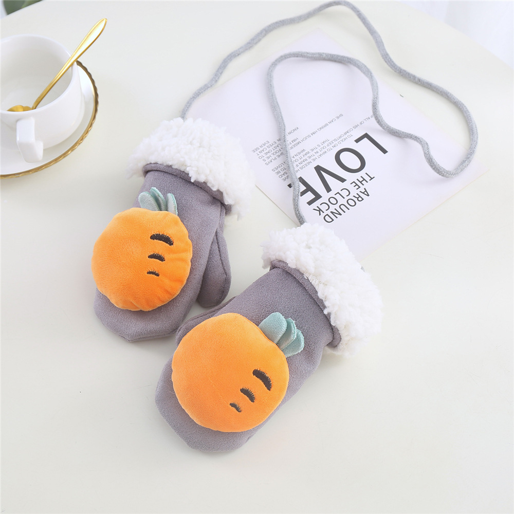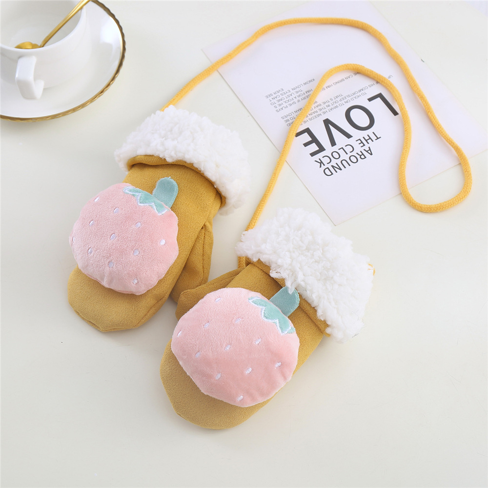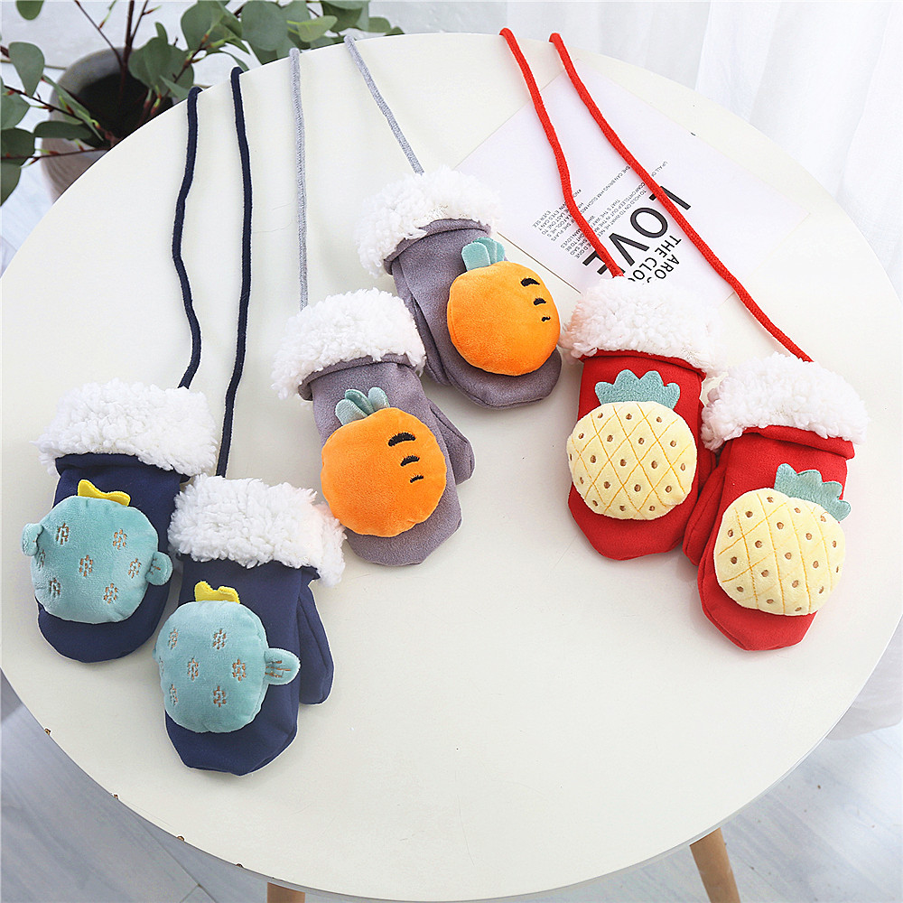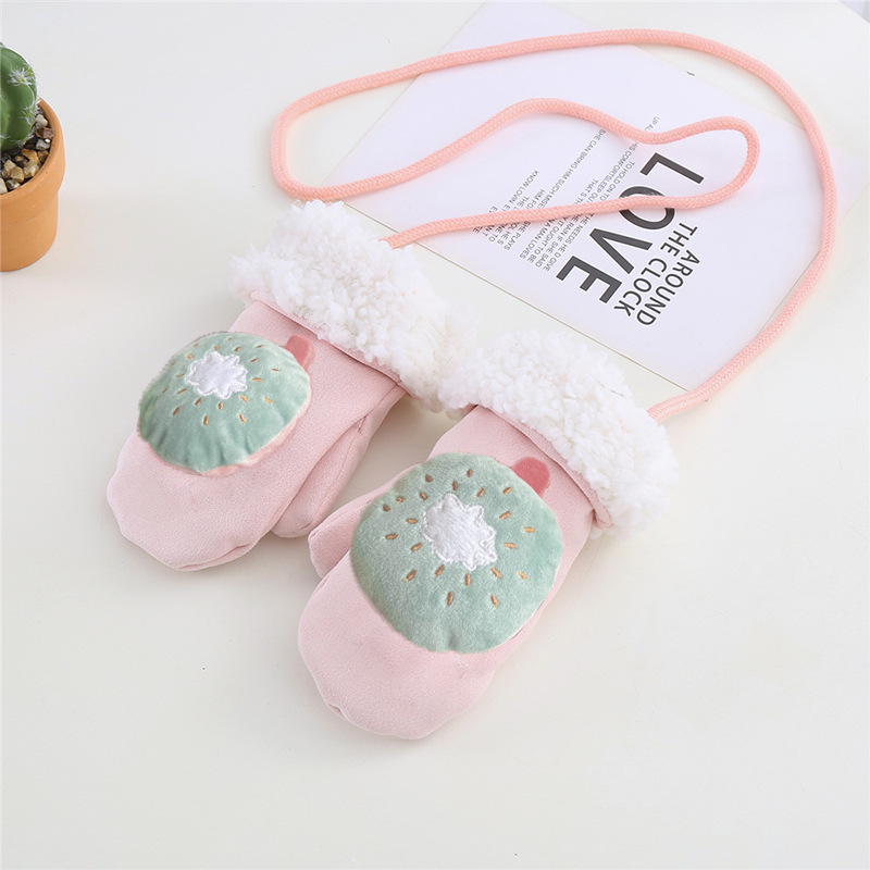 儿童手套秋冬季保暖手套男童女童小孩麂皮绒手套卡通水果宝宝手套