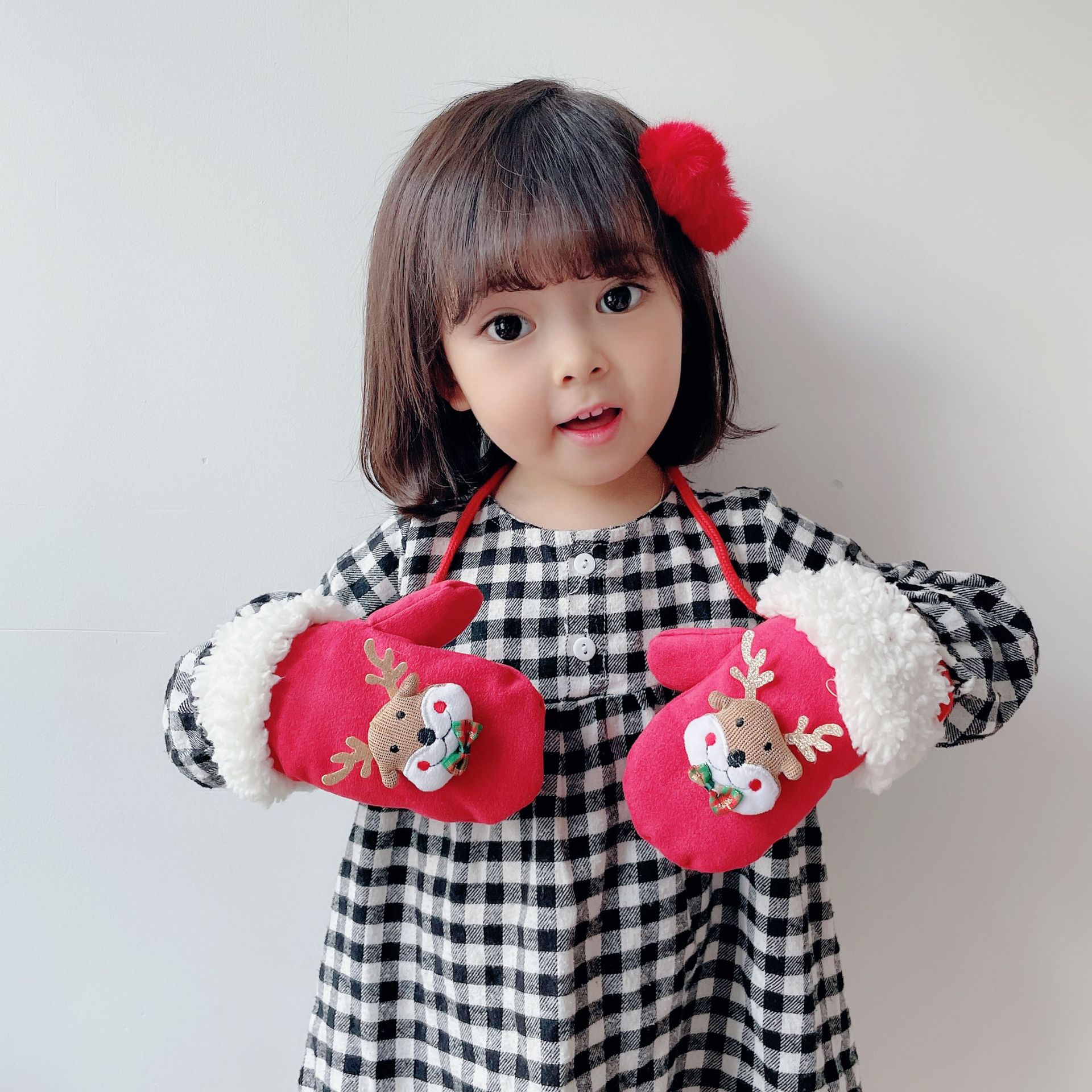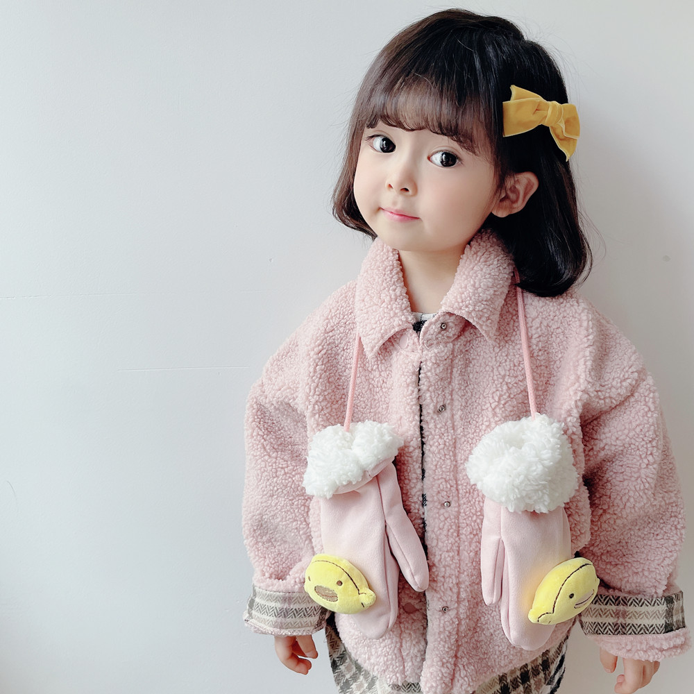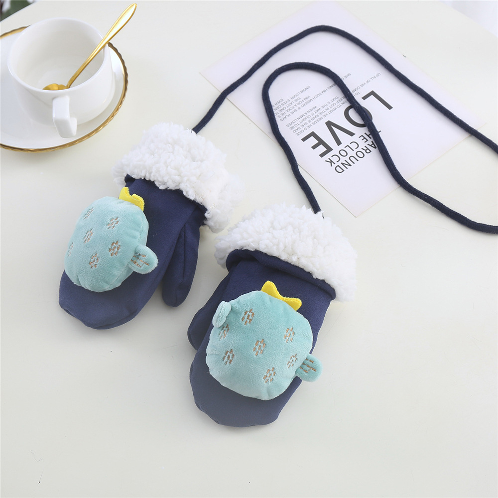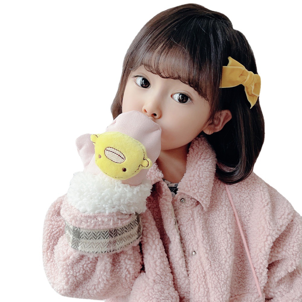 儿童手套秋冬季保暖手套男童女童小孩麂皮绒手套卡通水果宝宝手套