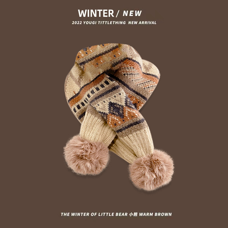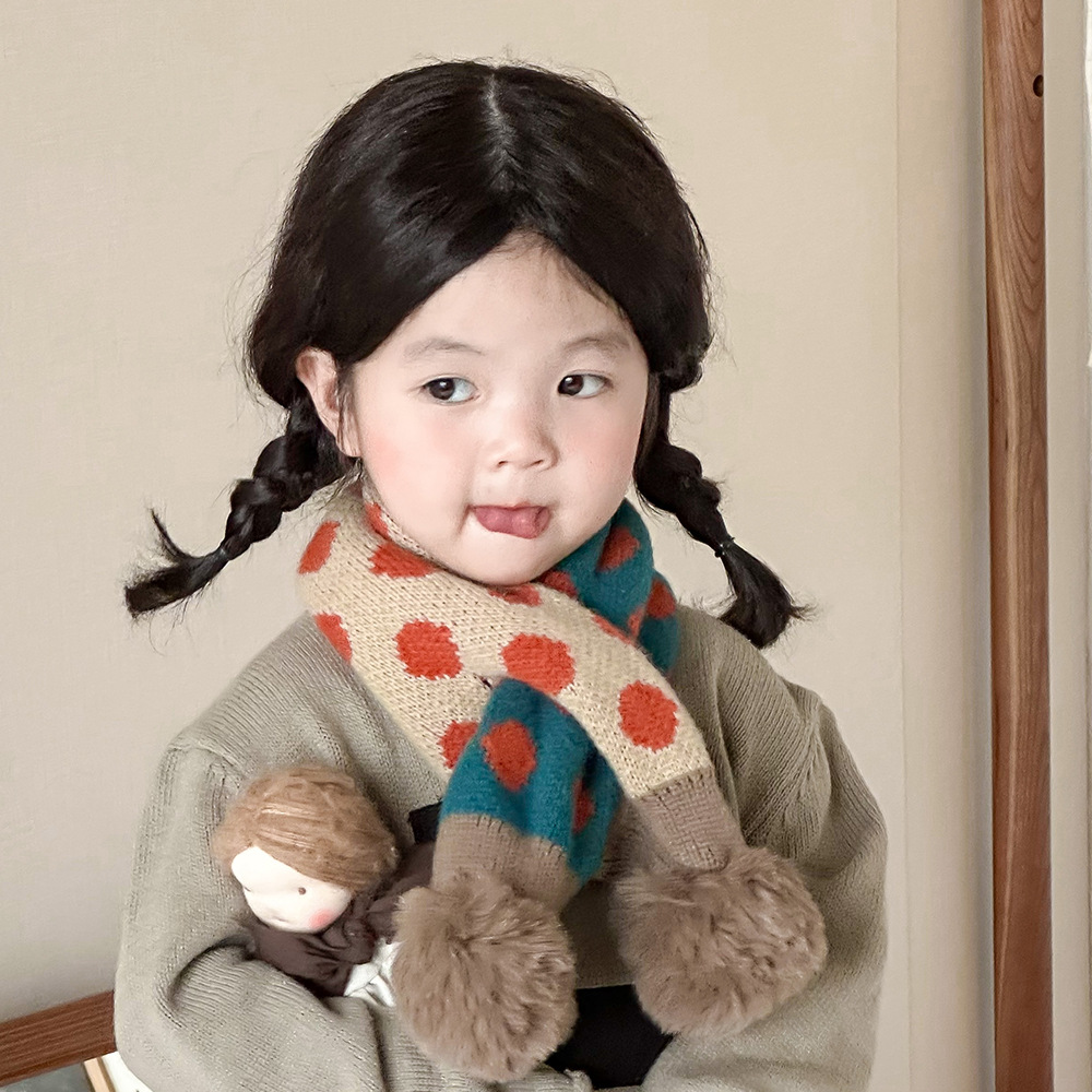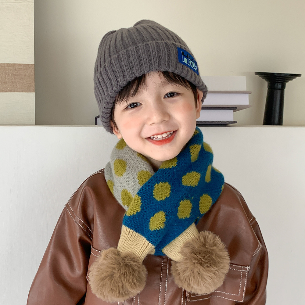 韩系秋冬儿童围巾新款男童女童保暖洋气针织围脖宝宝交叉脖套潮