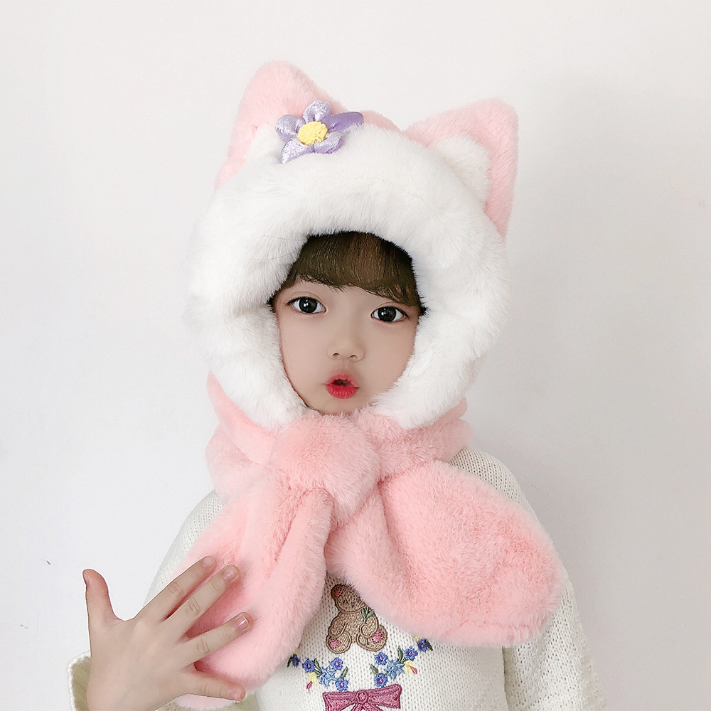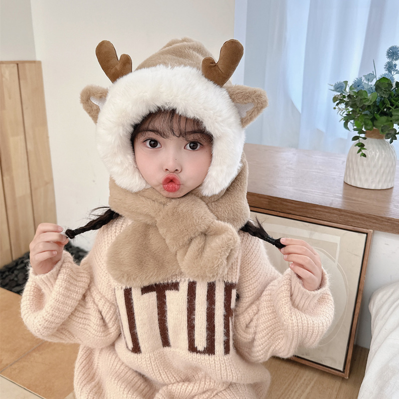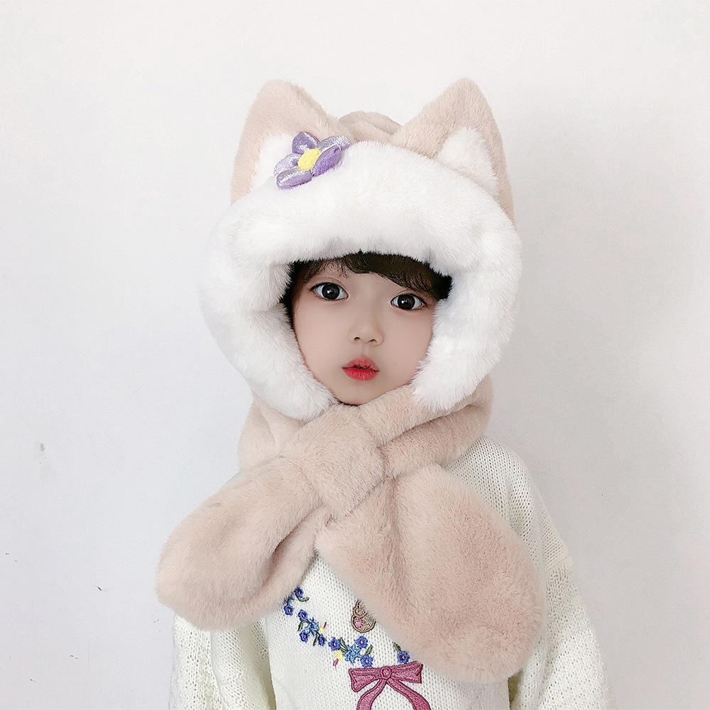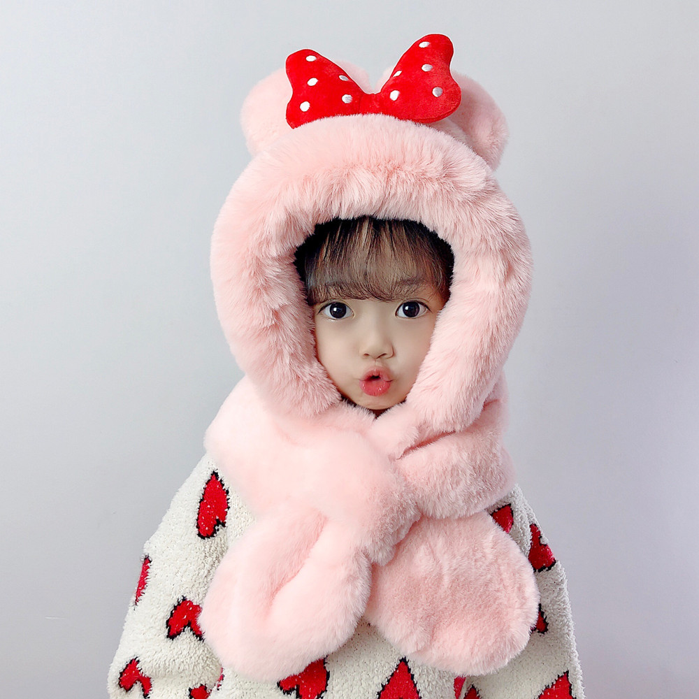 冬卡通儿童帽子韩版可爱宝宝护耳帽男女童围巾一体帽中小童套头帽