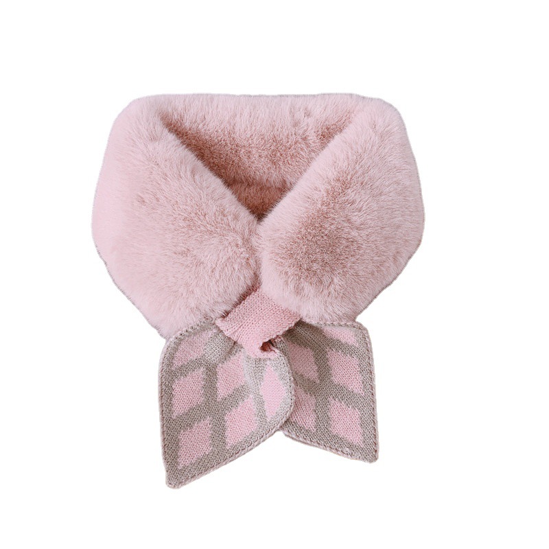 new autumn and winter solid color imitation dehaired angora children‘s neckerchief korean style versatile lattice baby scarf boys and girls dots bandana tide
