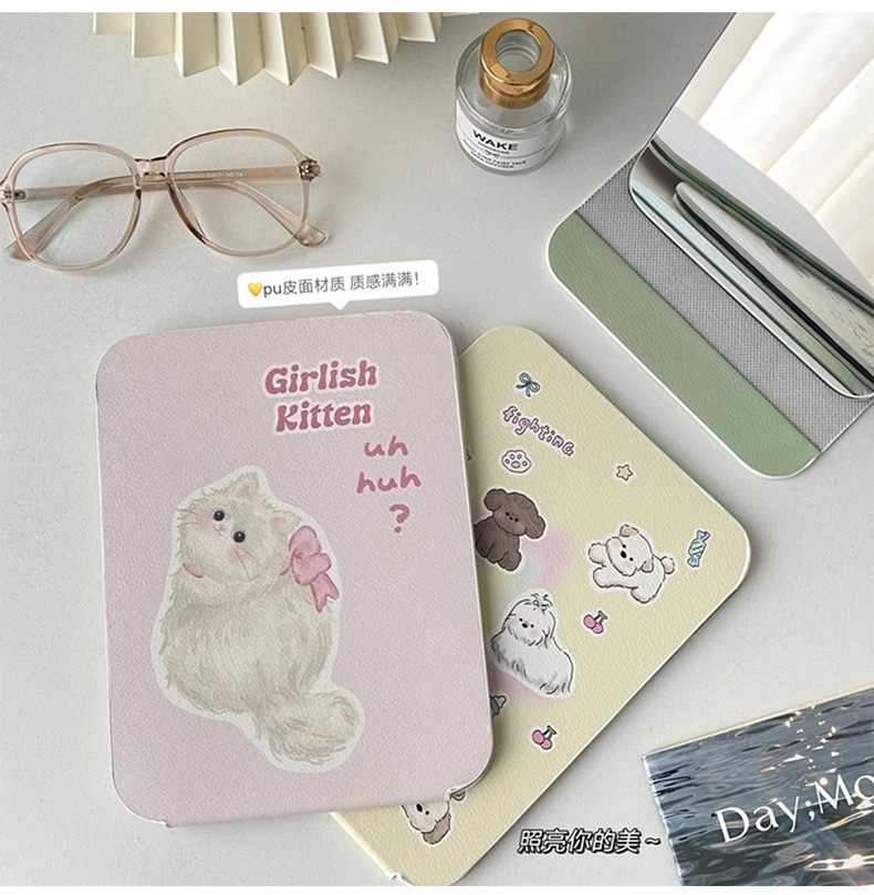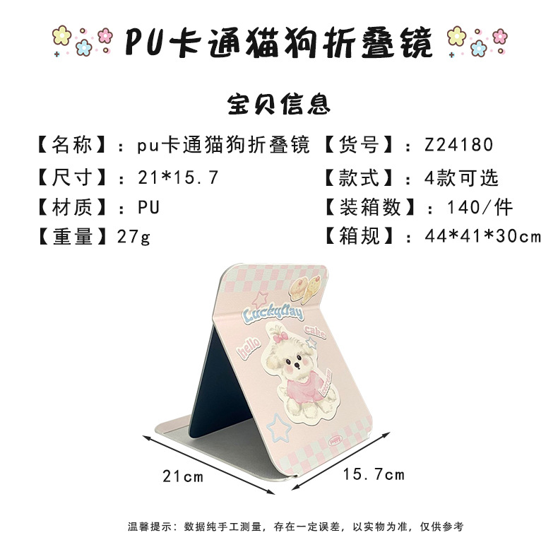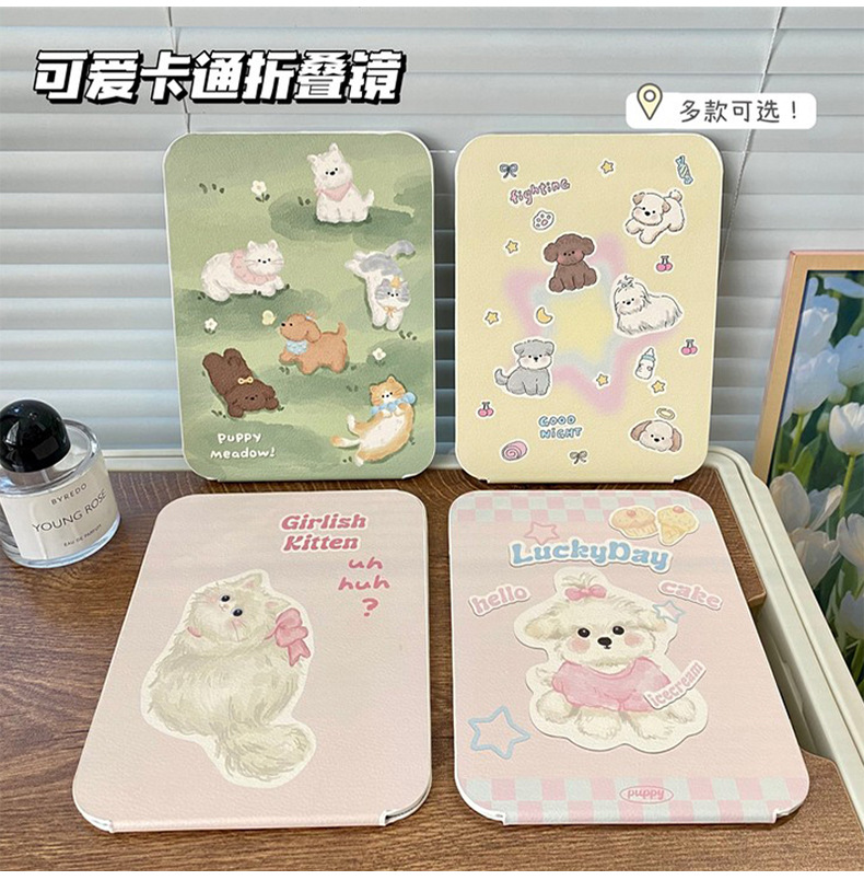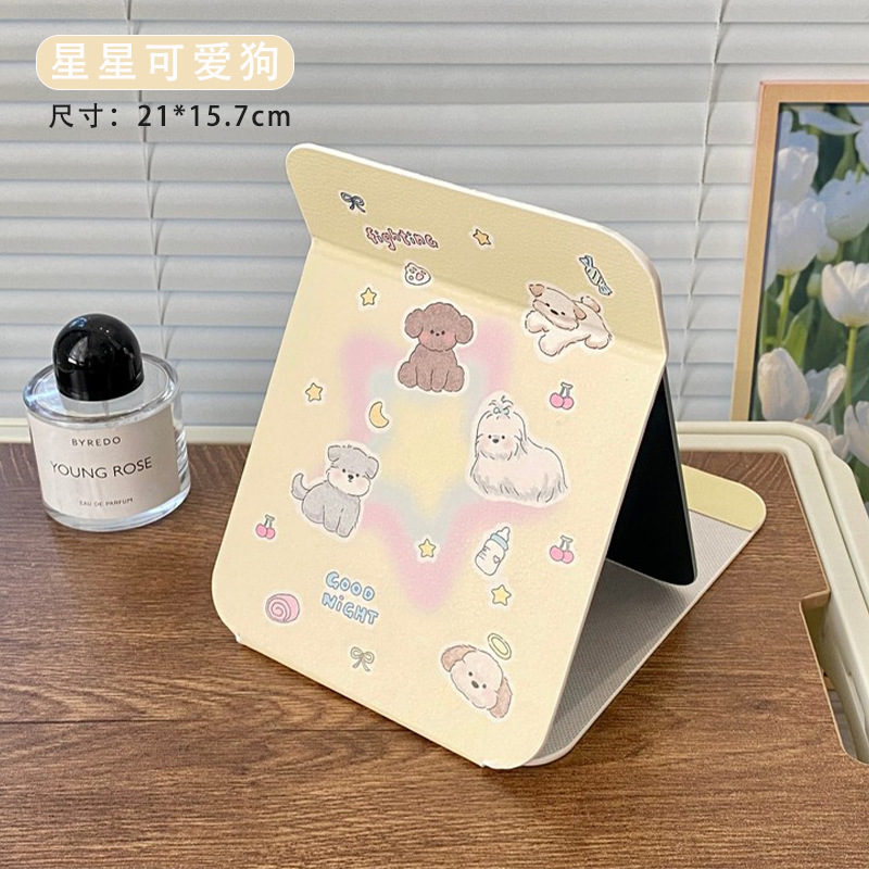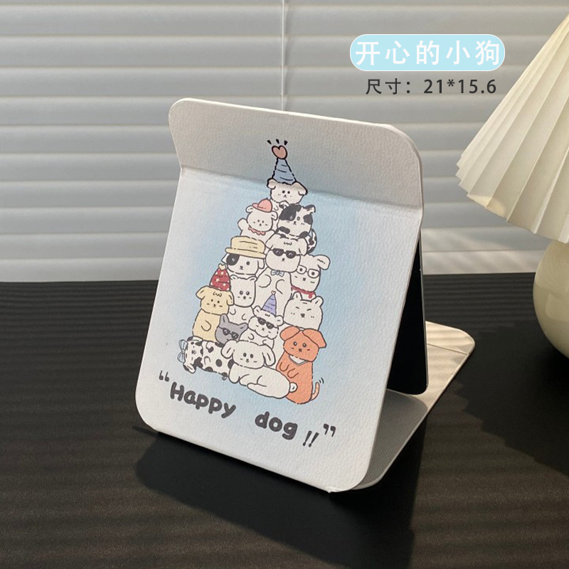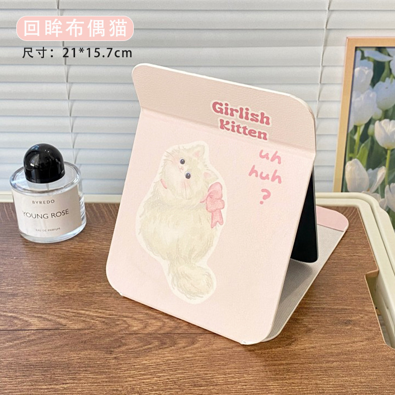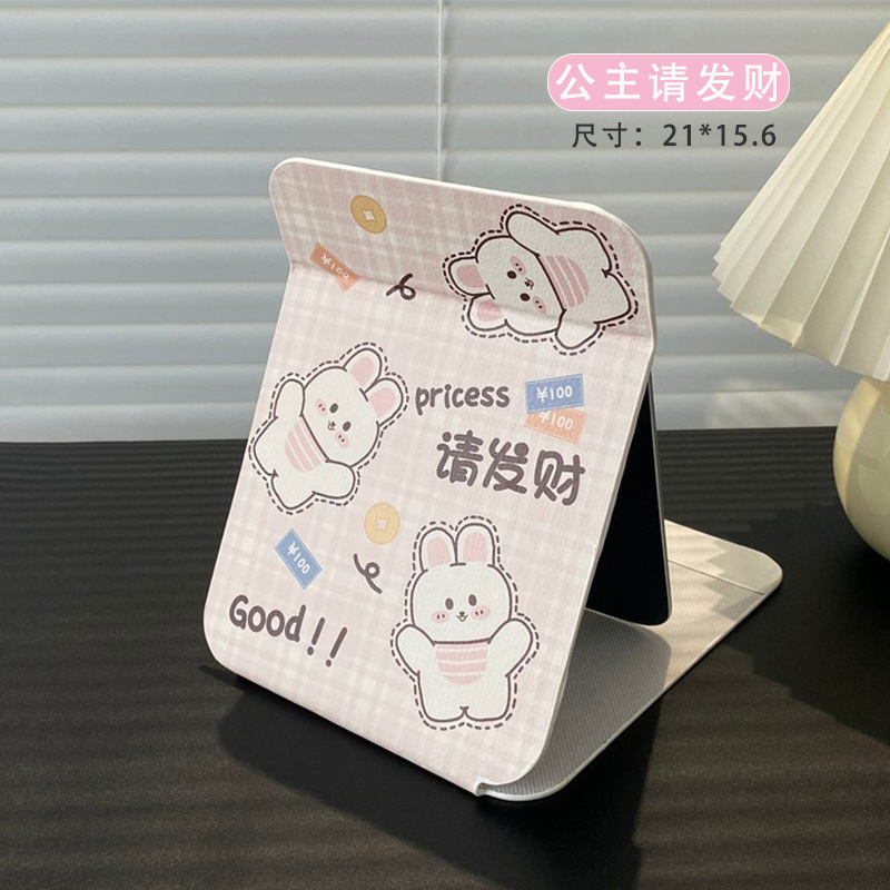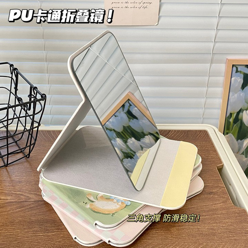 ins卡通全屏折叠镜PU化妆镜学生宿舍梳妆镜台式桌面可立镜子批发