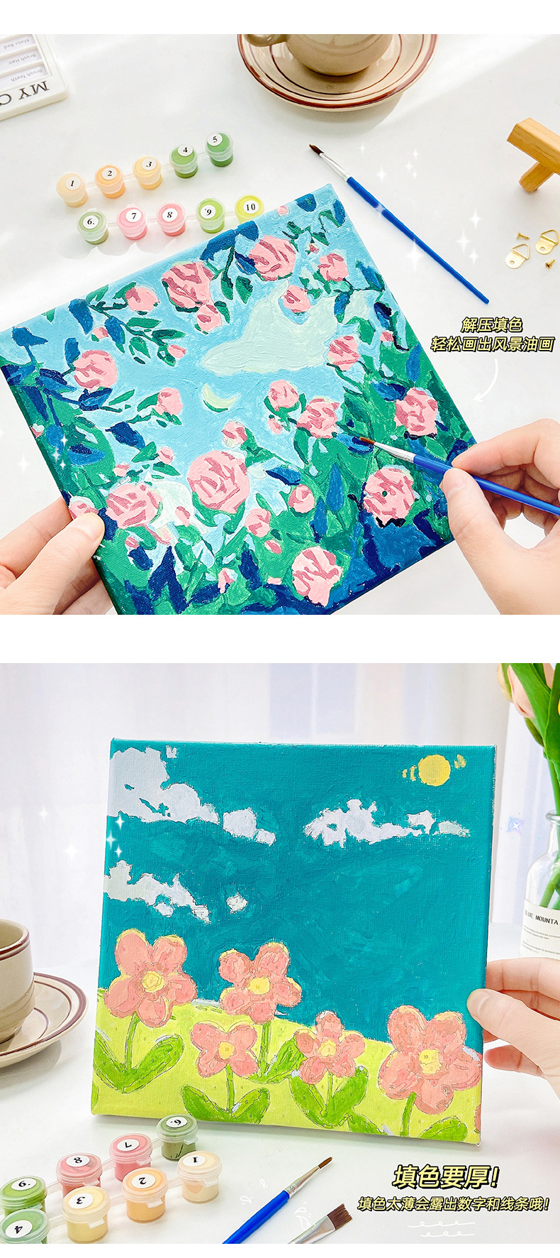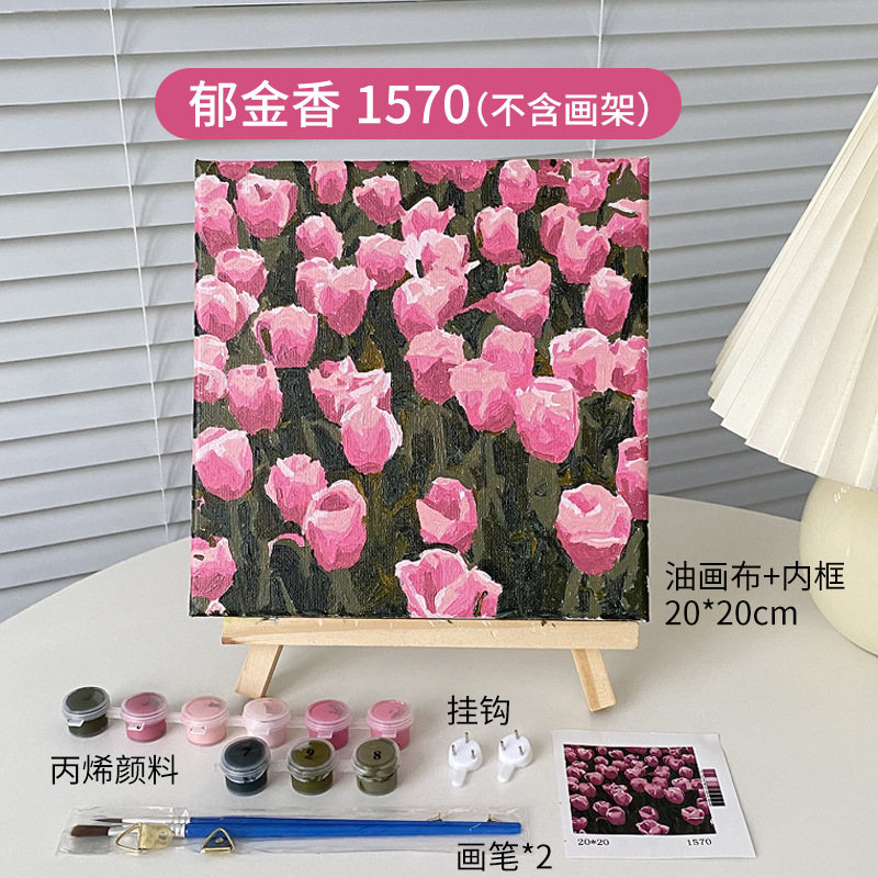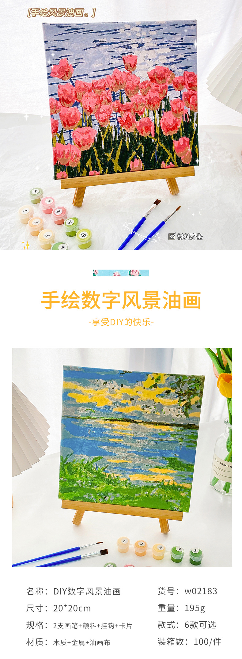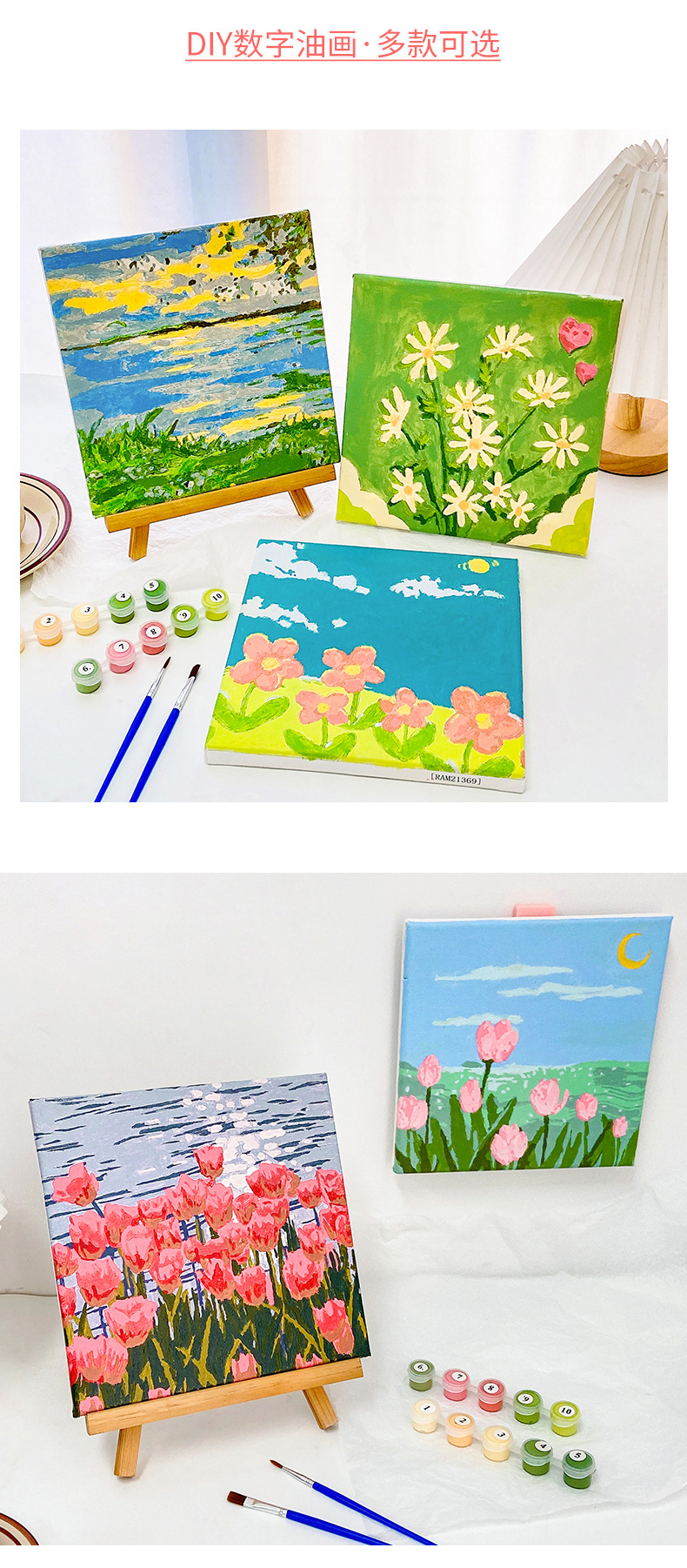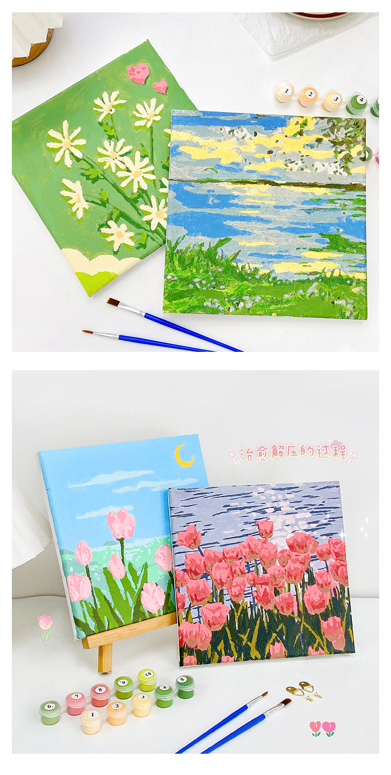 郁金香数字油画diy客厅装饰画套装学生儿童手绘风景画填色画批发
