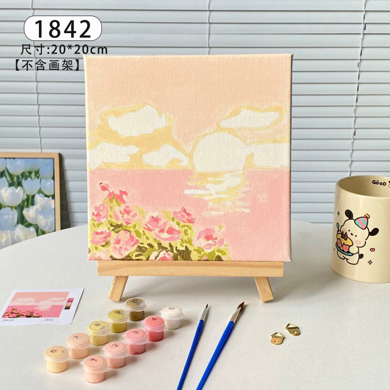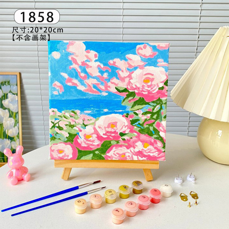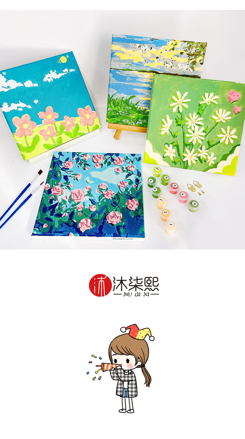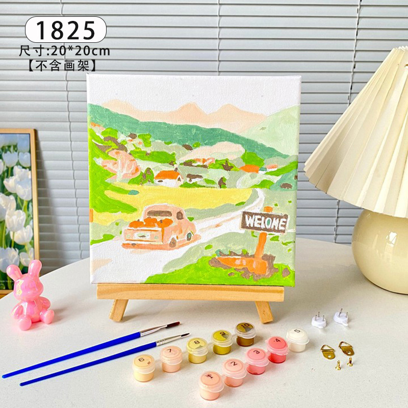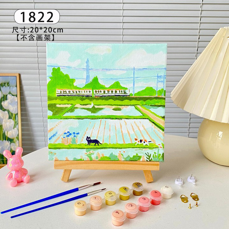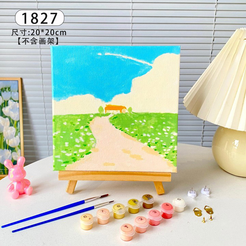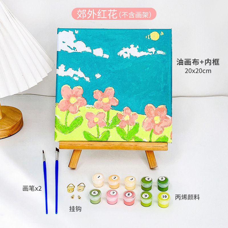 郁金香数字油画diy客厅装饰画套装学生儿童手绘风景画填色画批发