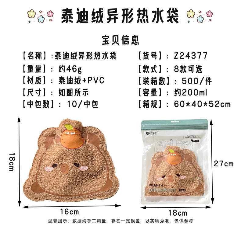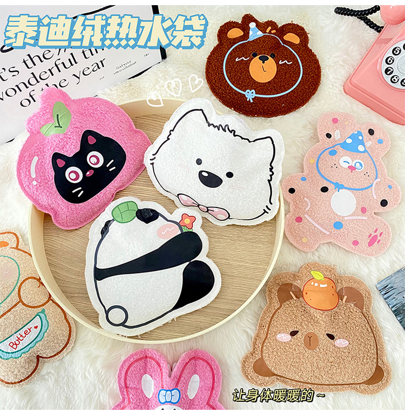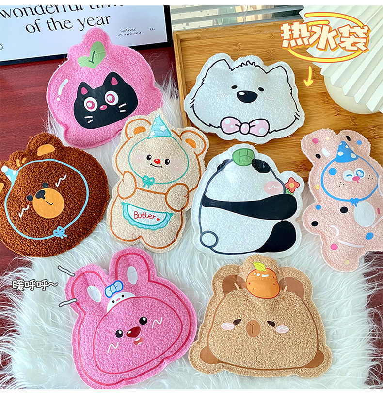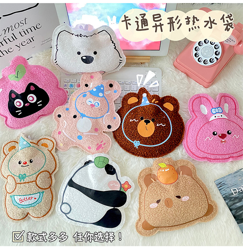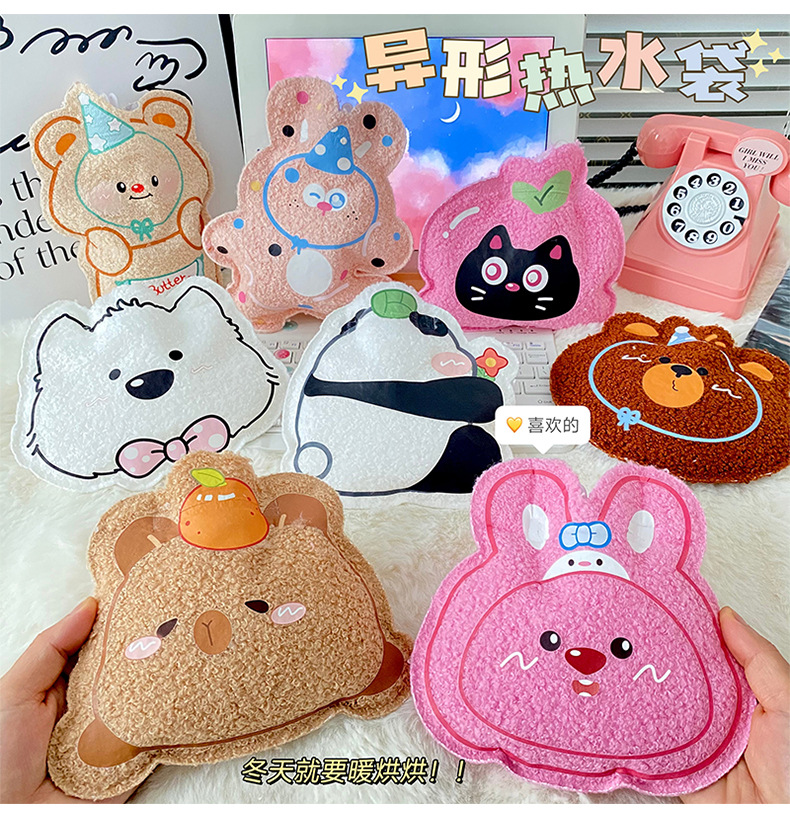 熊猫异形热水袋卡通毛绒注水暖水袋卡皮巴拉便携暖手宝冬季暖宝宝