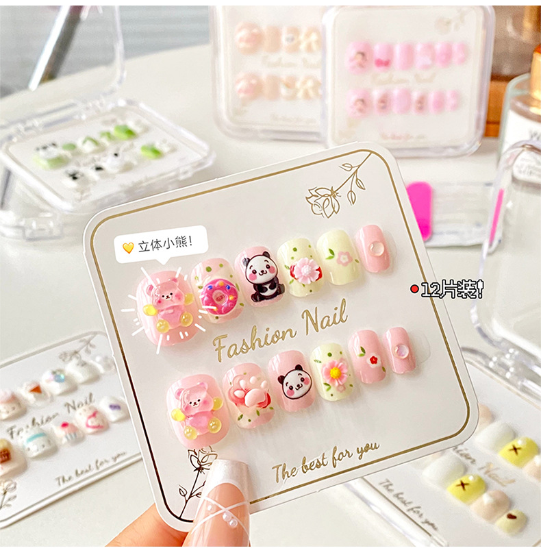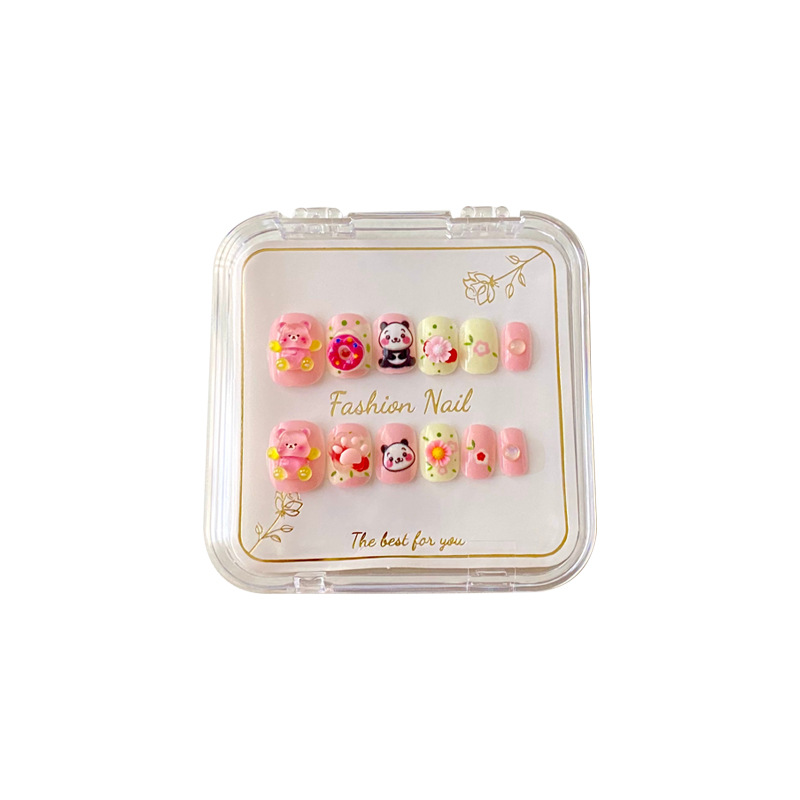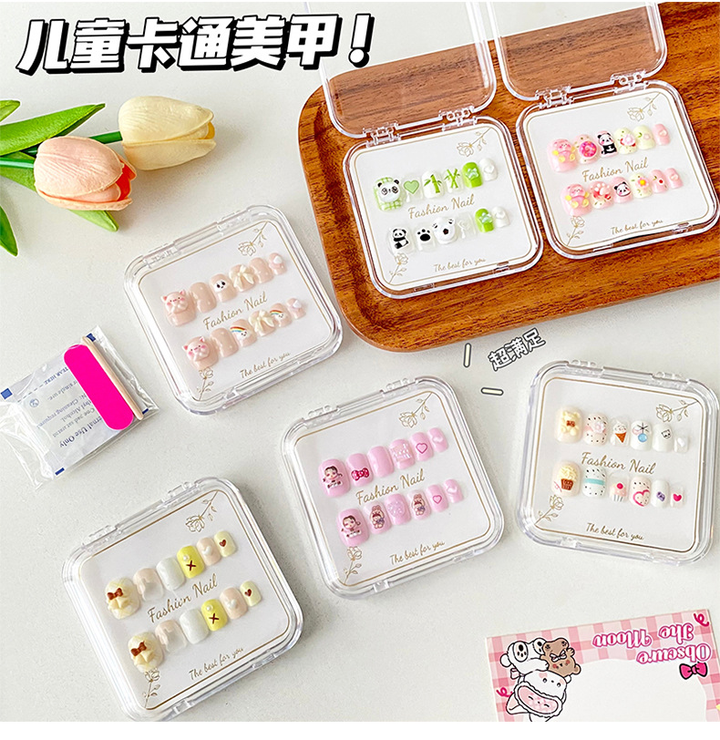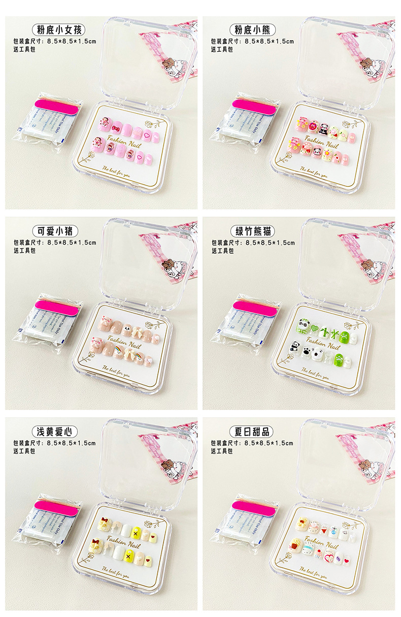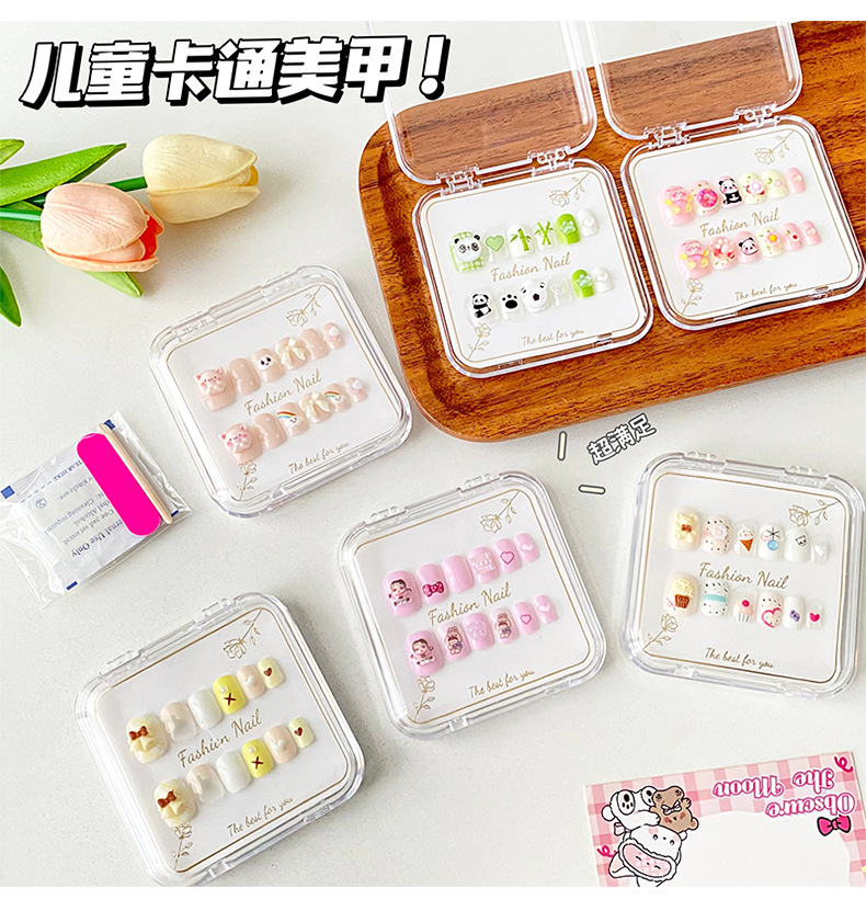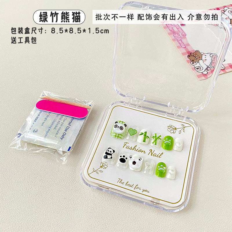 儿童穿戴甲短款卡通熊猫美甲贴 小朋友假指甲可拆卸新款美甲贴片