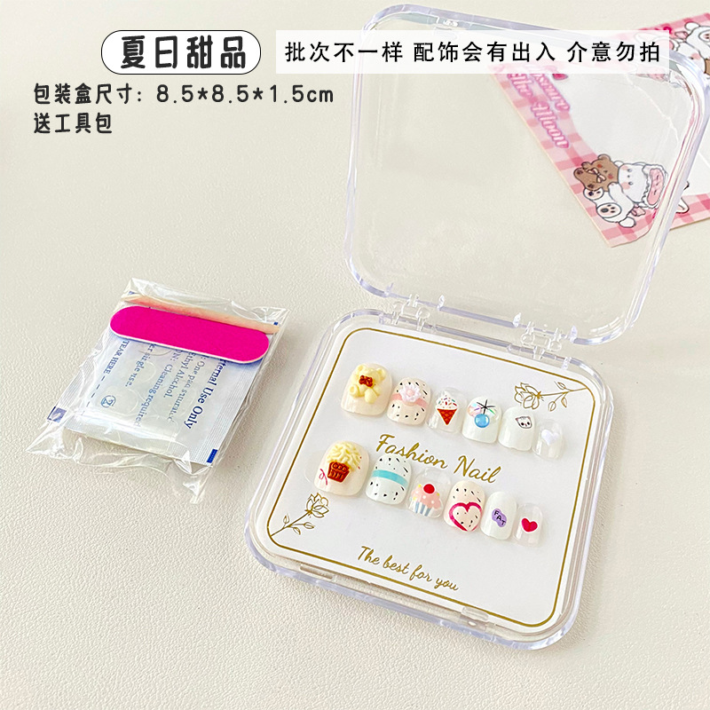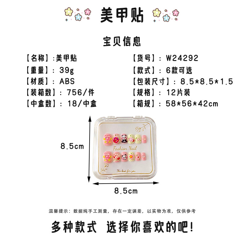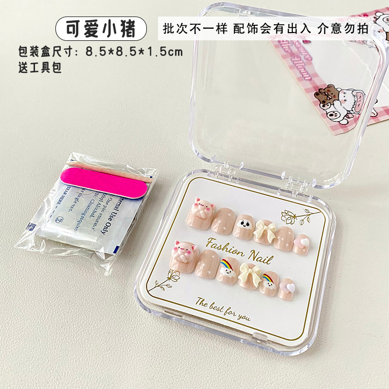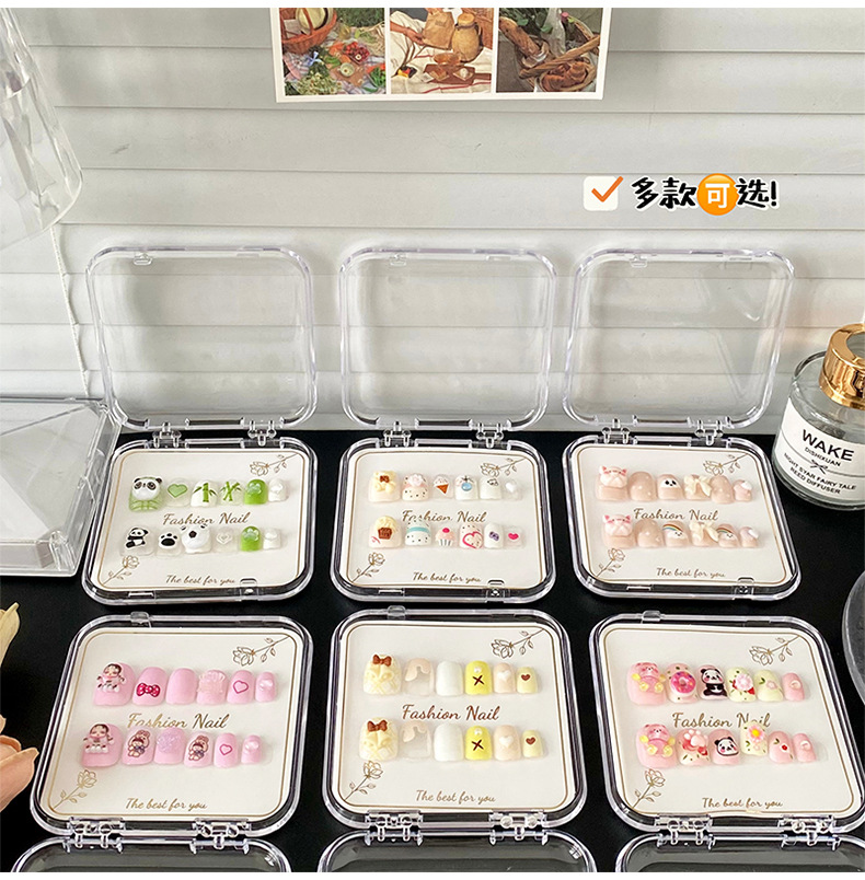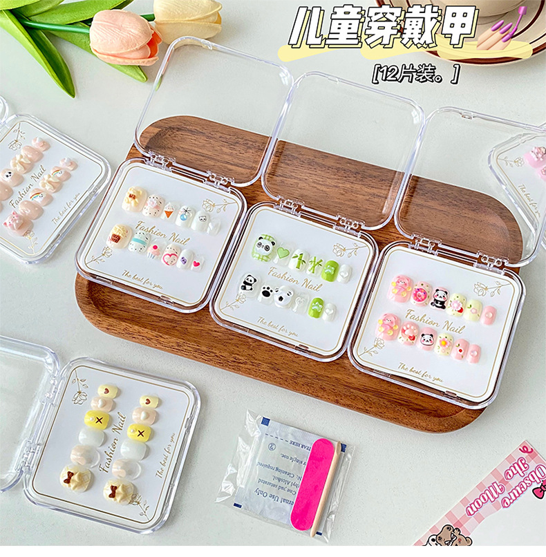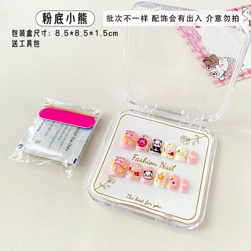 儿童穿戴甲短款卡通熊猫美甲贴 小朋友假指甲可拆卸新款美甲贴片