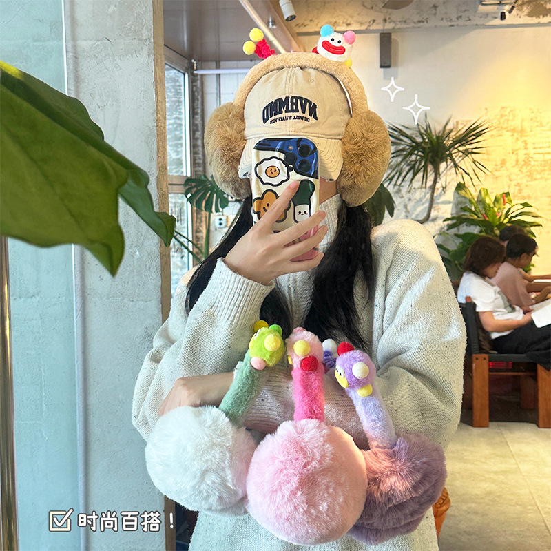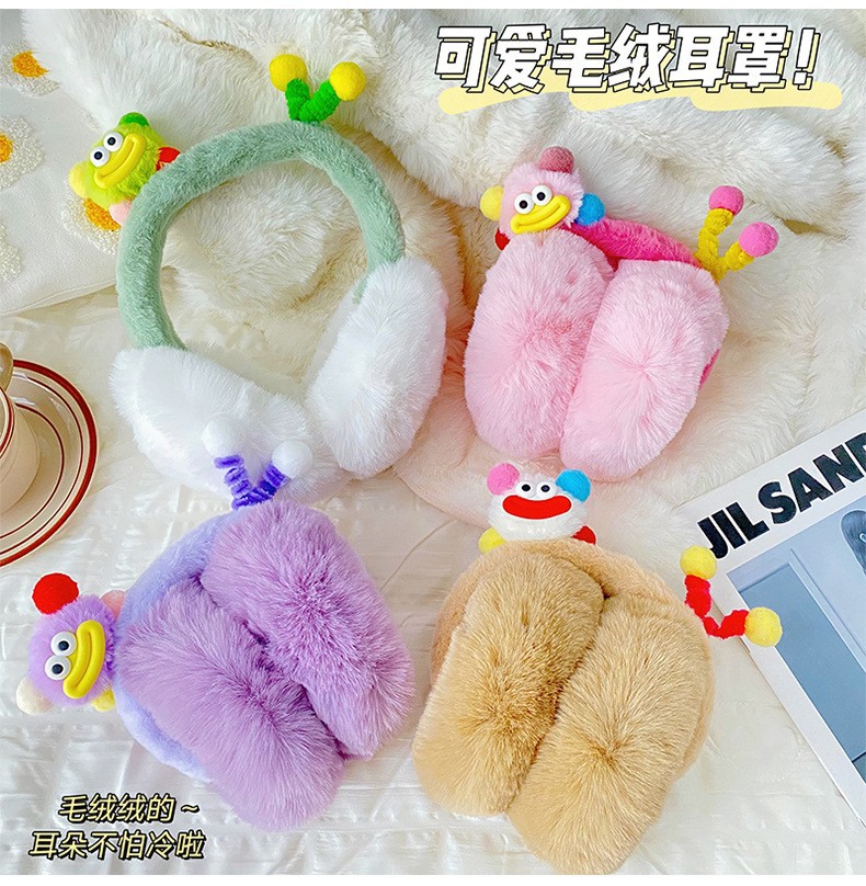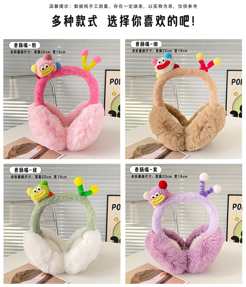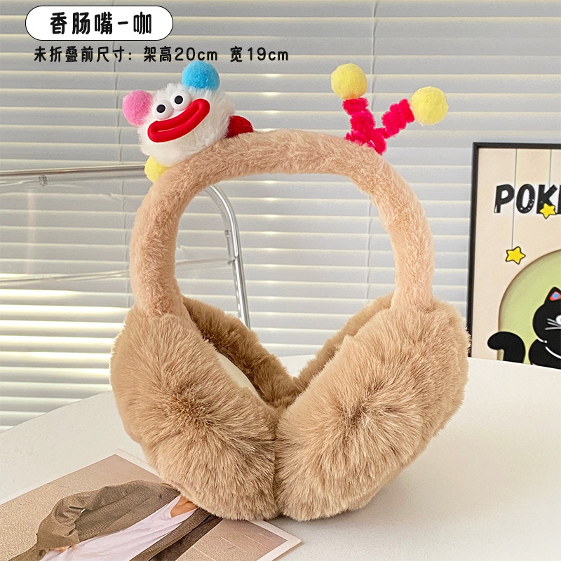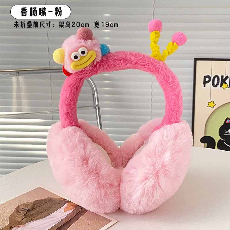 多巴胺少女毛球耳罩丑萌大眼香肠嘴冬季亲子护耳耳包外出骑行防寒