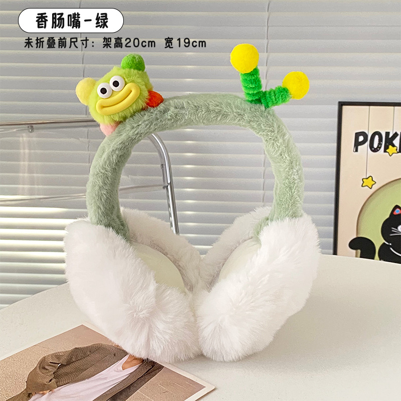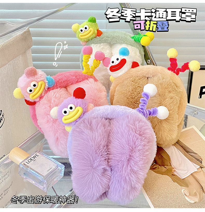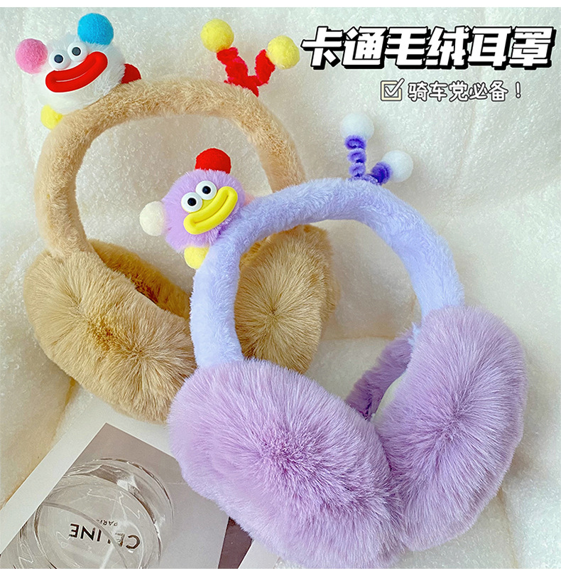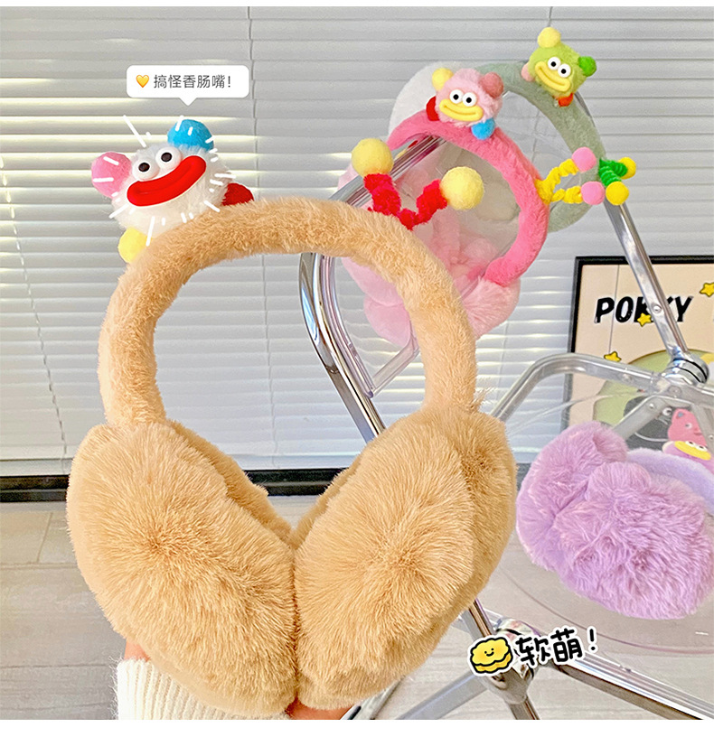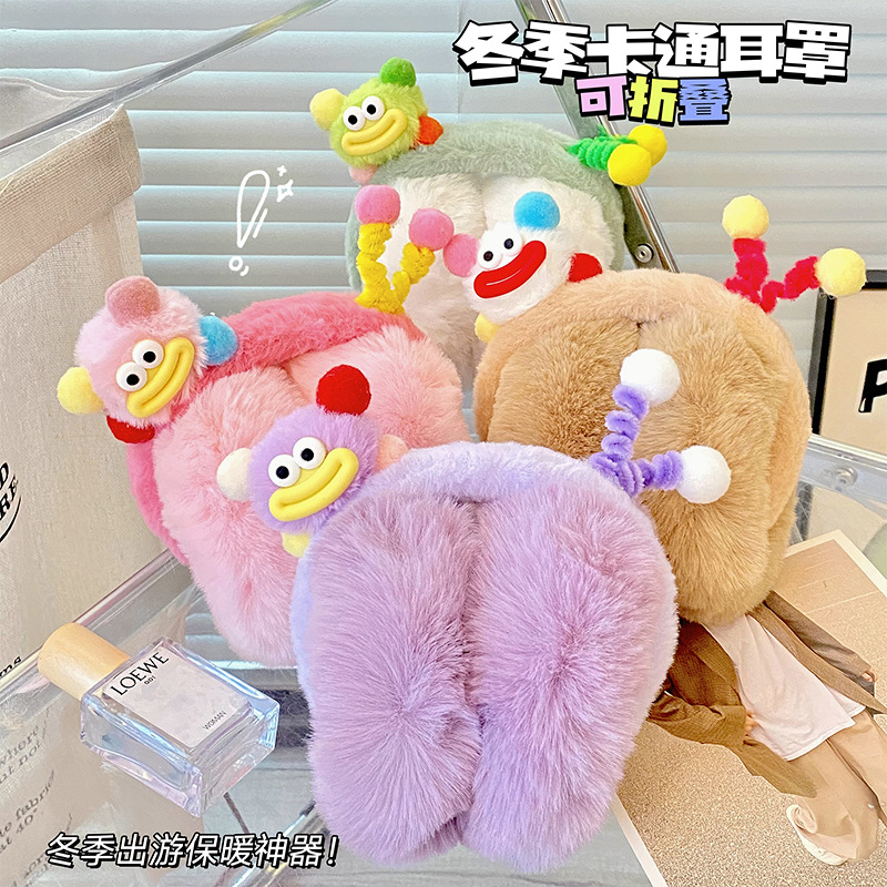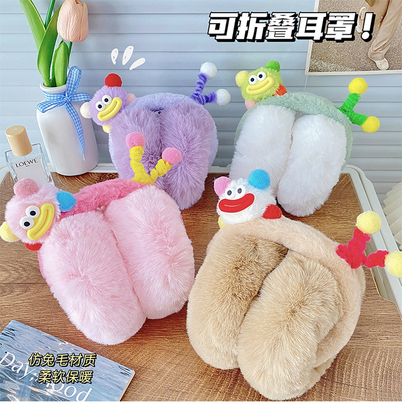 多巴胺少女毛球耳罩丑萌大眼香肠嘴冬季亲子护耳耳包外出骑行防寒
