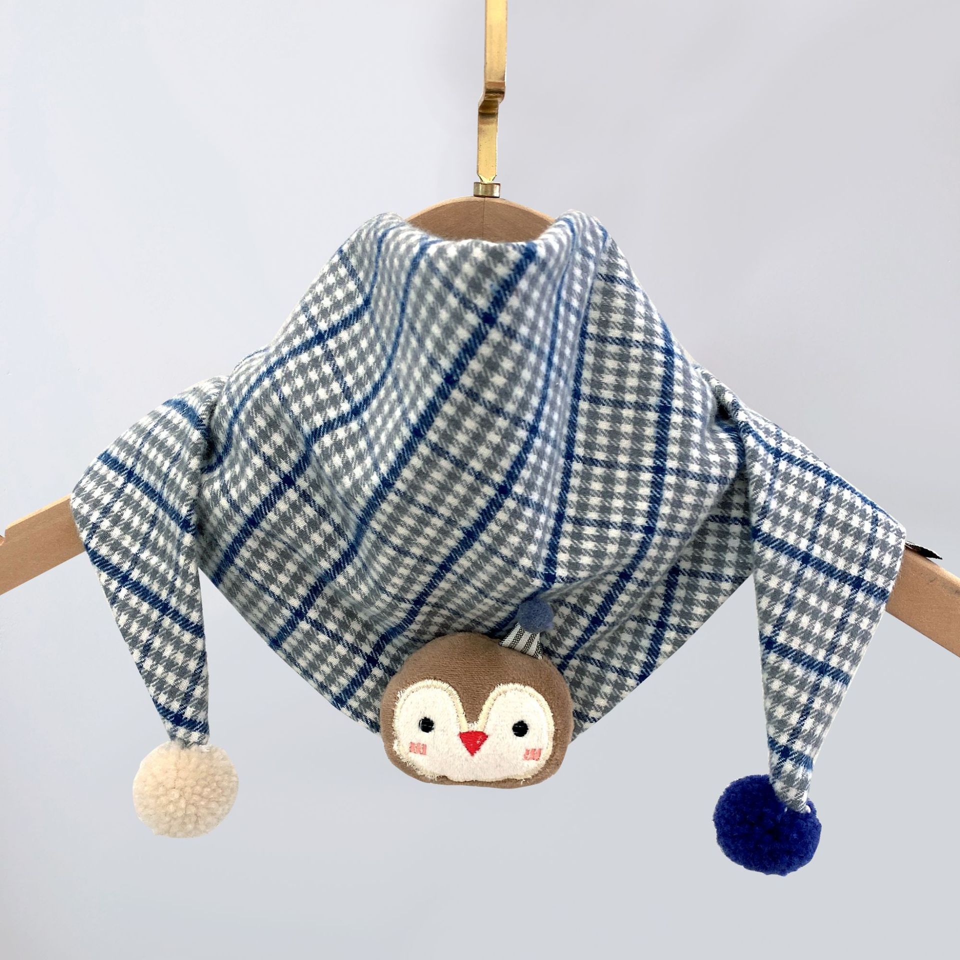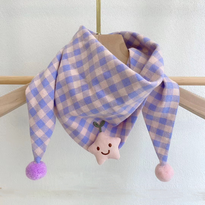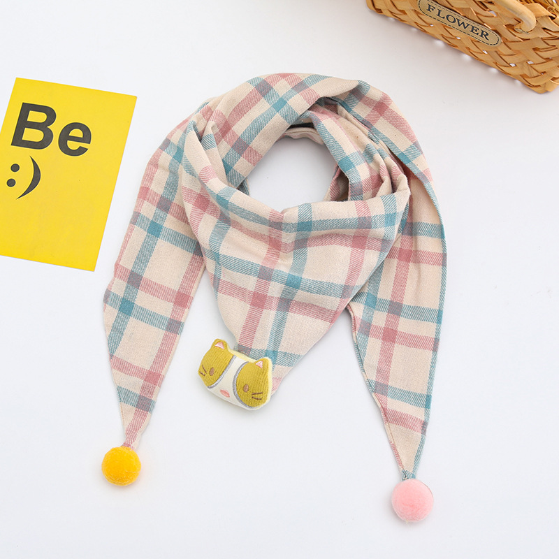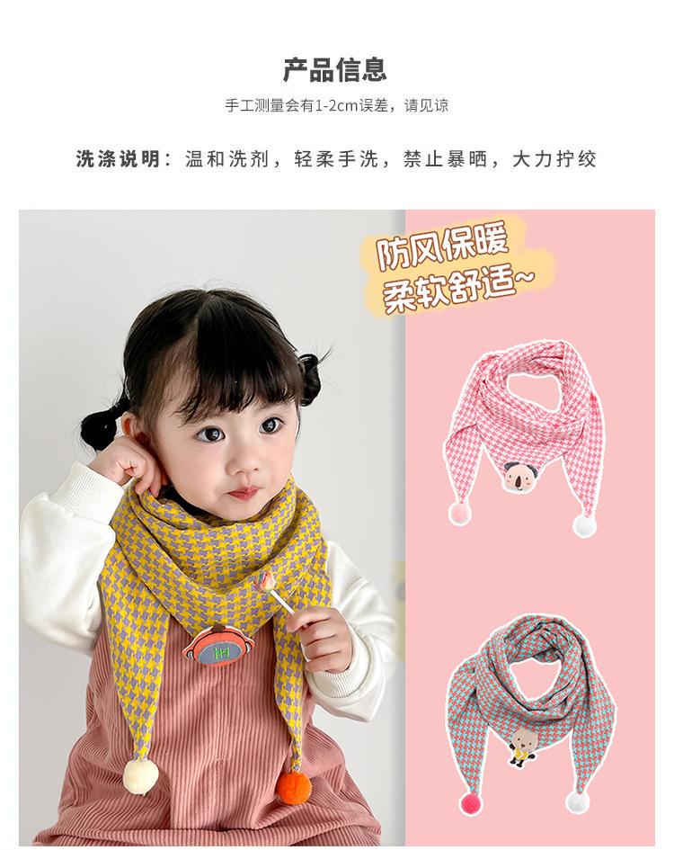 韩版秋冬季儿童千鸟格三角巾棉质婴儿围脖保暖男女童宝宝围巾口水