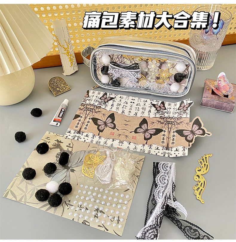 痛包素材包 diy材料套装国风二次元扎包装饰填充笔袋背景素材包