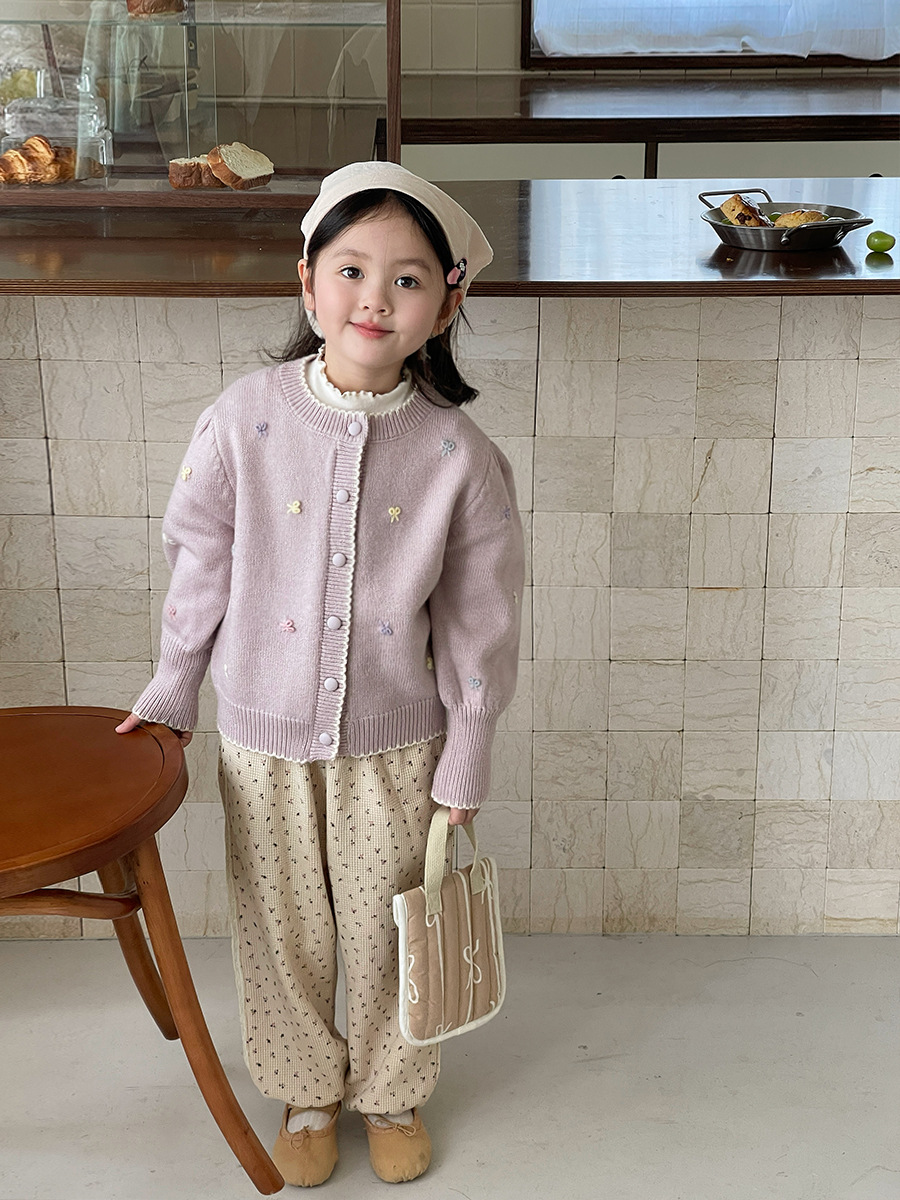 维木童装女童套装2024秋季新款儿童韩版针织毛衣开衫裤子宝宝衣服