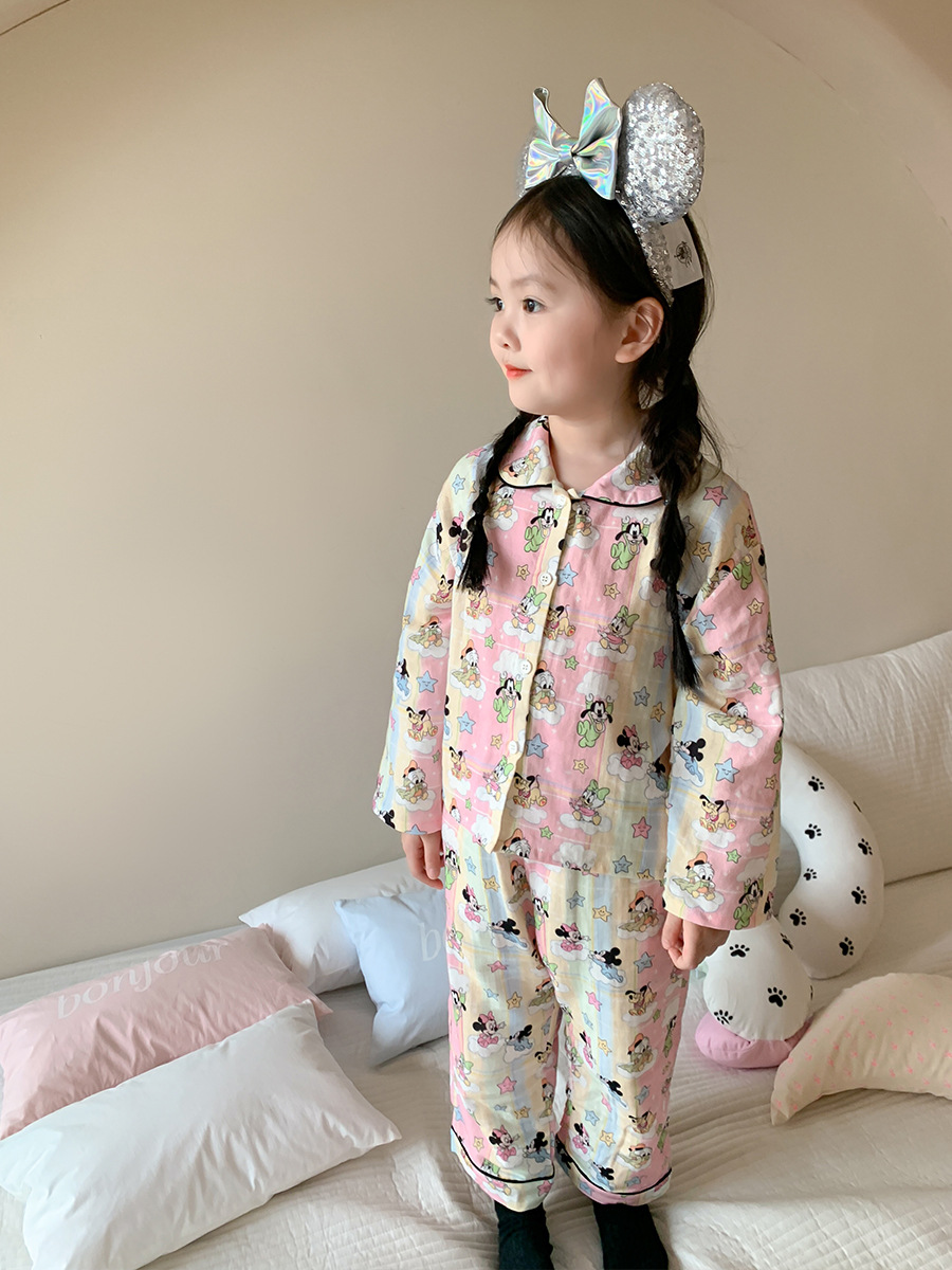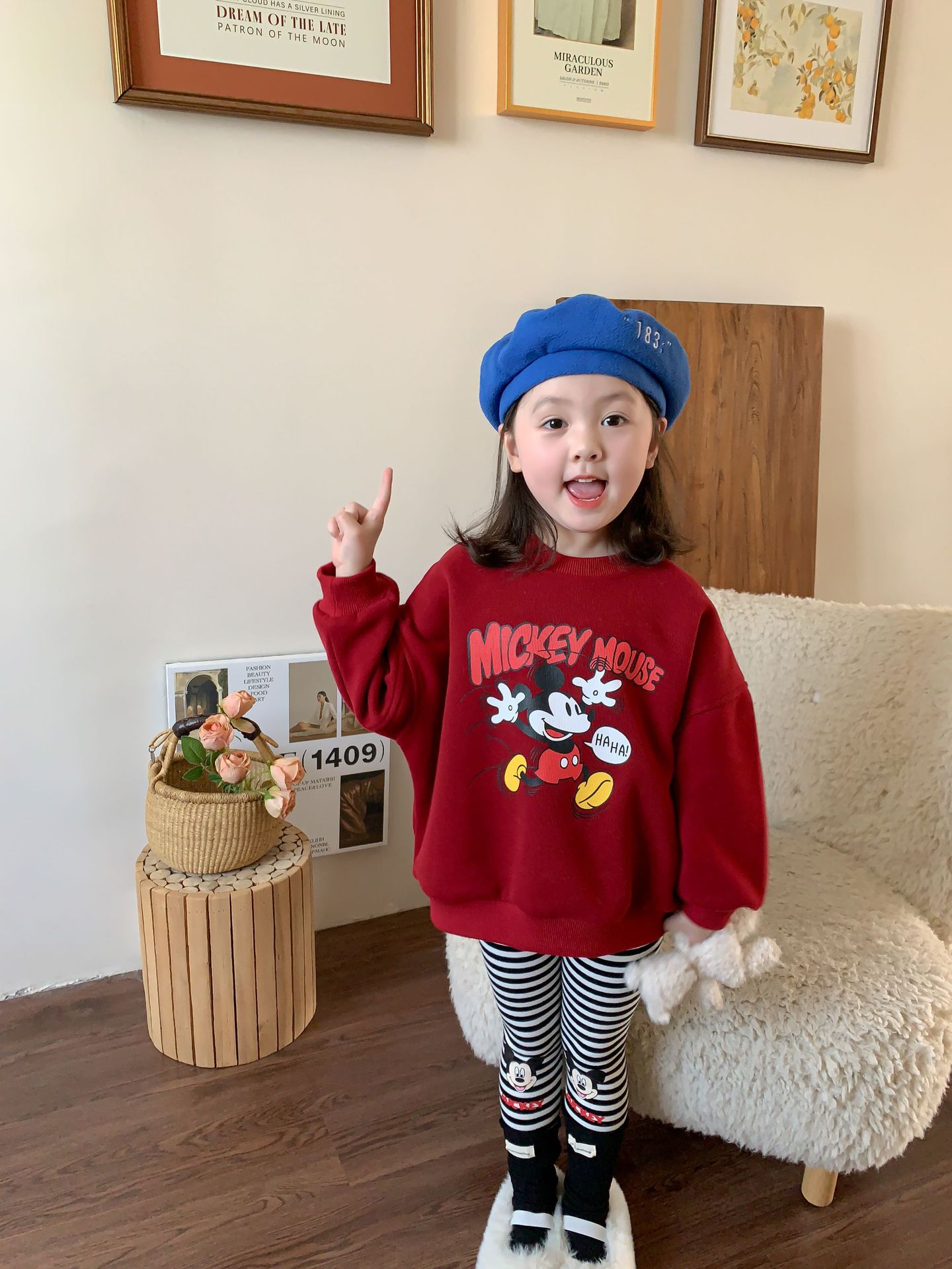 维木童装女童套装2024秋季新款儿童韩版卡通上衣裤子合集宝宝衣服