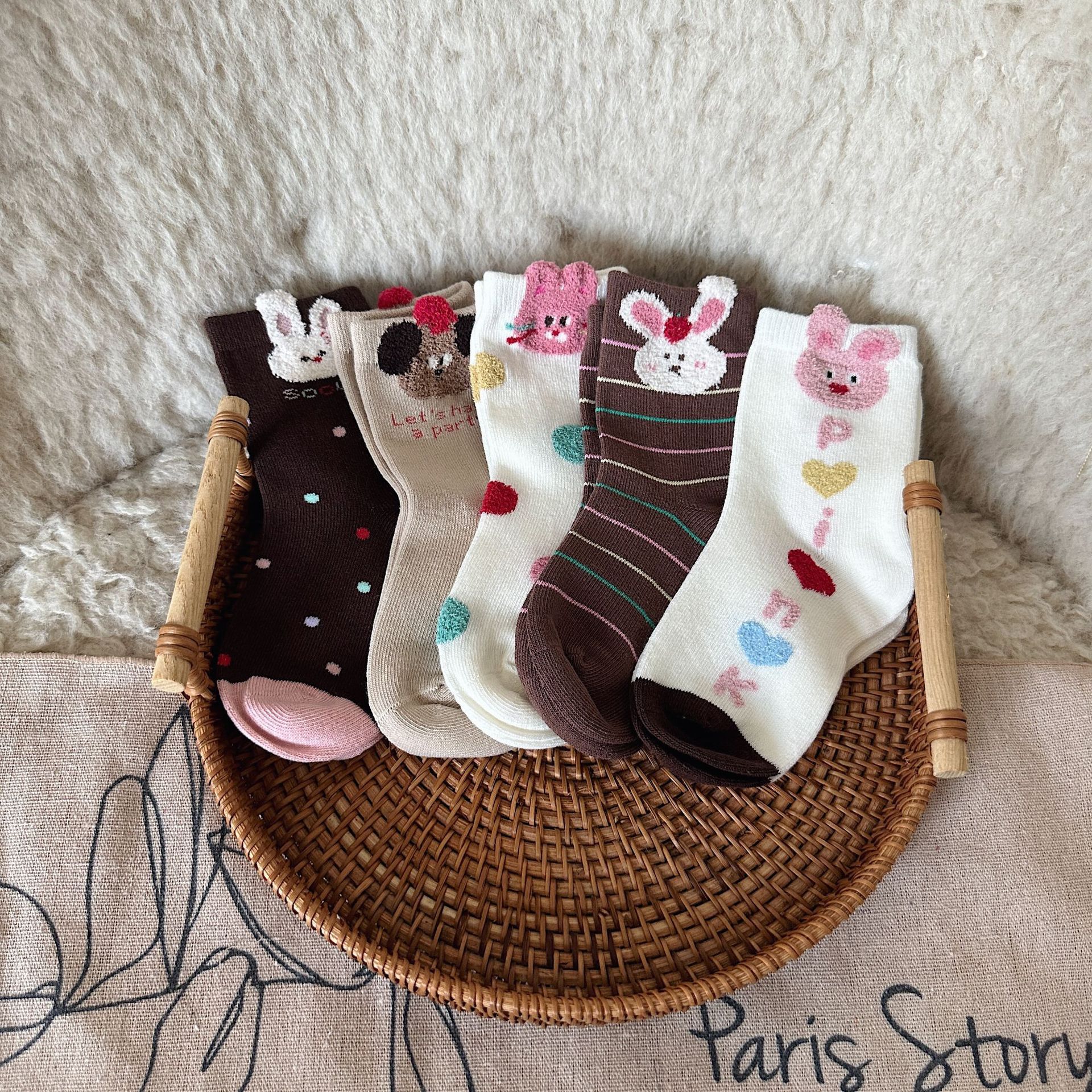 维木童装女童袜子2024秋季新款儿童洋气可爱卡通中筒袜女宝宝棉袜