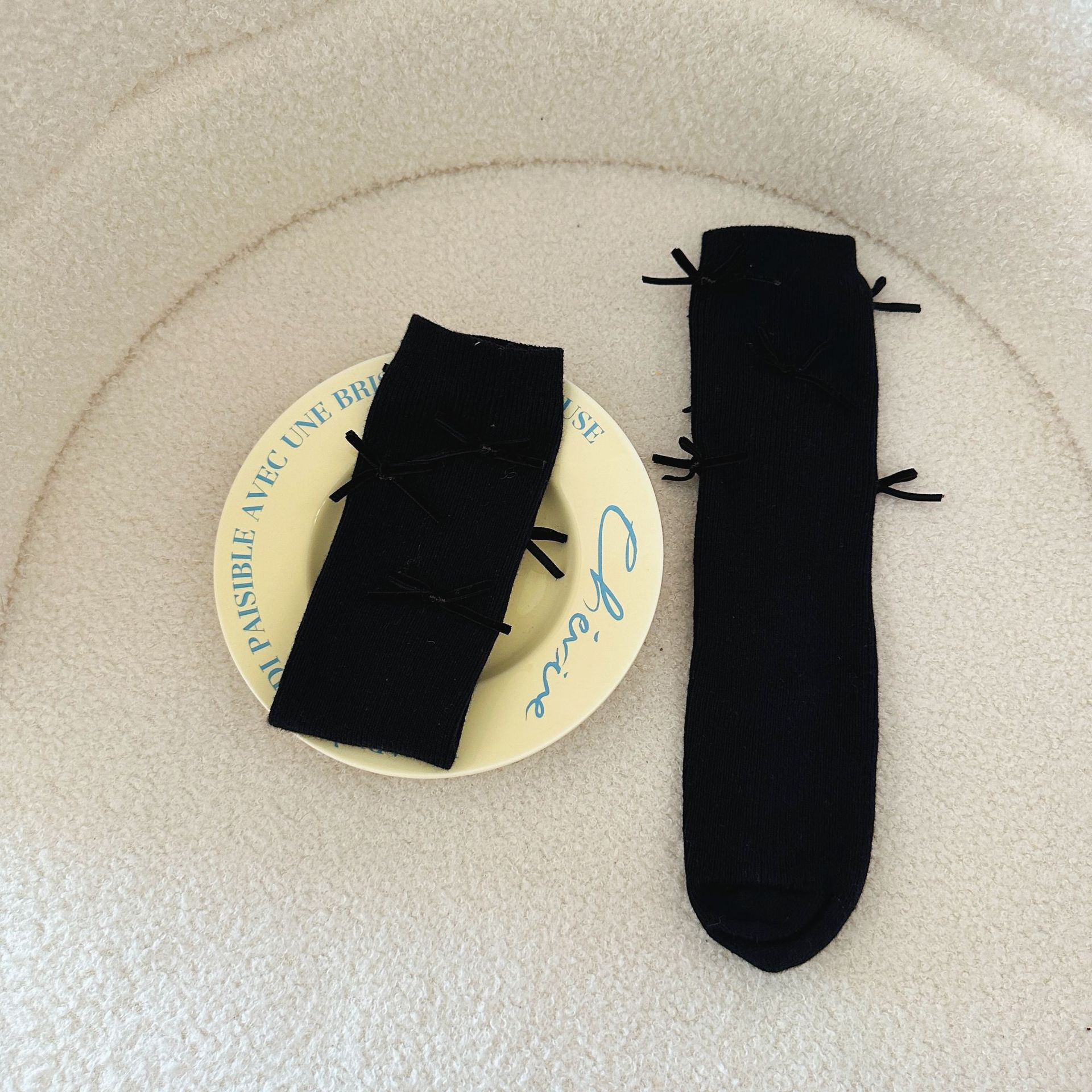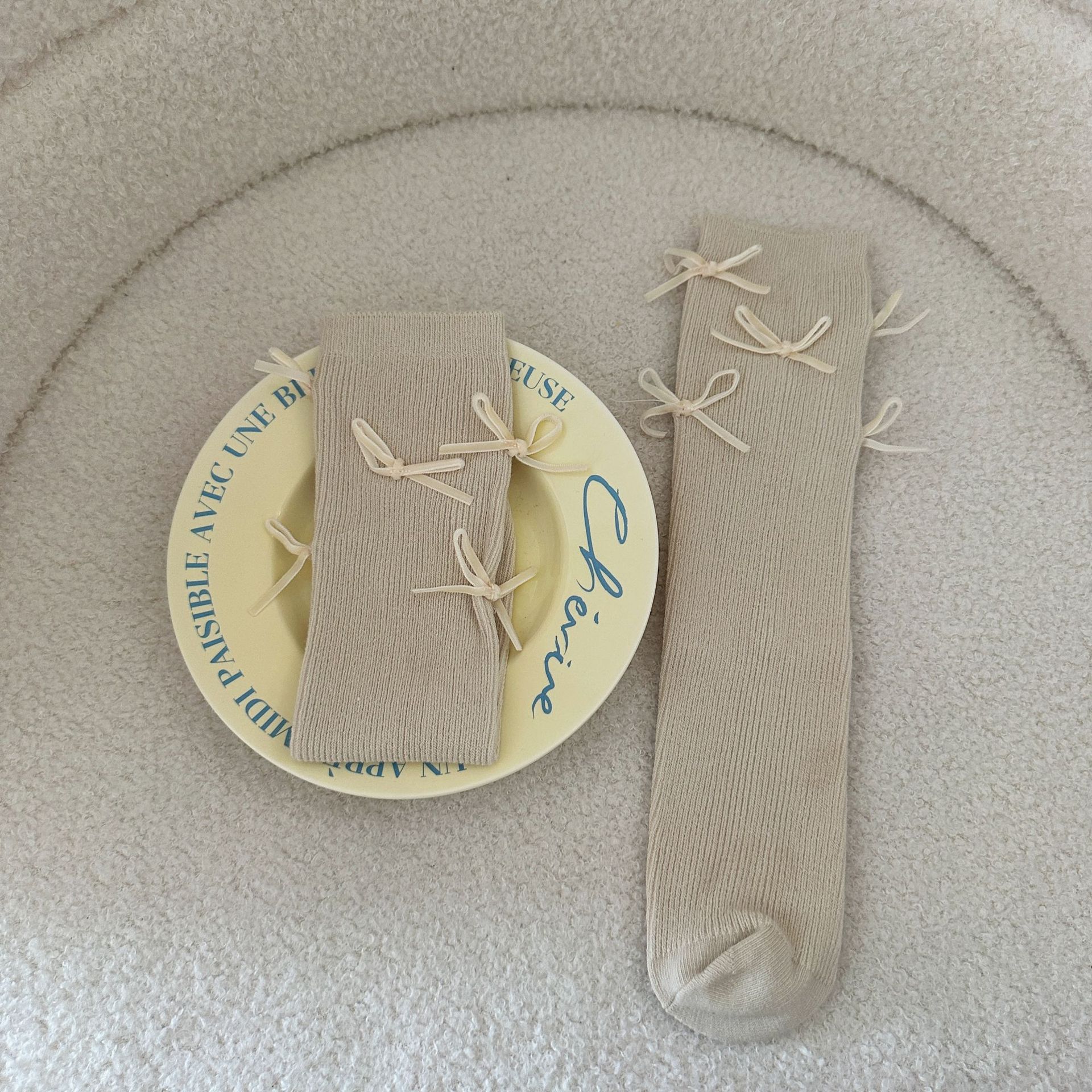 维木童装女童袜子2024秋季新款儿童韩版可爱蝴蝶结无跟袜宝宝棉袜
