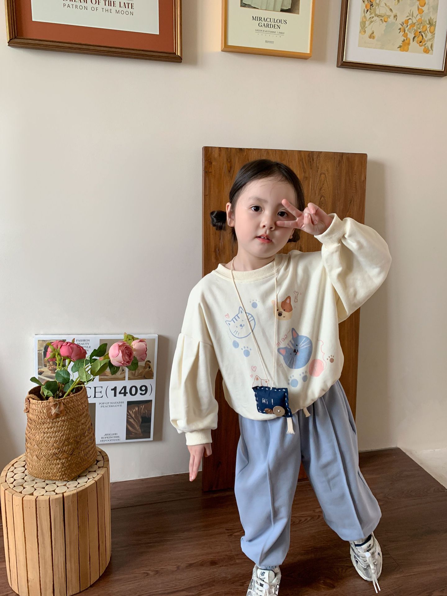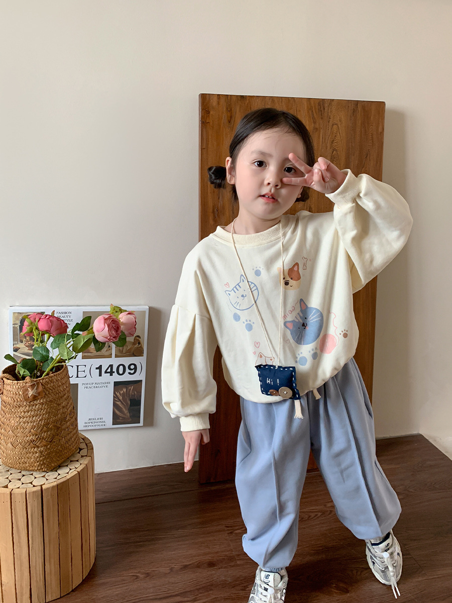 维木童装女童裤子2024秋季新款儿童韩版洋气休闲束脚卫裤宝宝长裤