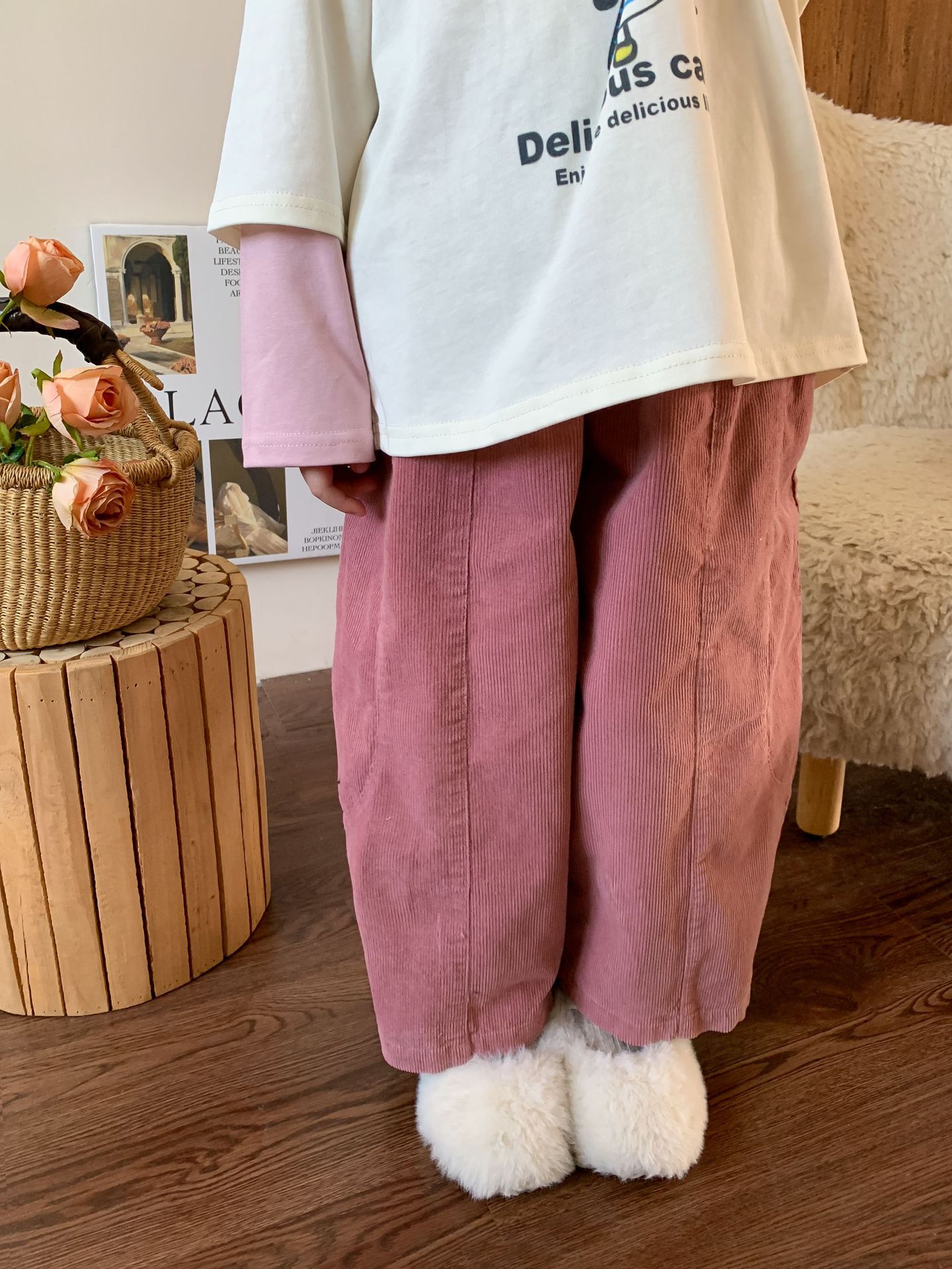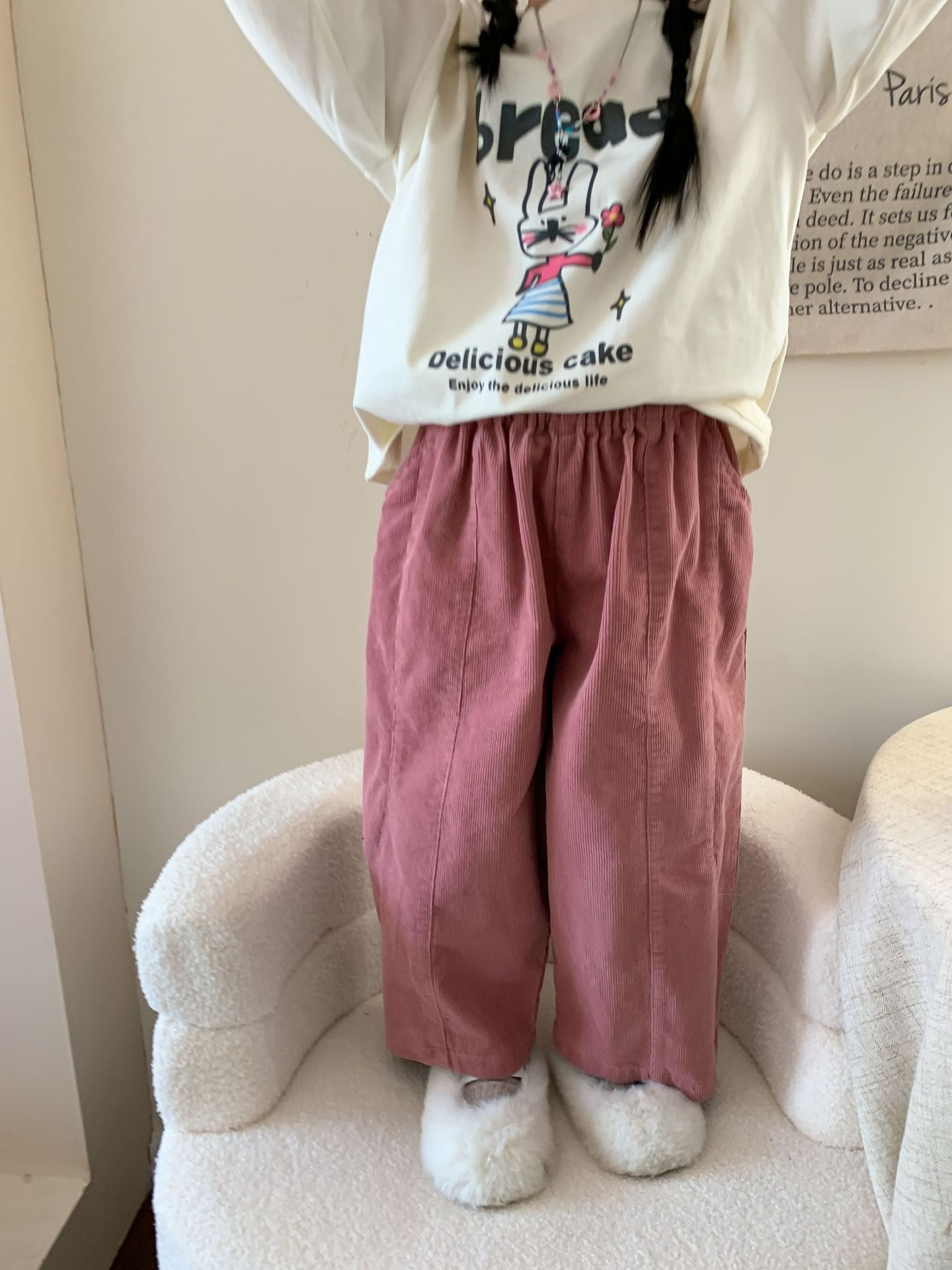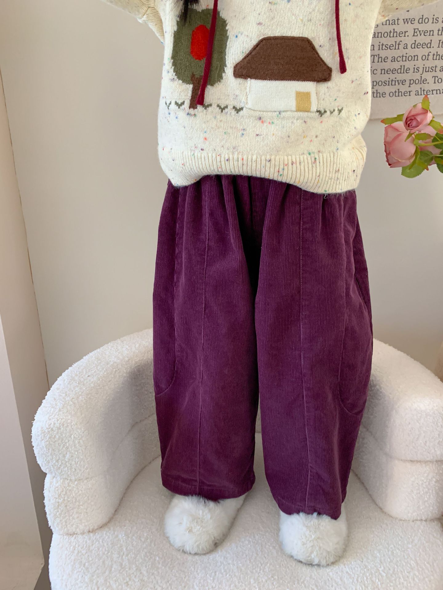 维木童装女童灯芯绒裤子2024秋冬新款儿童韩版休闲萝卜裤宝宝长裤