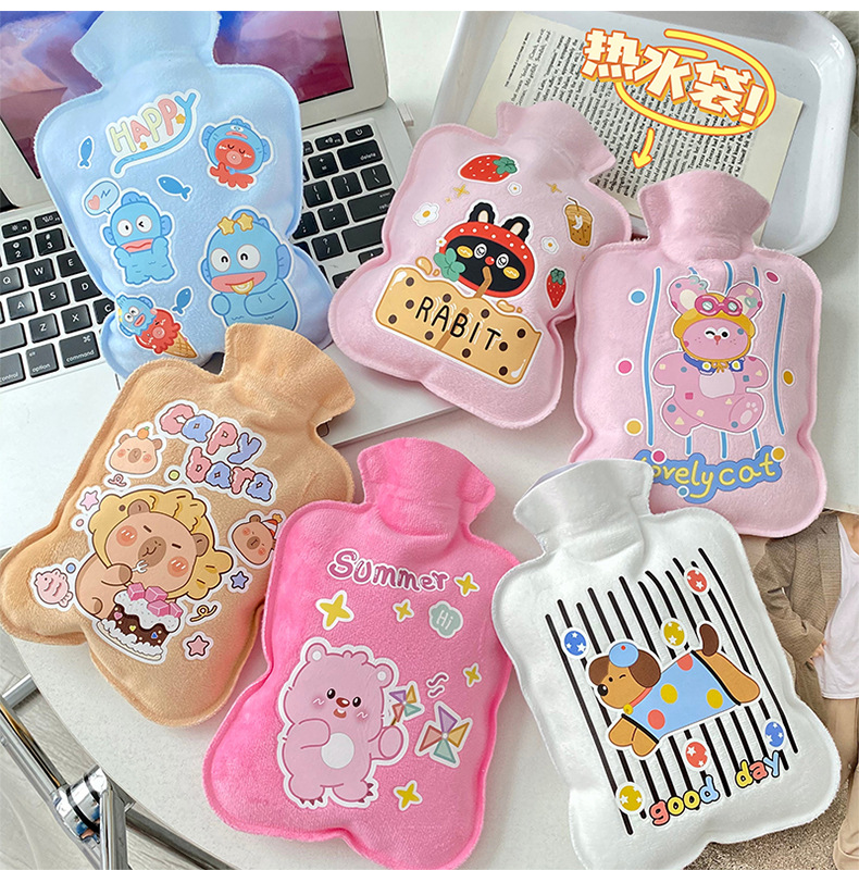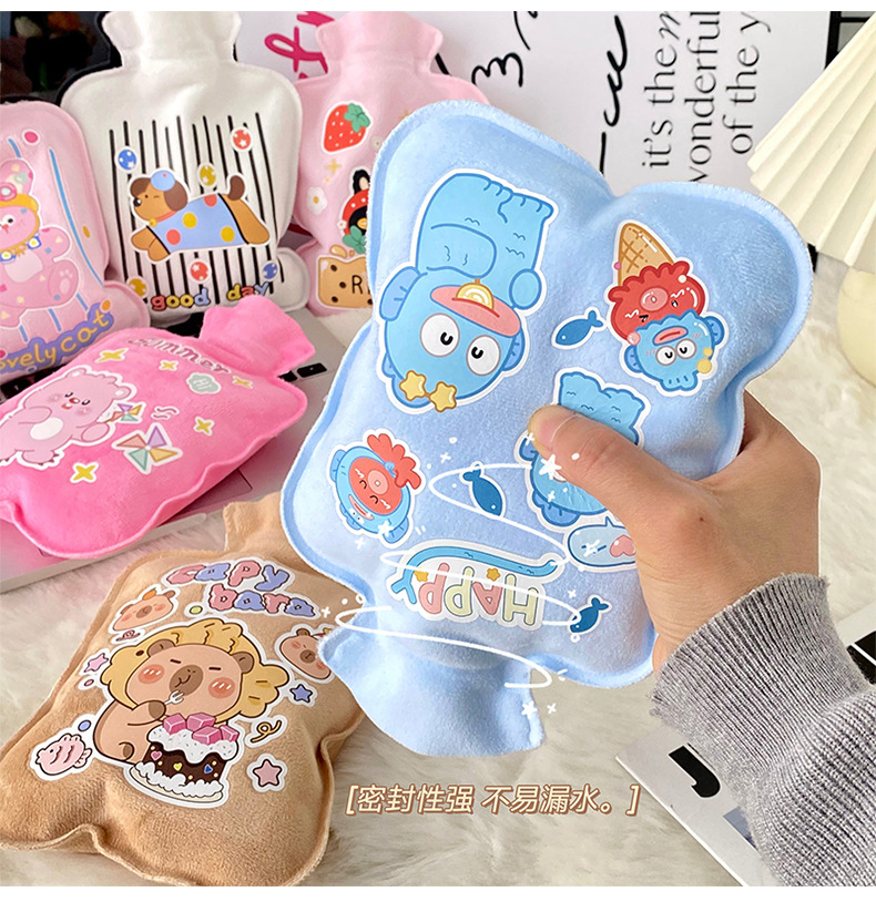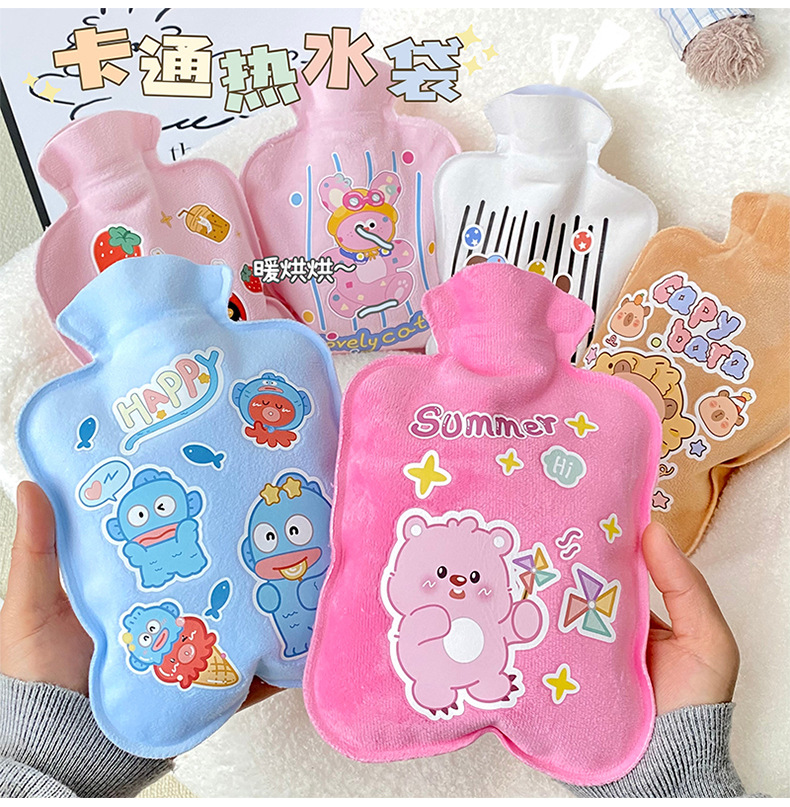 厂批发大号植绒注水热水袋 冬季学校快乐丑鱼迷你便携灌水暖手袋