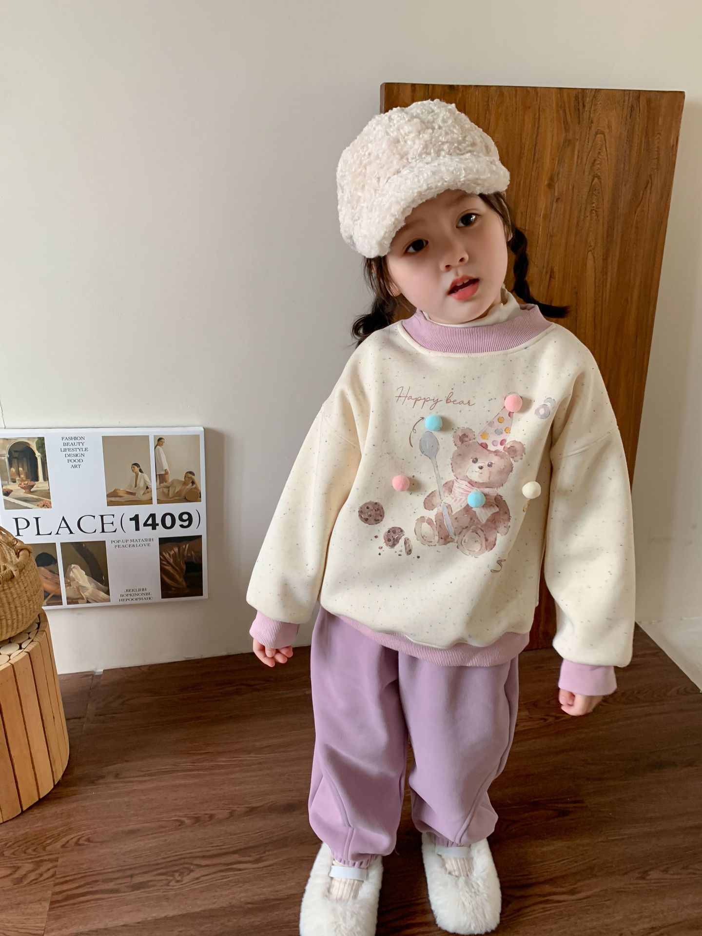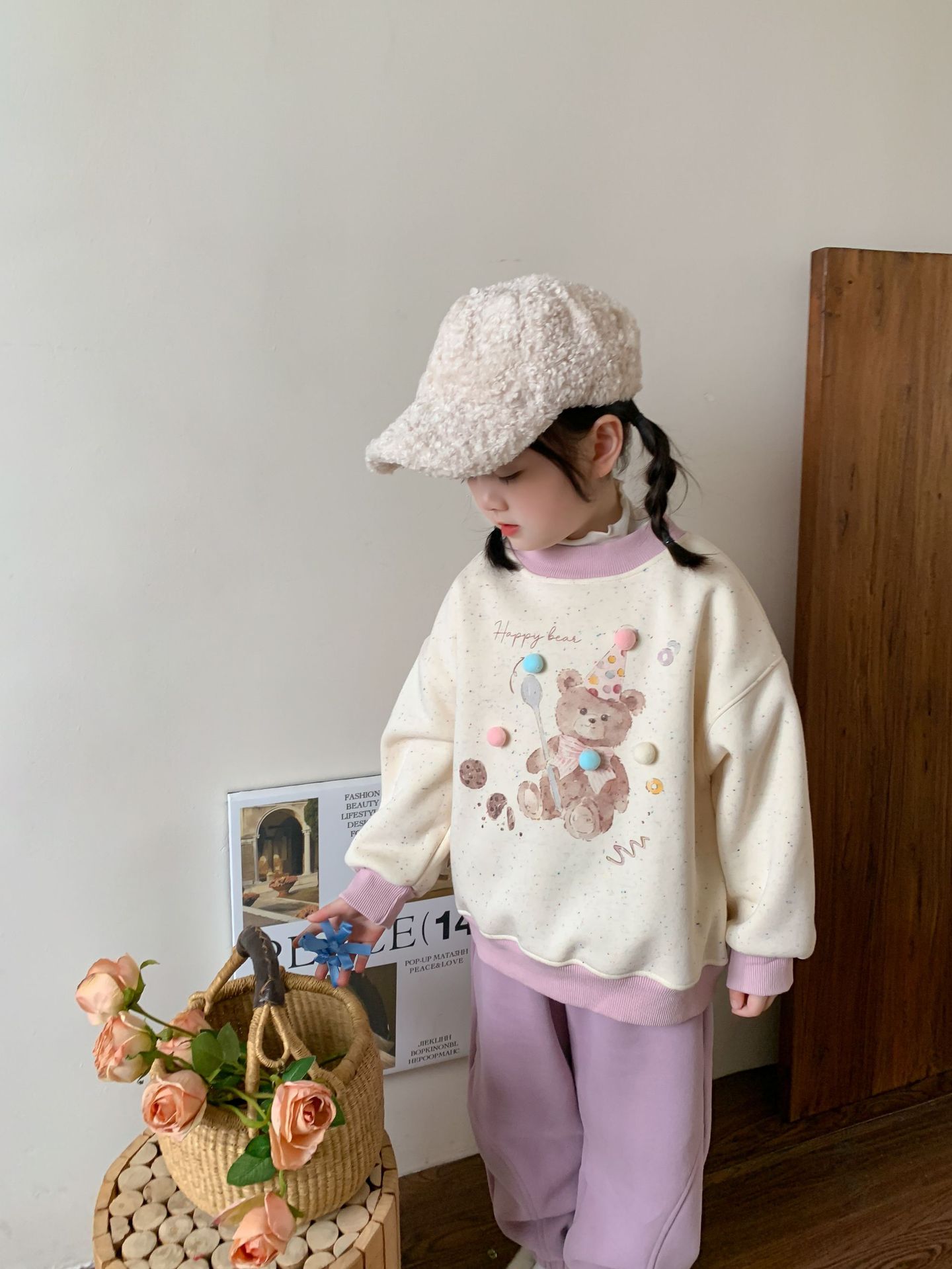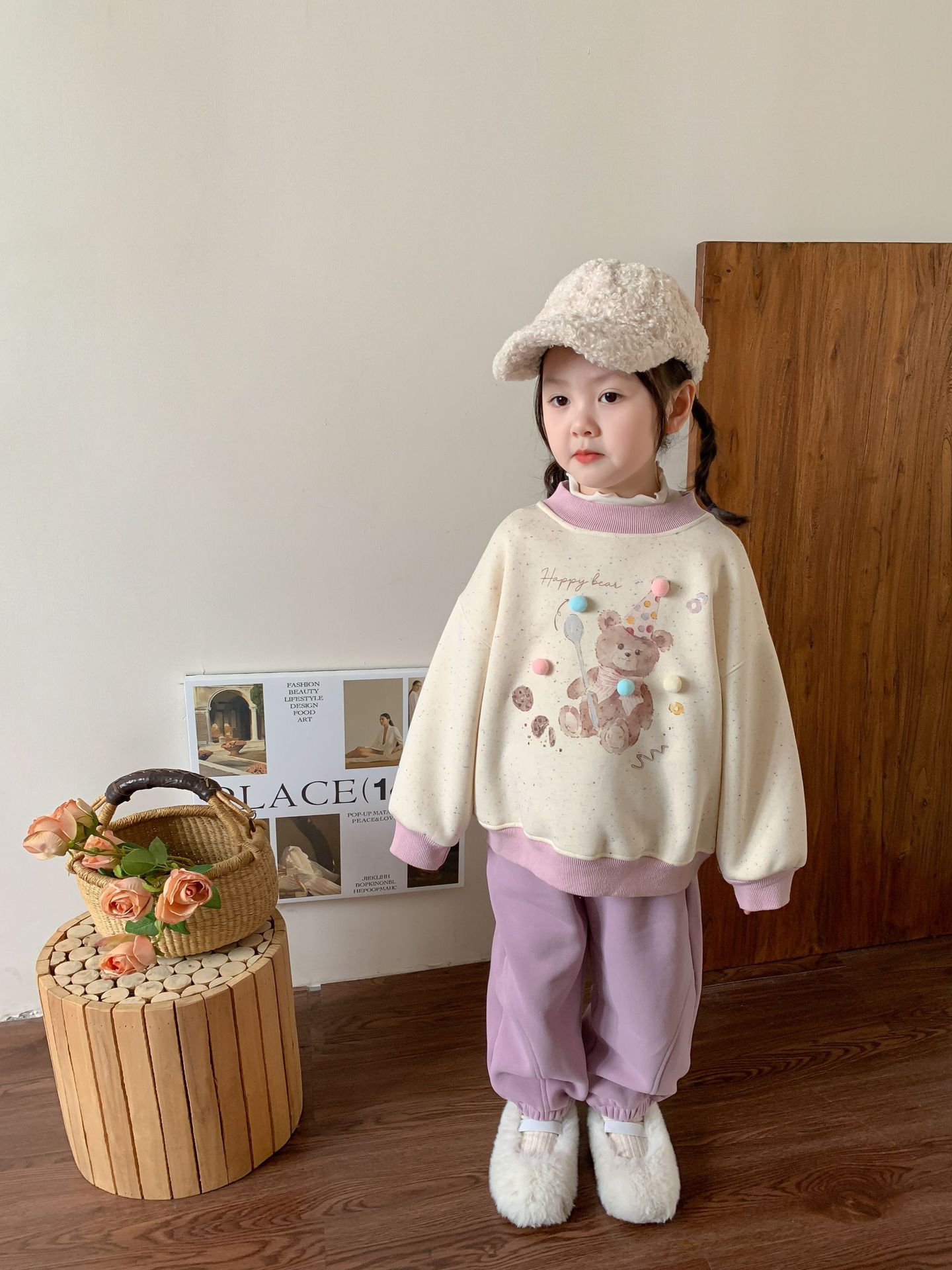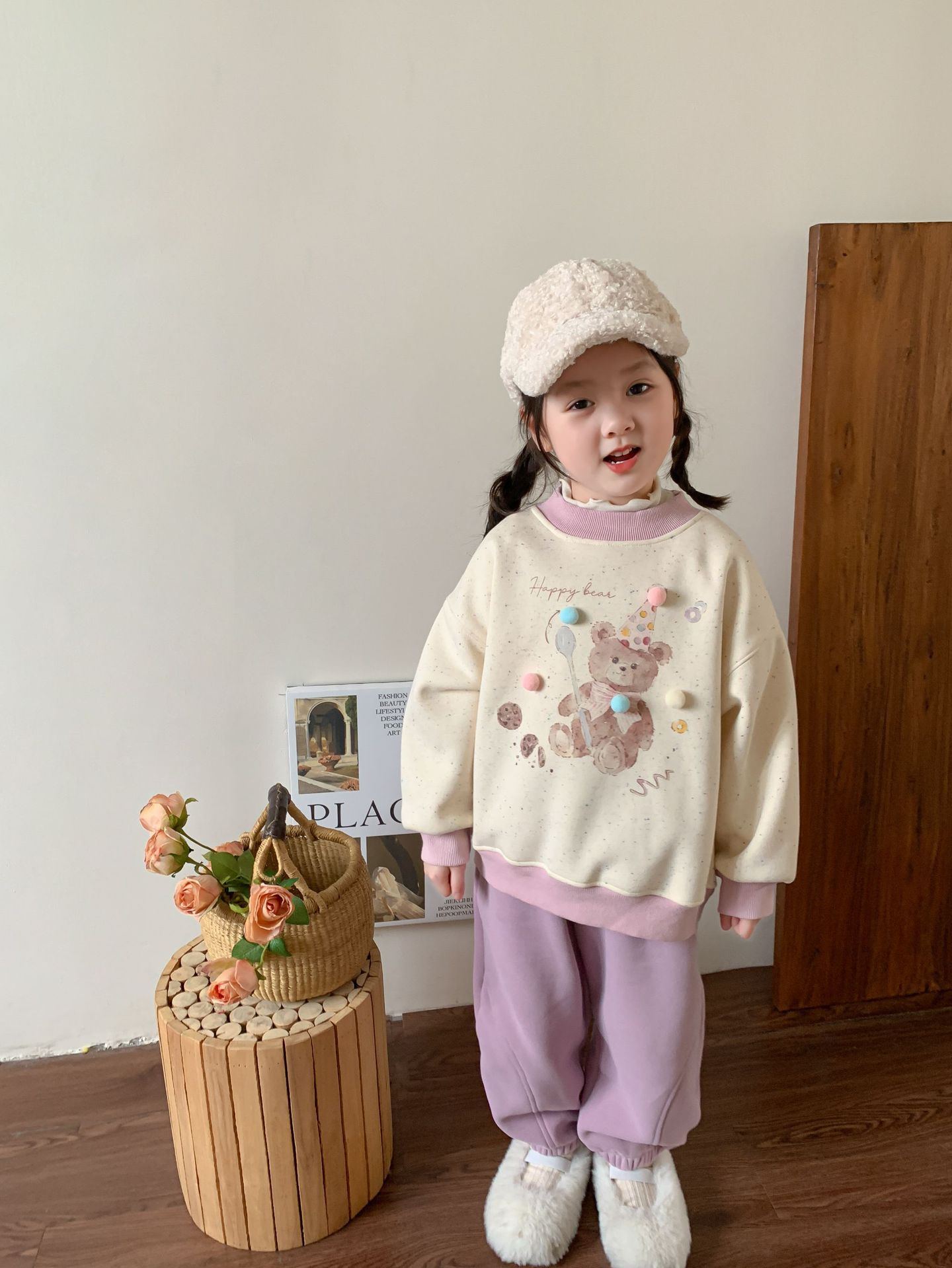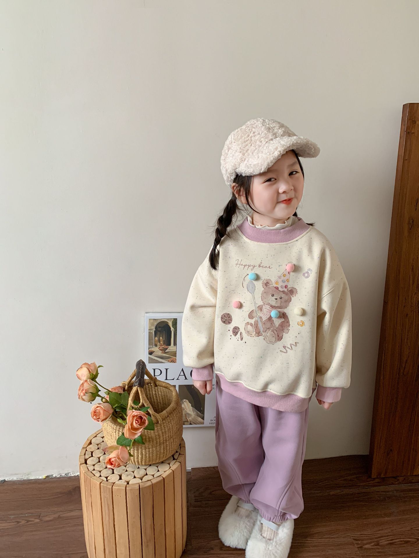 维木童装女童卫衣加绒套装2024秋冬新款儿童韩版卡通上衣宝宝衣服