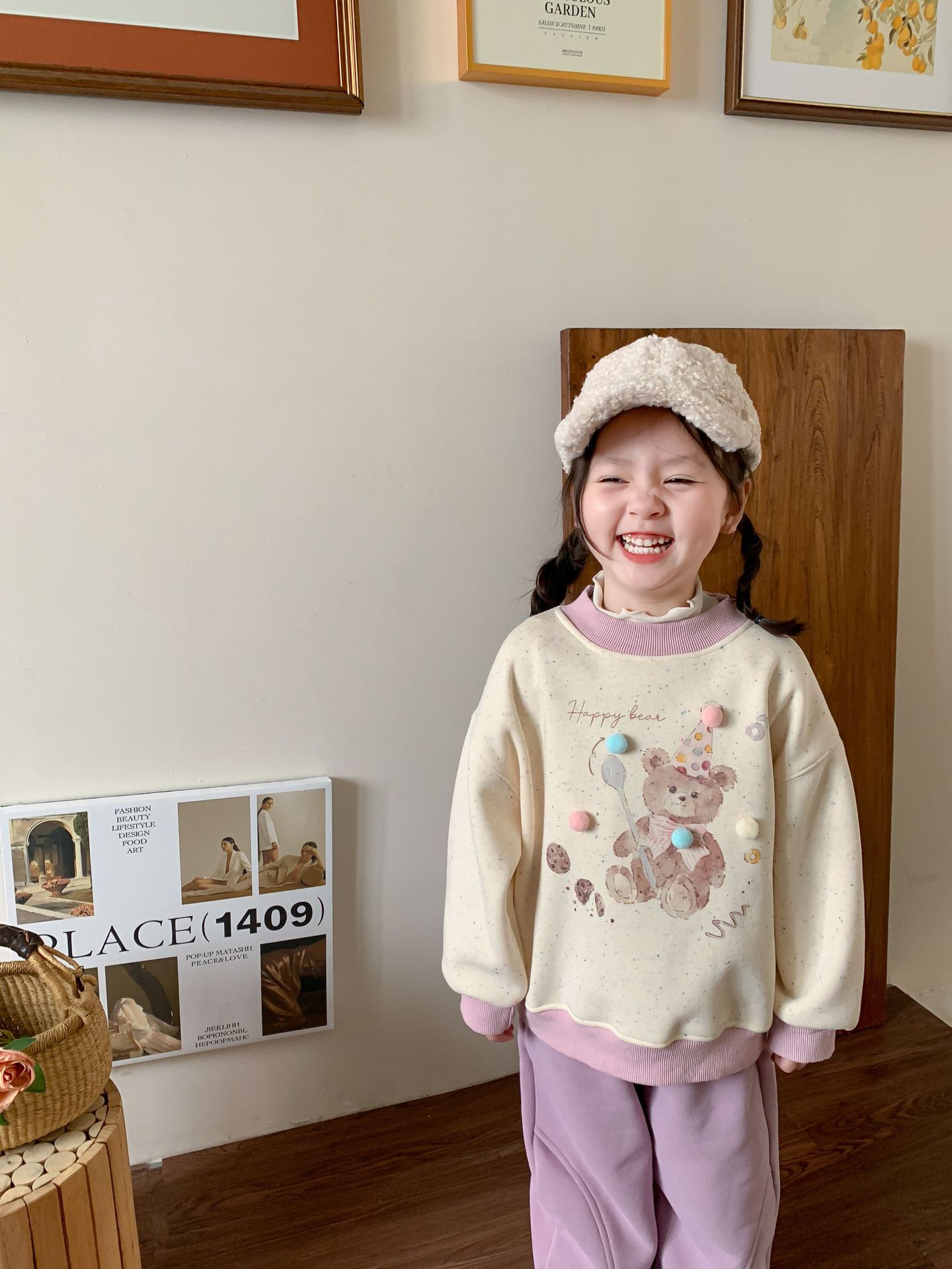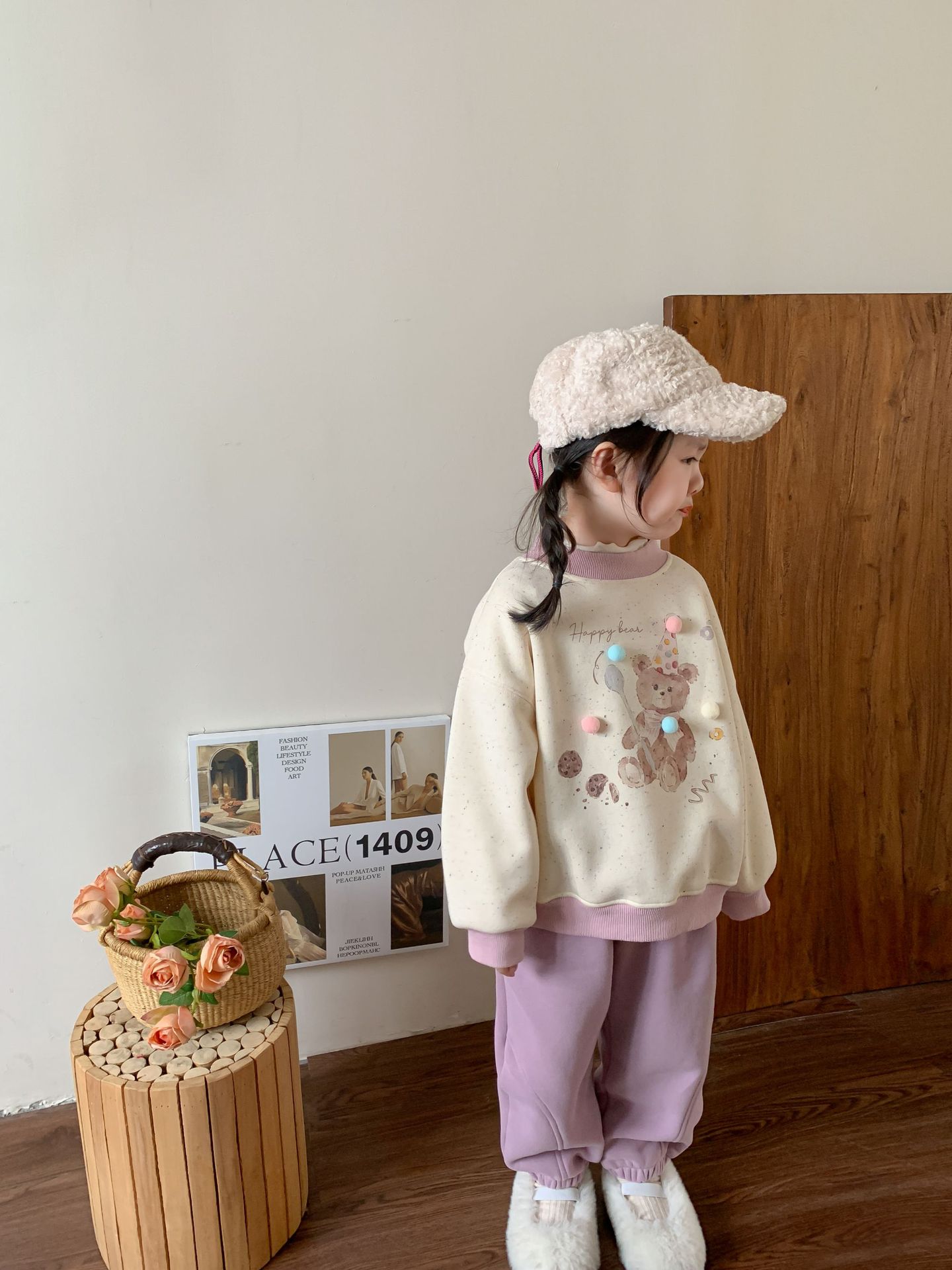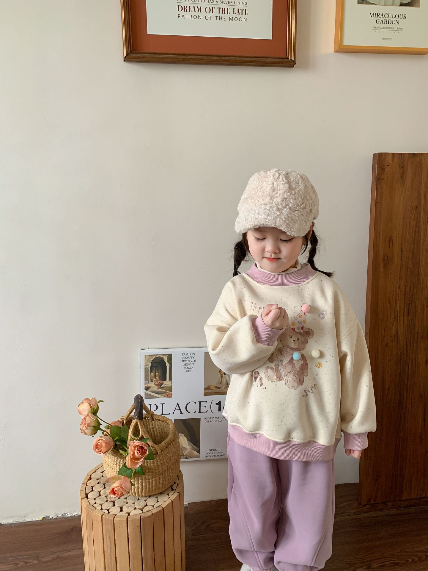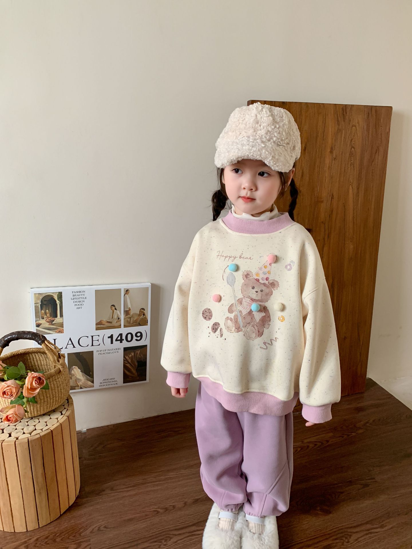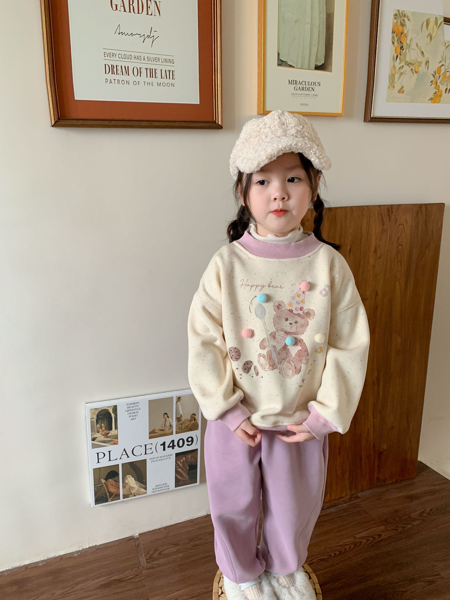 维木童装女童卫衣加绒套装2024秋冬新款儿童韩版卡通上衣宝宝衣服