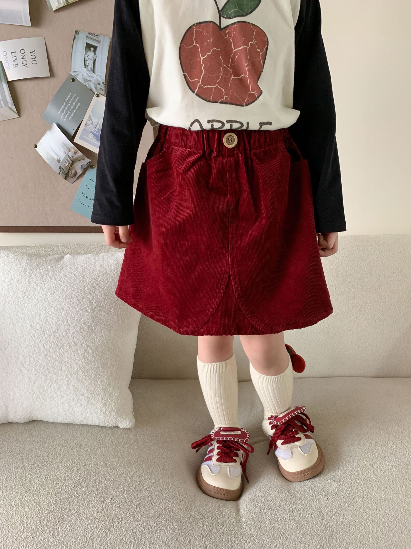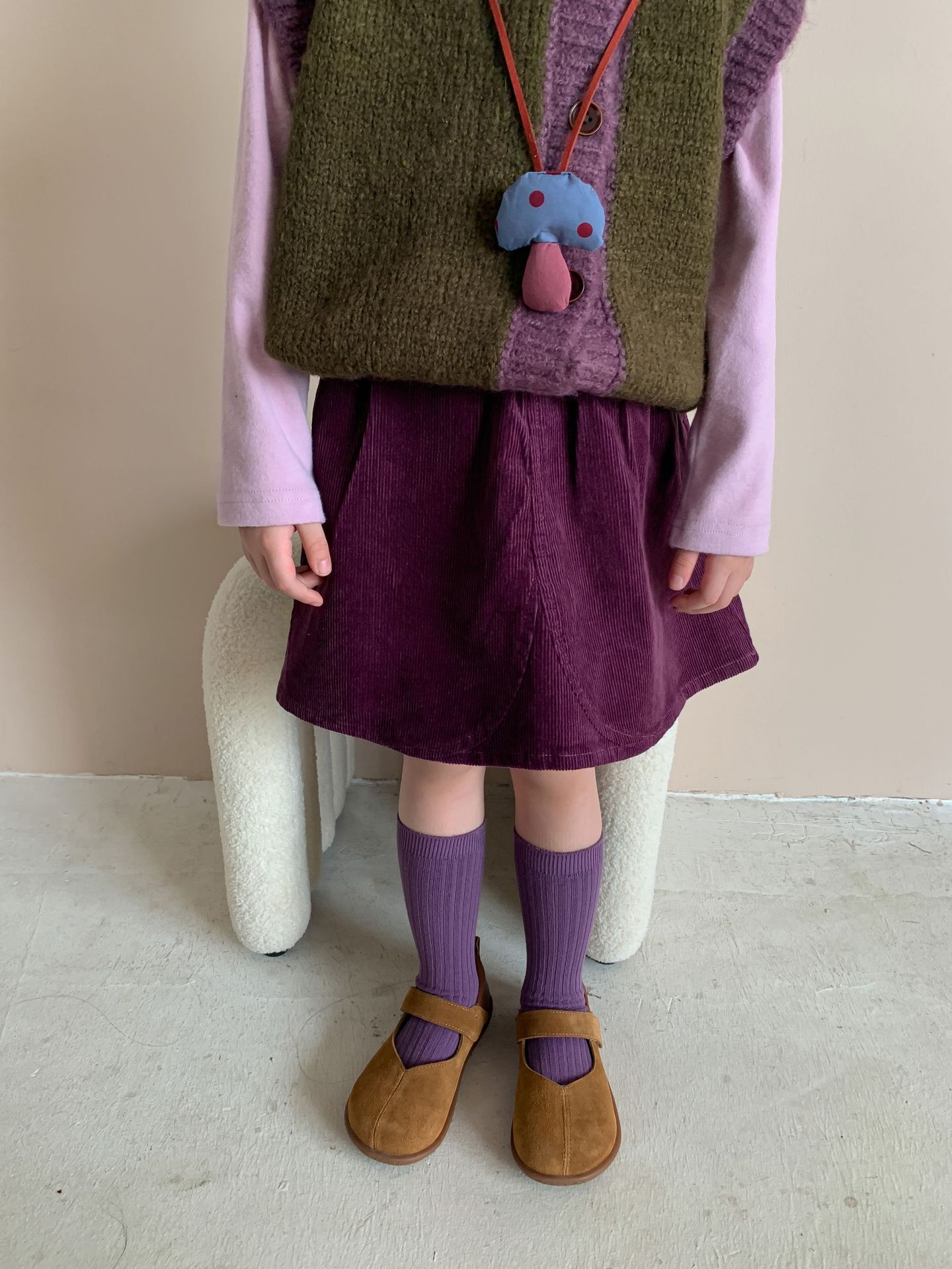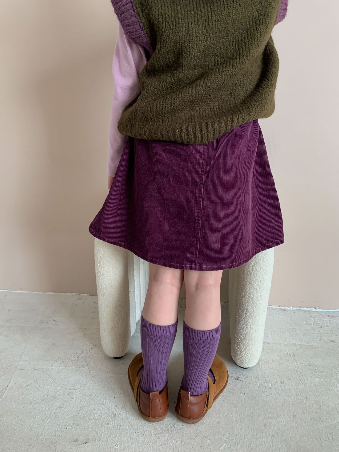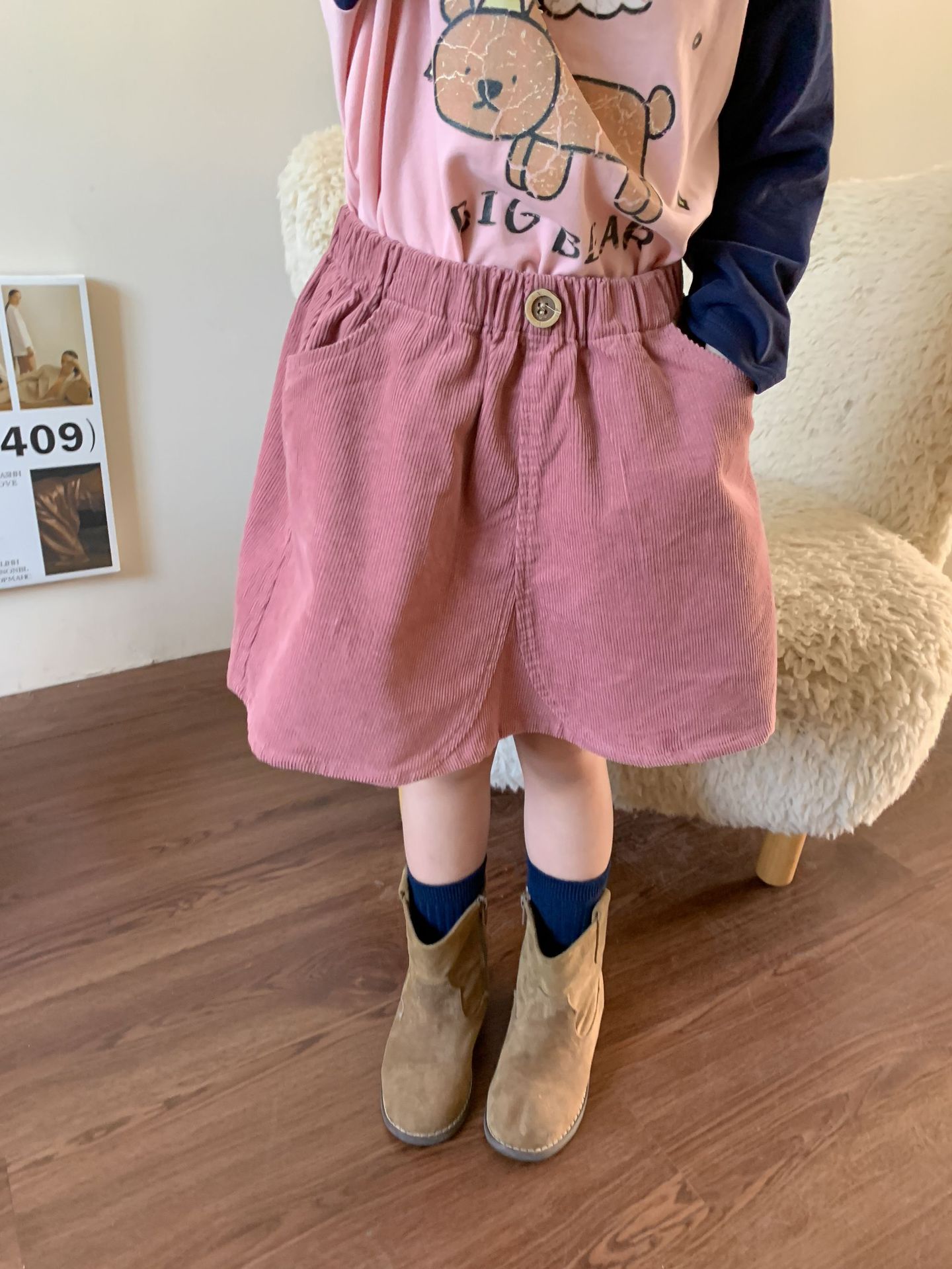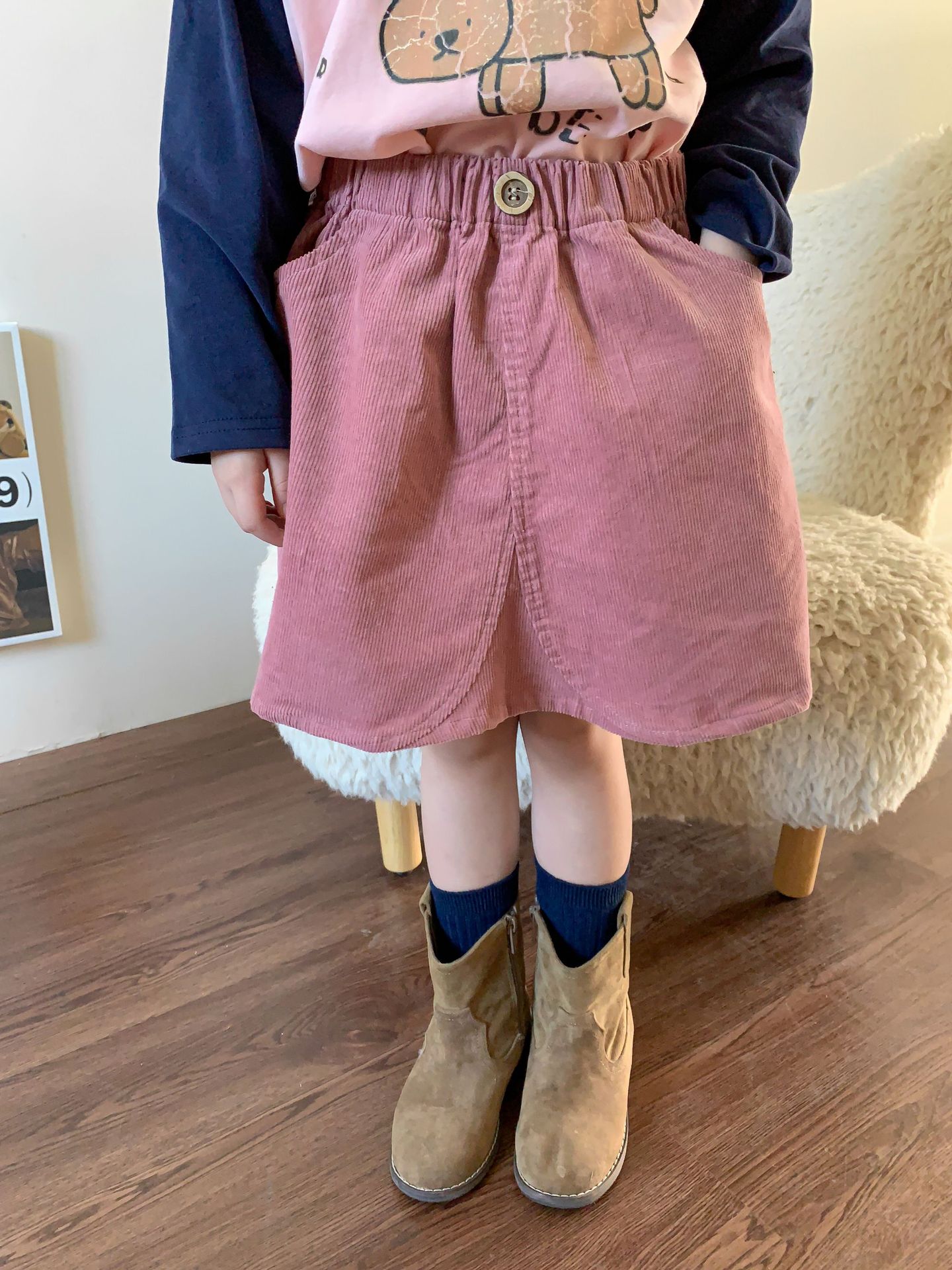 维木童装女童裙子2024秋季新款儿童韩版洋气灯芯绒半裙宝宝半身裙
