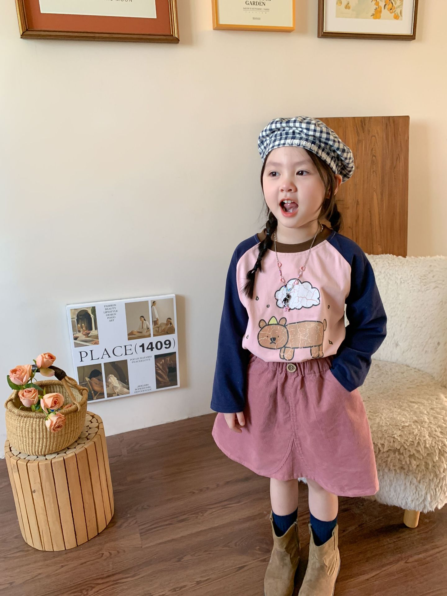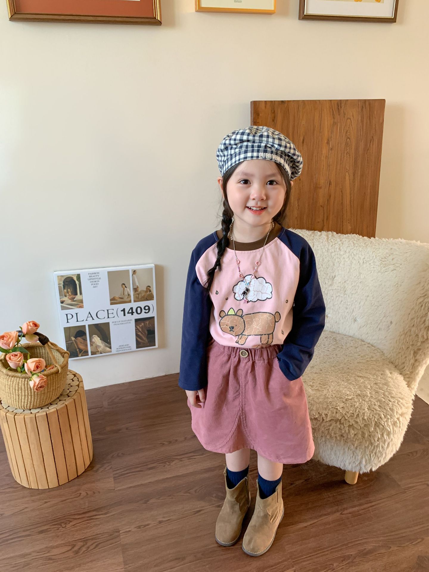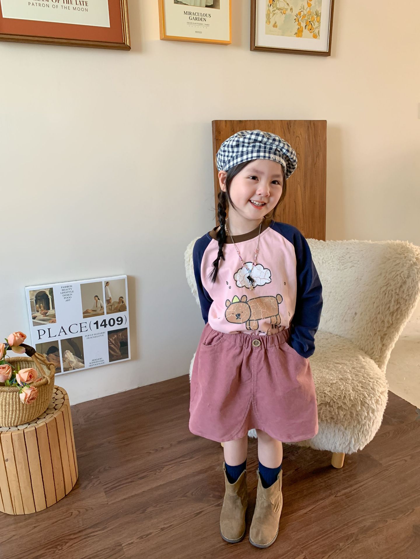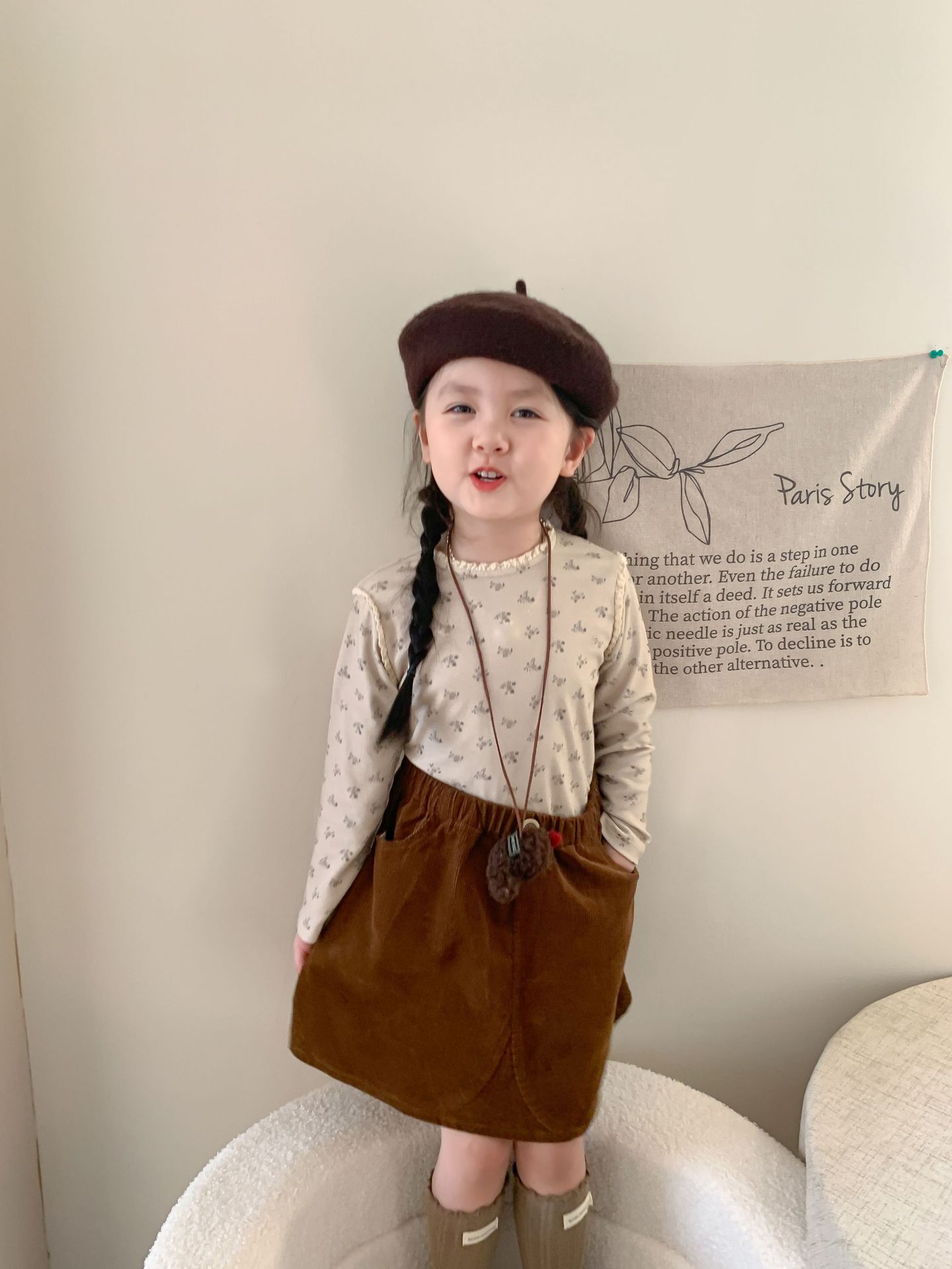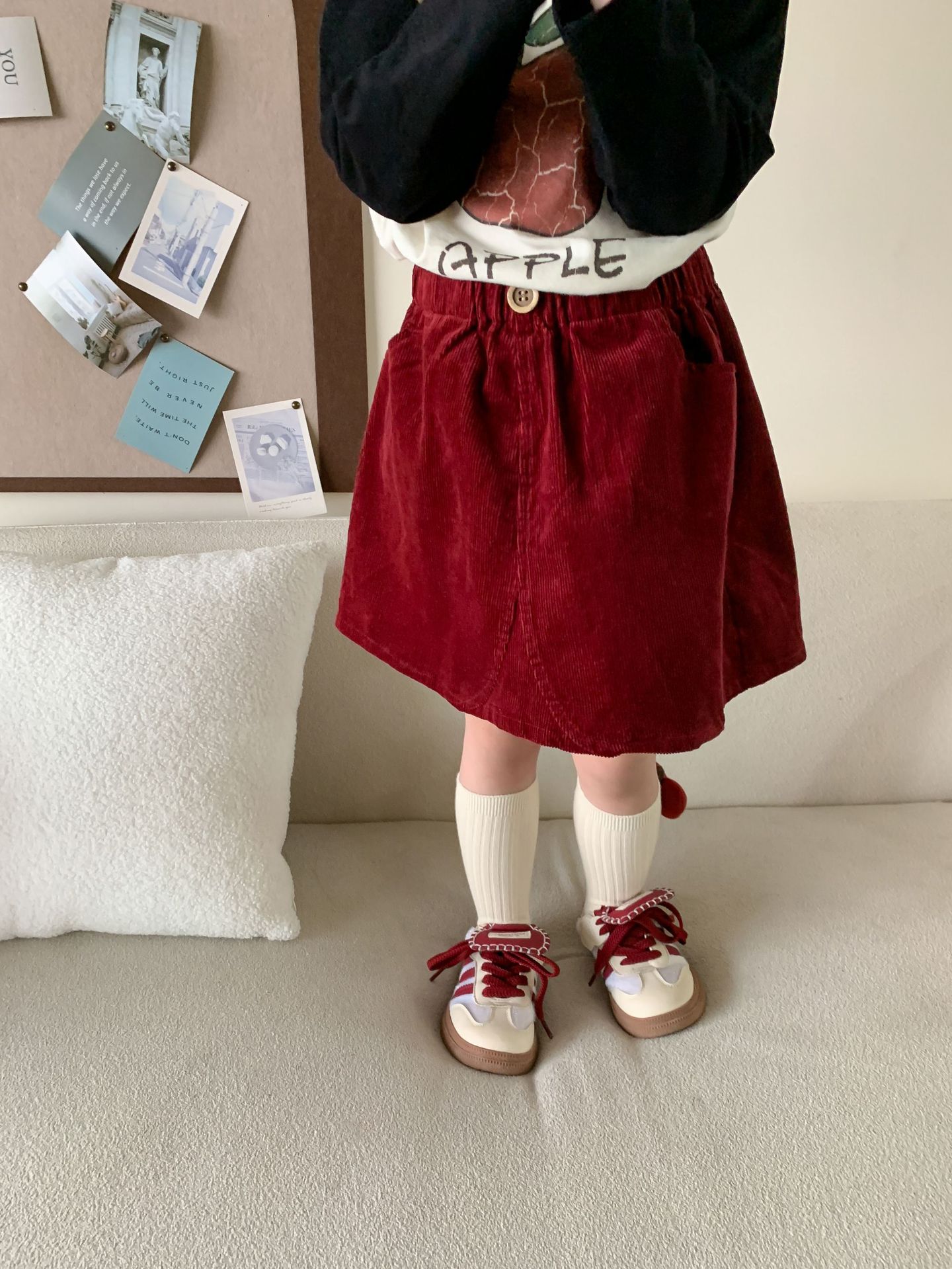 维木童装女童裙子2024秋季新款儿童韩版洋气灯芯绒半裙宝宝半身裙