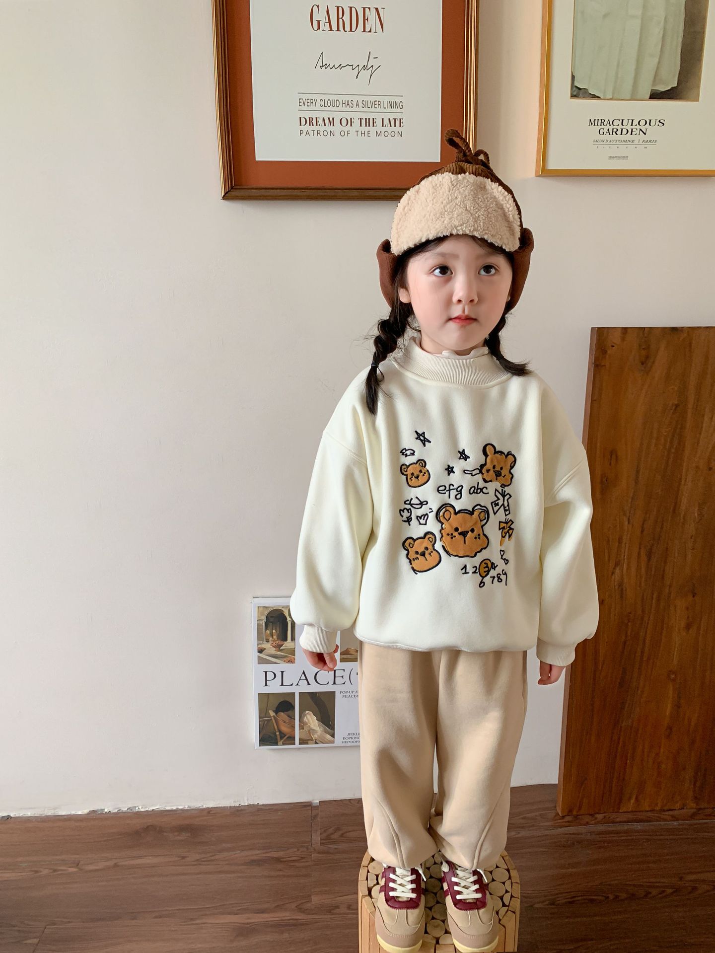 维木童装女童加绒卫裤2024秋冬新款儿童韩版休闲抓绒秋裤宝宝裤子